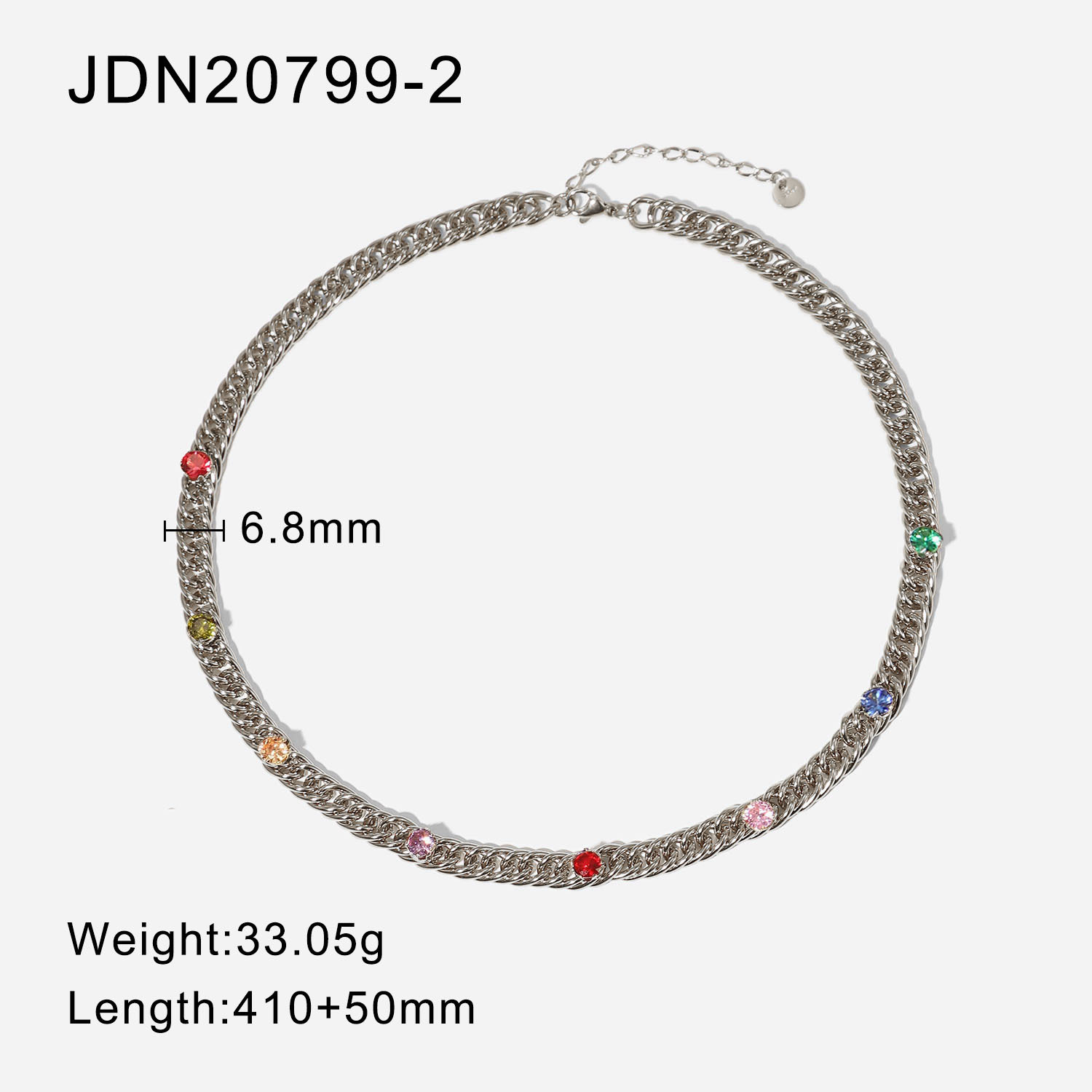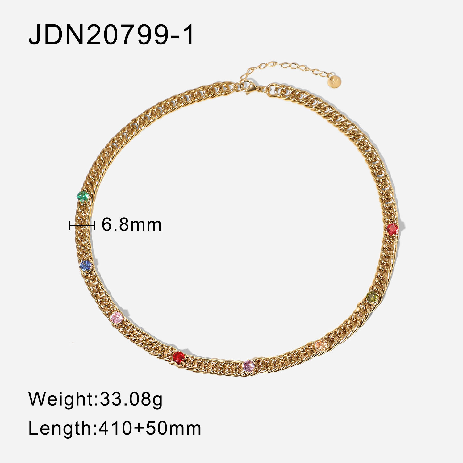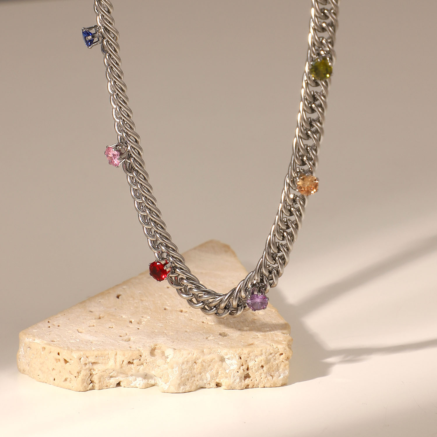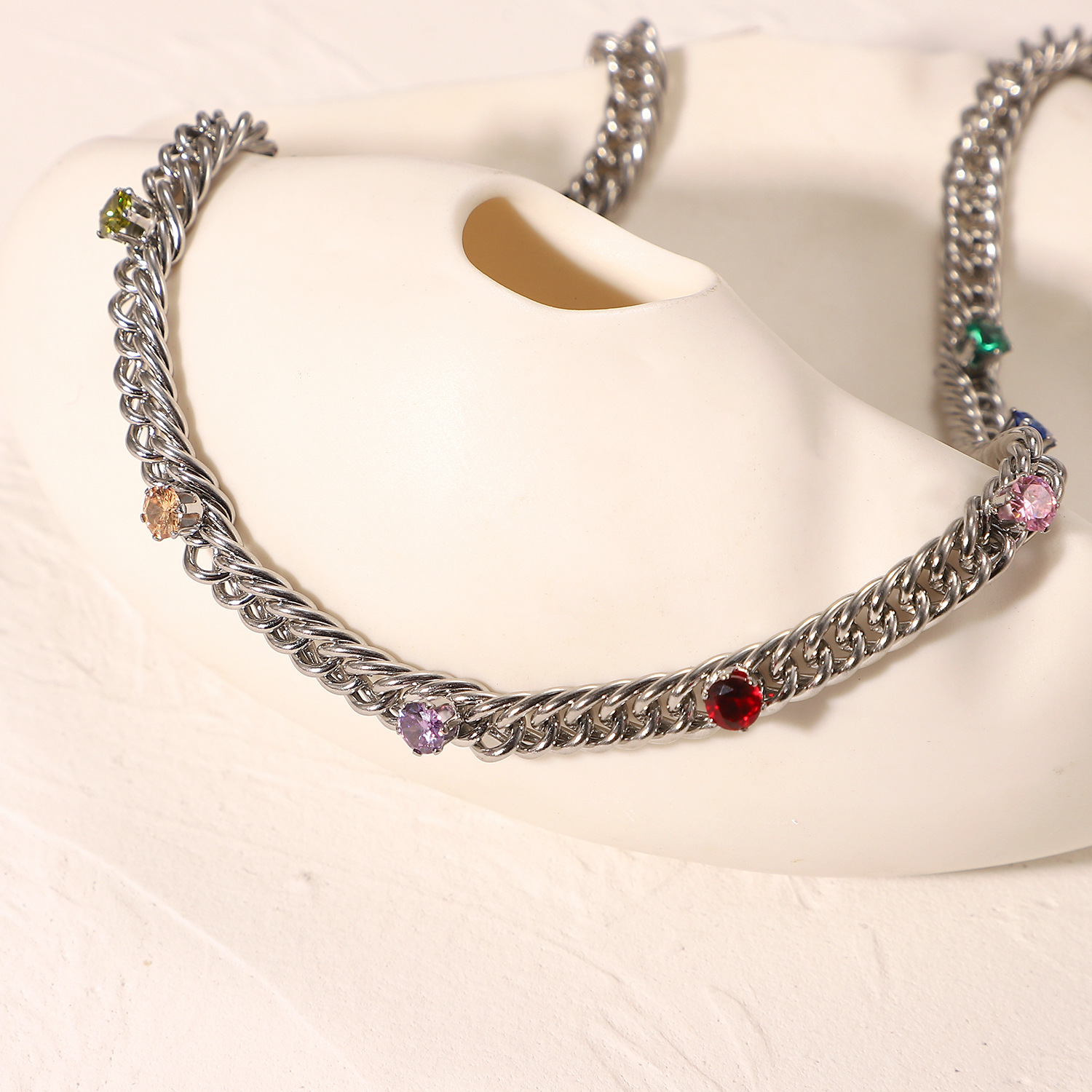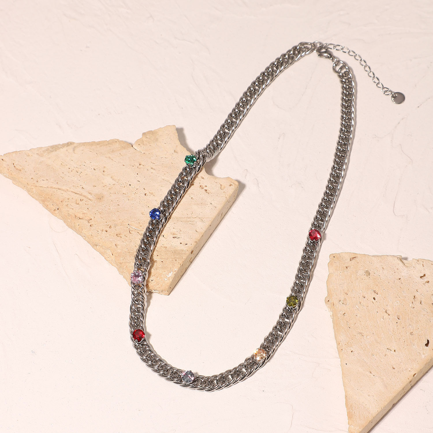 标题:欧美首饰14K镀金/钢色古巴链锆石项链礼物不锈钢彩色锆石项链女式