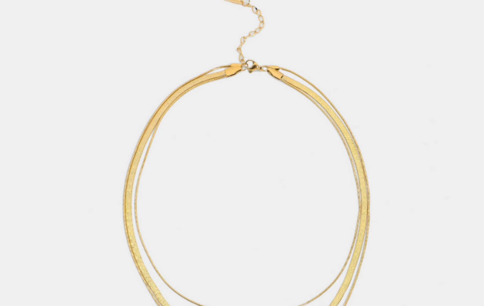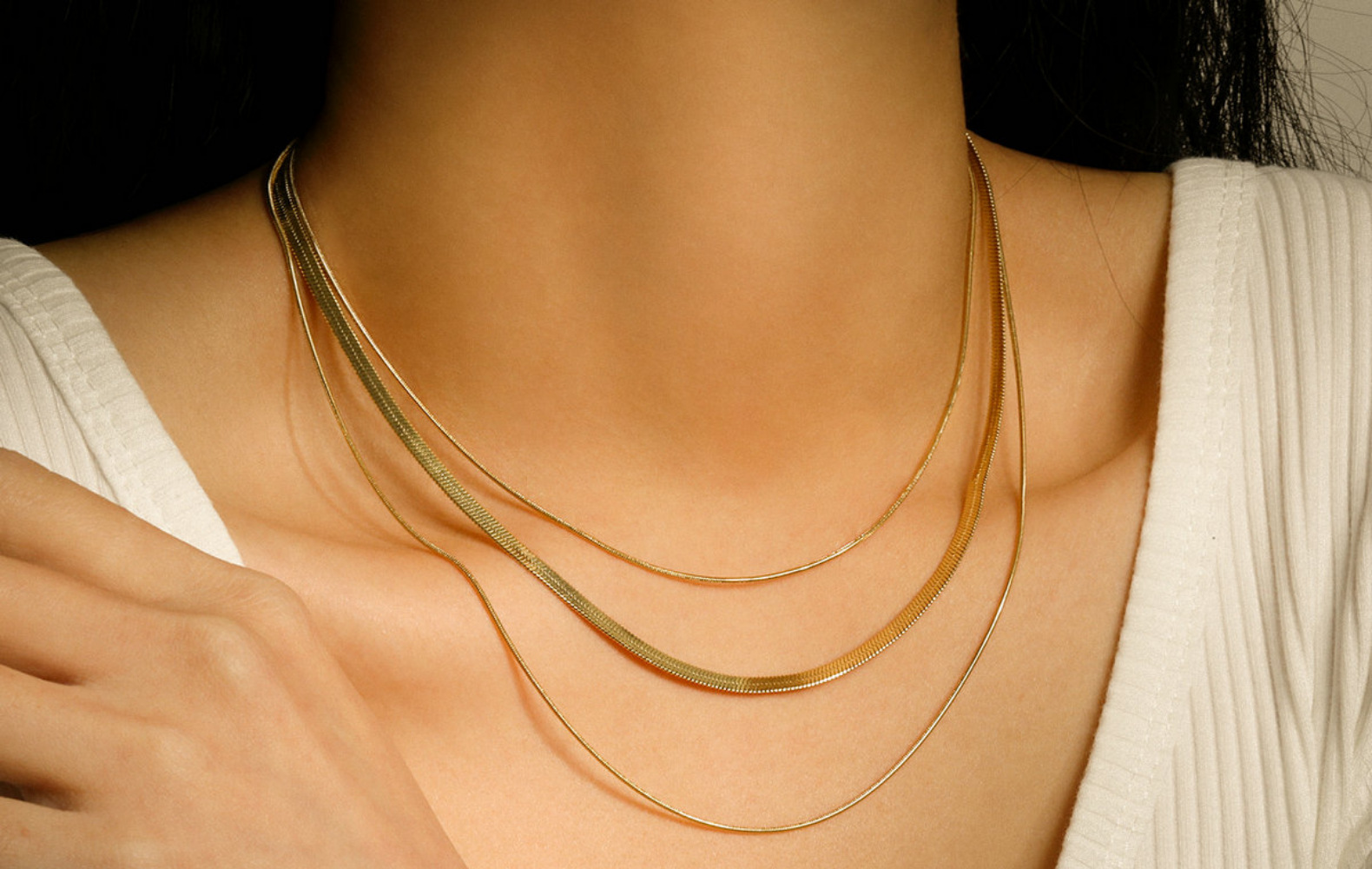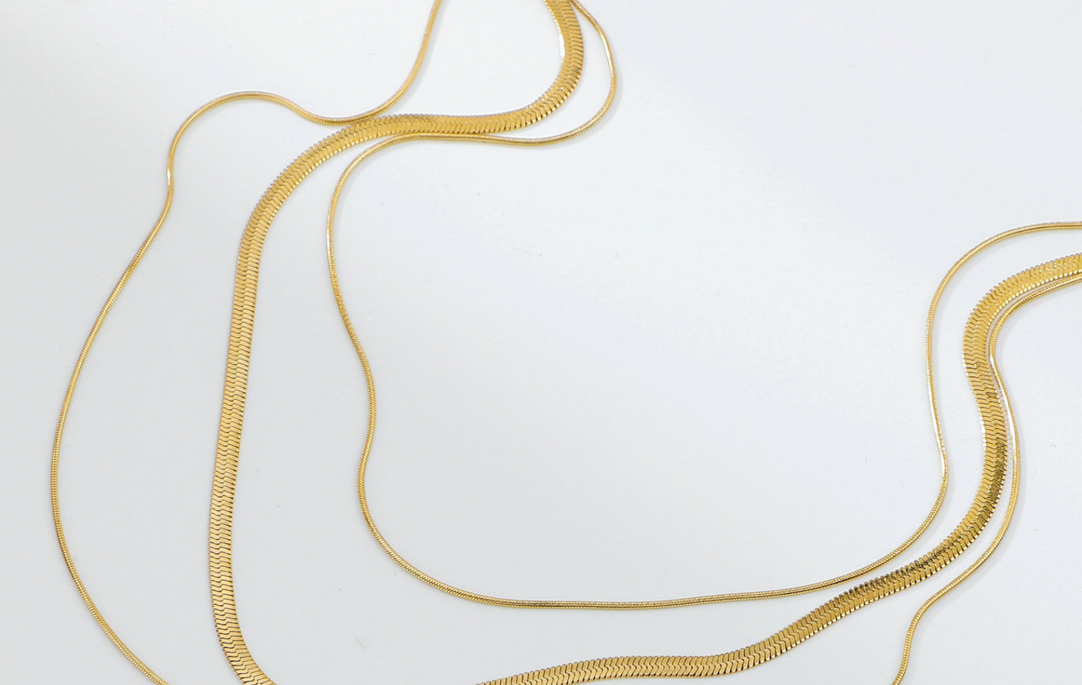 标题:欧式风格三层蛇链项链 时尚女性款堆叠首饰14K镀金不锈钢矮胖项链
