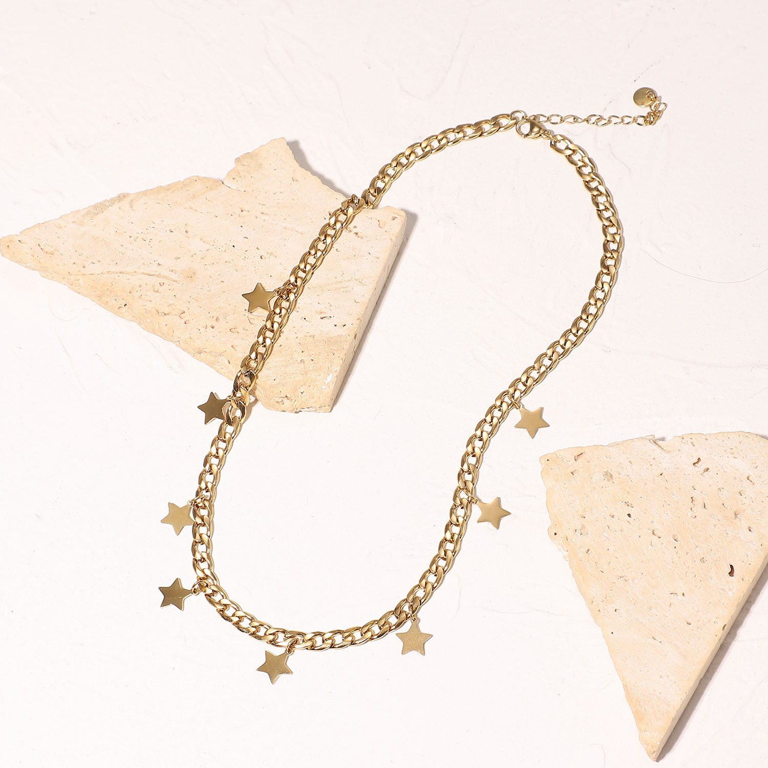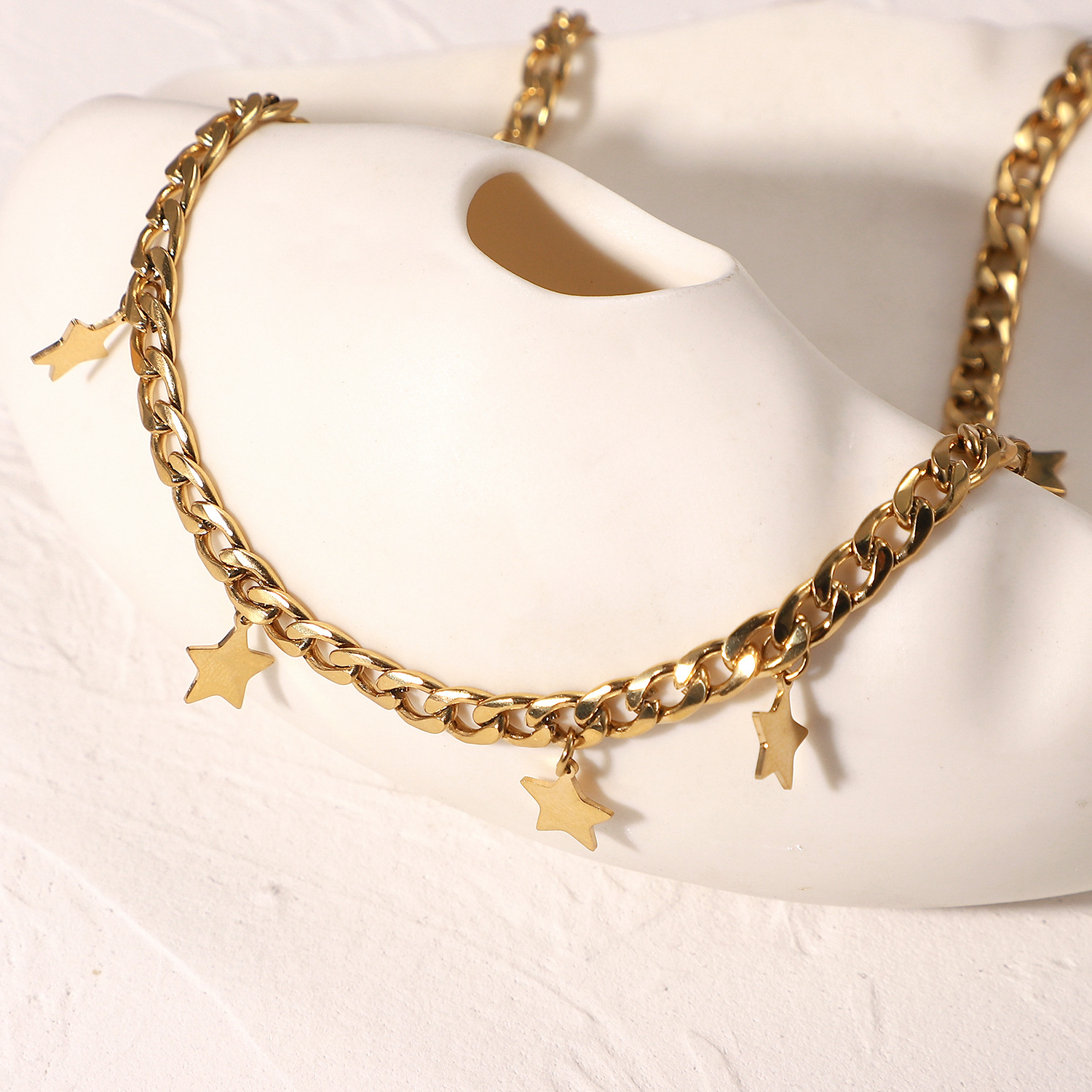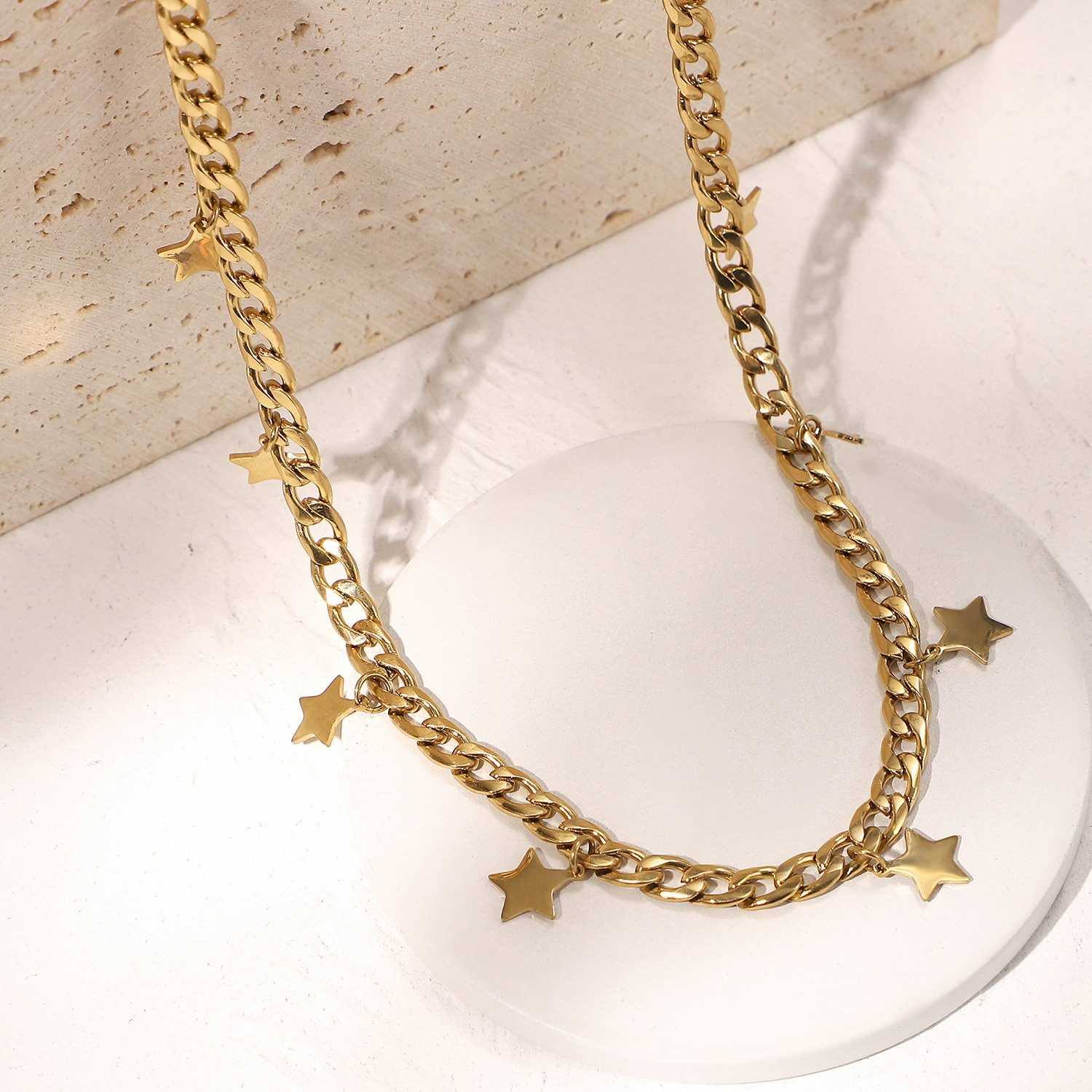 标题:防水首饰14K镀金星星吊饰项圈派对礼物 不锈钢古巴链星星项链女式