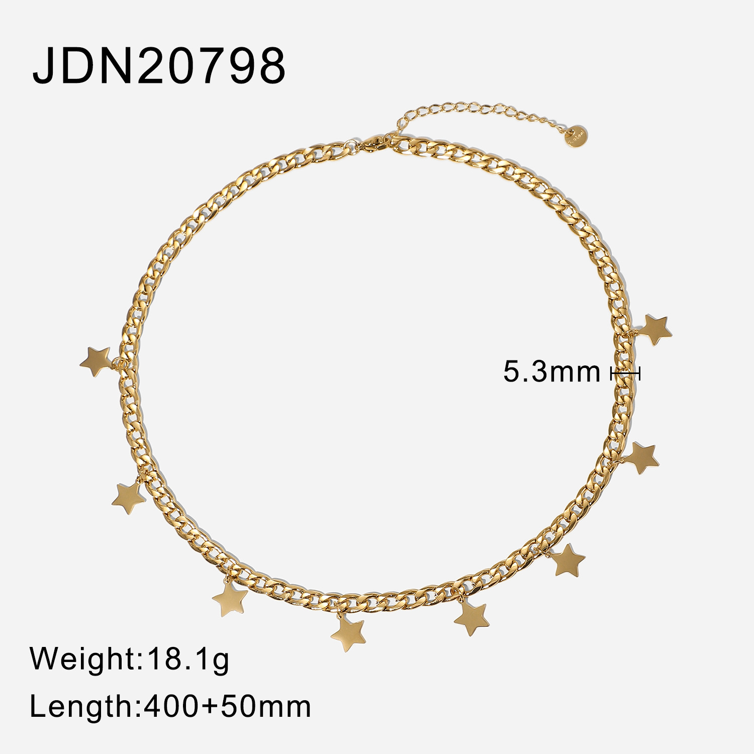 描述:风格:简约,材质:不锈钢,处理工艺:电镀,品牌:Youthway,生产编号:JDN20798,销售序列号:JDN20798,种类:项坠、吊坠,样式:女式,造型:五角星,包装:独立包装,适用送礼场合:婚庆,旅游纪念,员工福利,加工定制:是,货号:JDN20798,产地:浙江义乌,链子样式:古巴链,是否多层:是,是否带坠:是,延长链:10cm以下,坠子材质:钛钢,周长:21cm(含)-50cm(含),系列:吊坠项链,形象:星星,主要下游平台:ebay,亚马逊,wish,速卖通,独立站,LAZADA,颜色:JDN20798,主要销售地区:非洲,欧洲,南美,东南亚,北美,东北亚,中东,有可授权的自有品牌:是,是否跨境出口专供货源:是,流行元素:金属,链条,几何,上市年份/季节:2021年冬季,