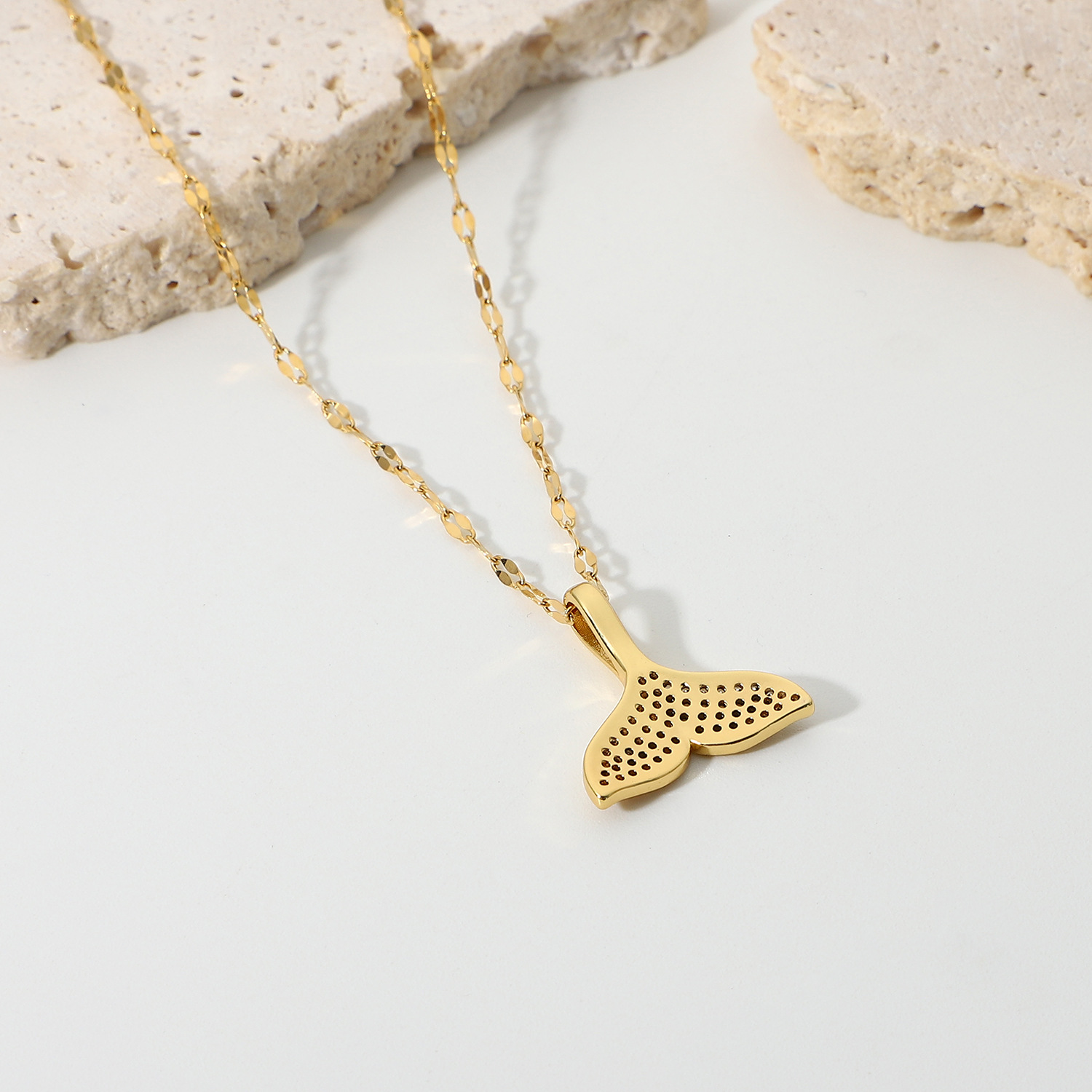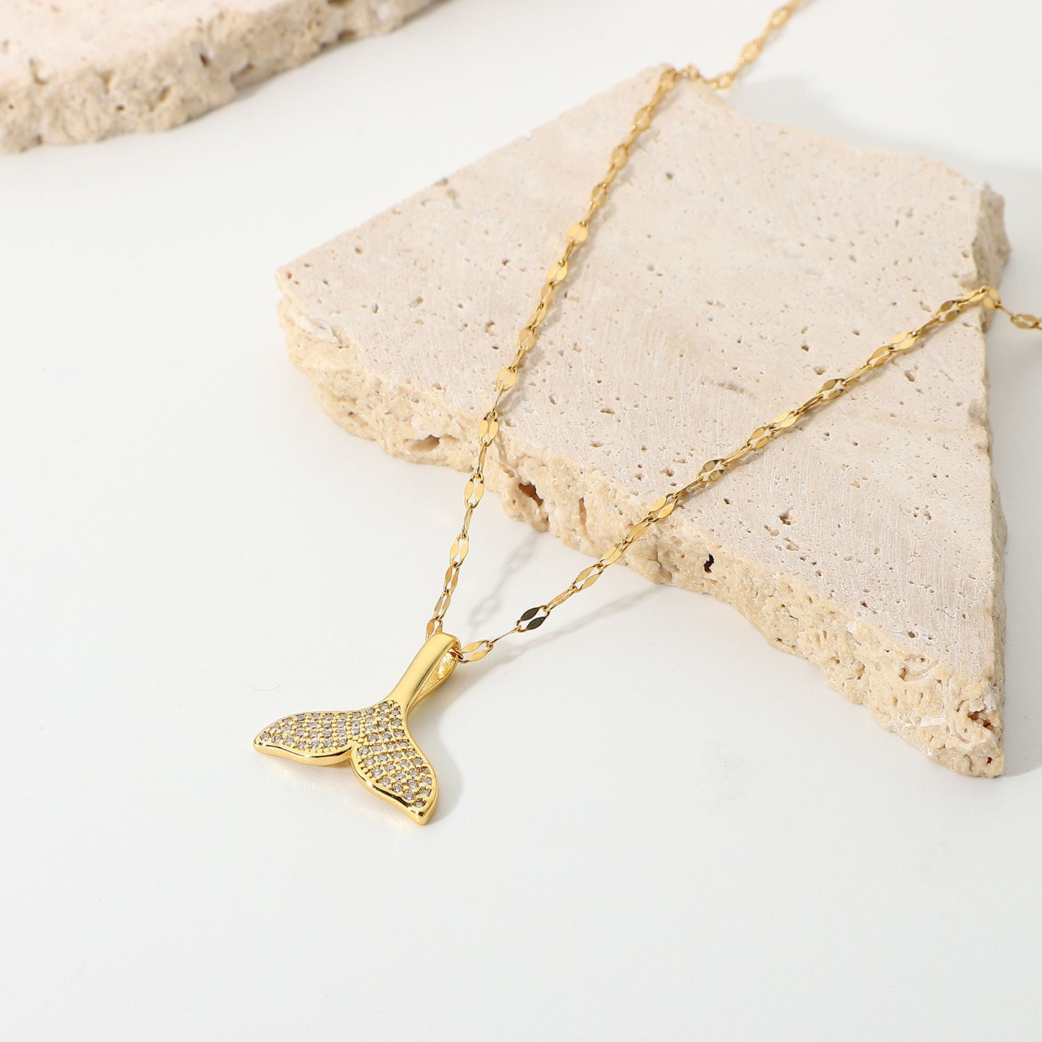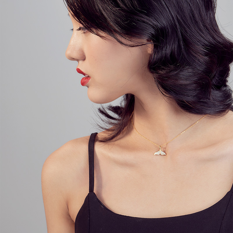 标题:欧美INS网红款时尚满钻锆石美人鱼鱼尾吊坠项链18K镀金项链饰品女