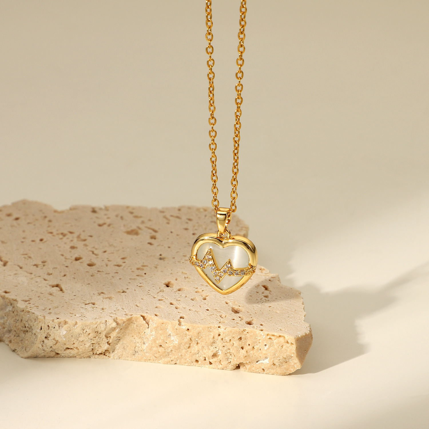 标题:简约镀金爱心蛋白石项链首饰 18K镀金不锈钢心形吊坠项链女式饰品