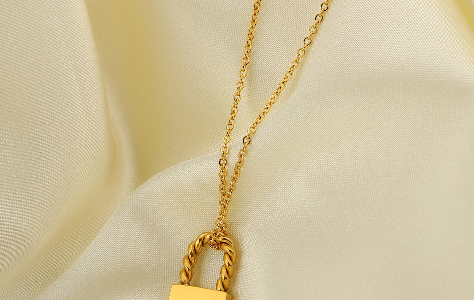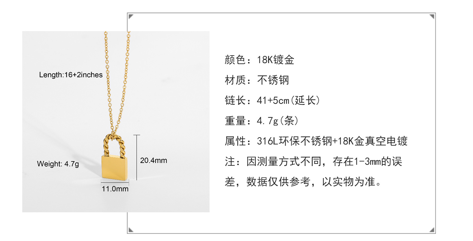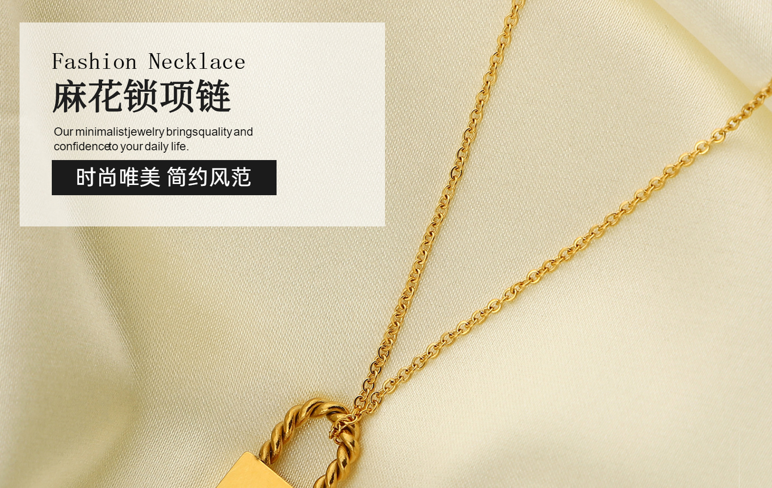 标题:欧美INS麻花锁项链别致的锁吊坠项链18K镀金316L女性不锈钢项链