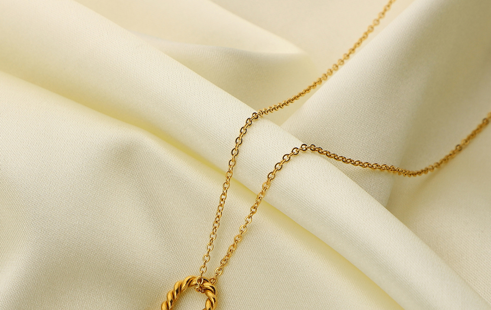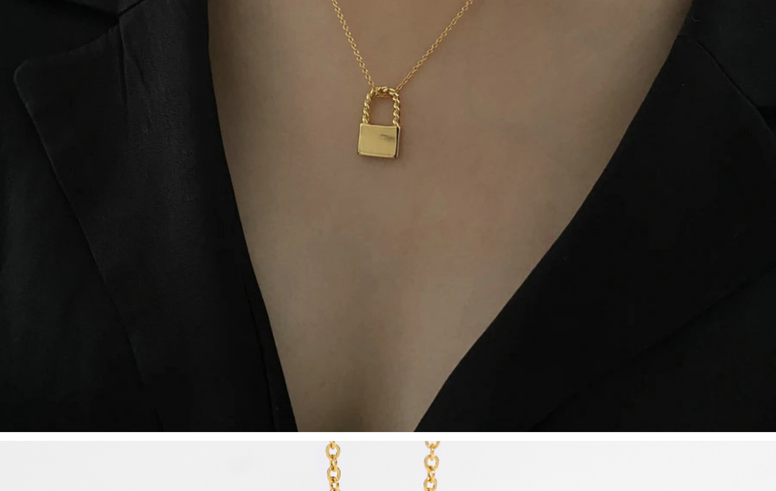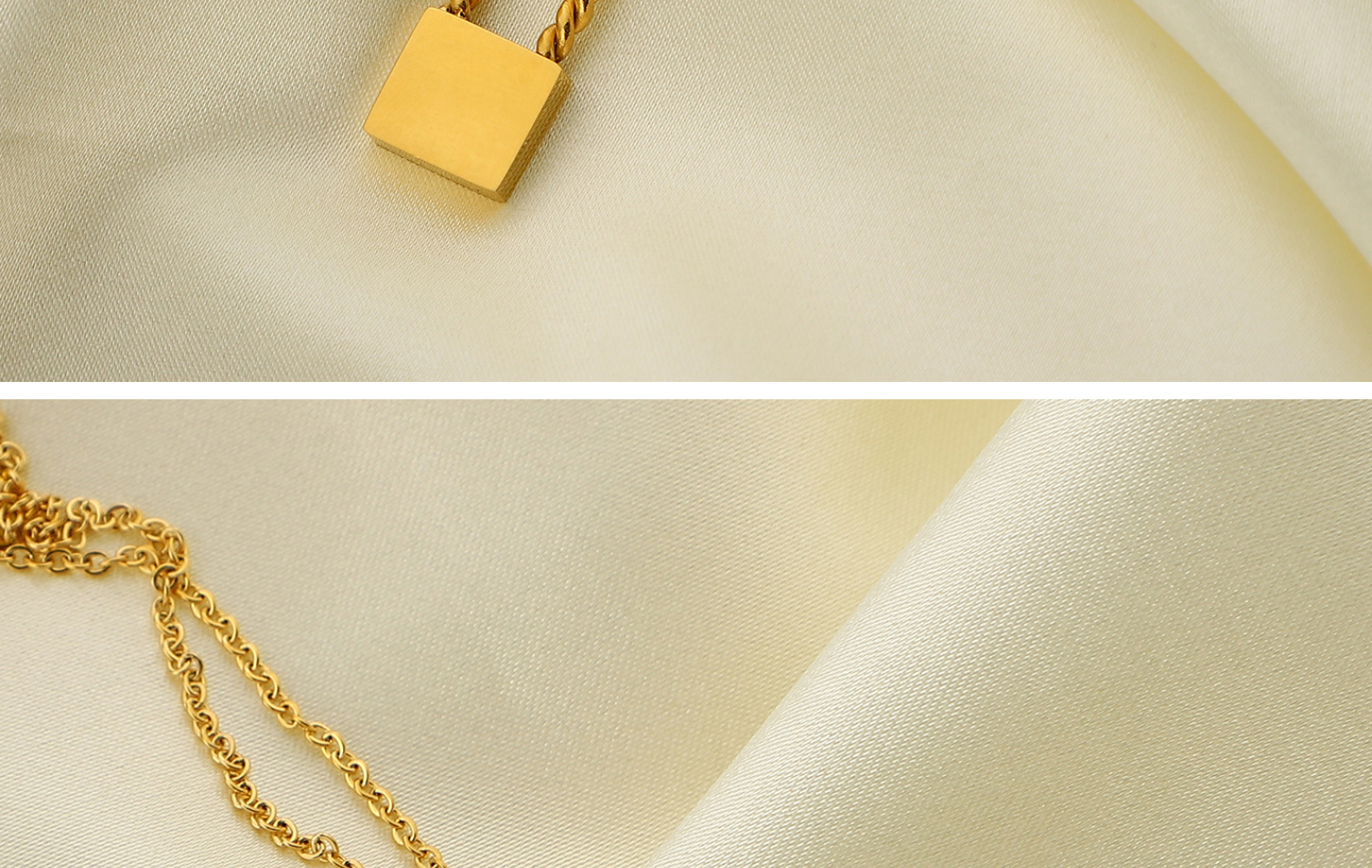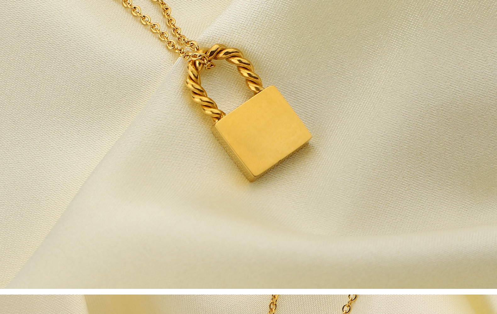 标题:欧美INS麻花锁项链别致的锁吊坠项链18K镀金316L女性不锈钢项链