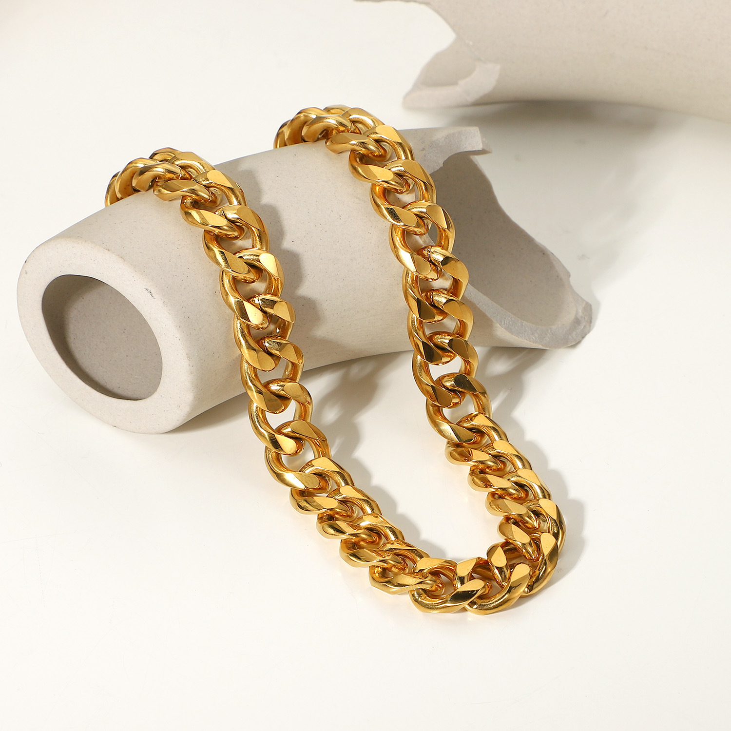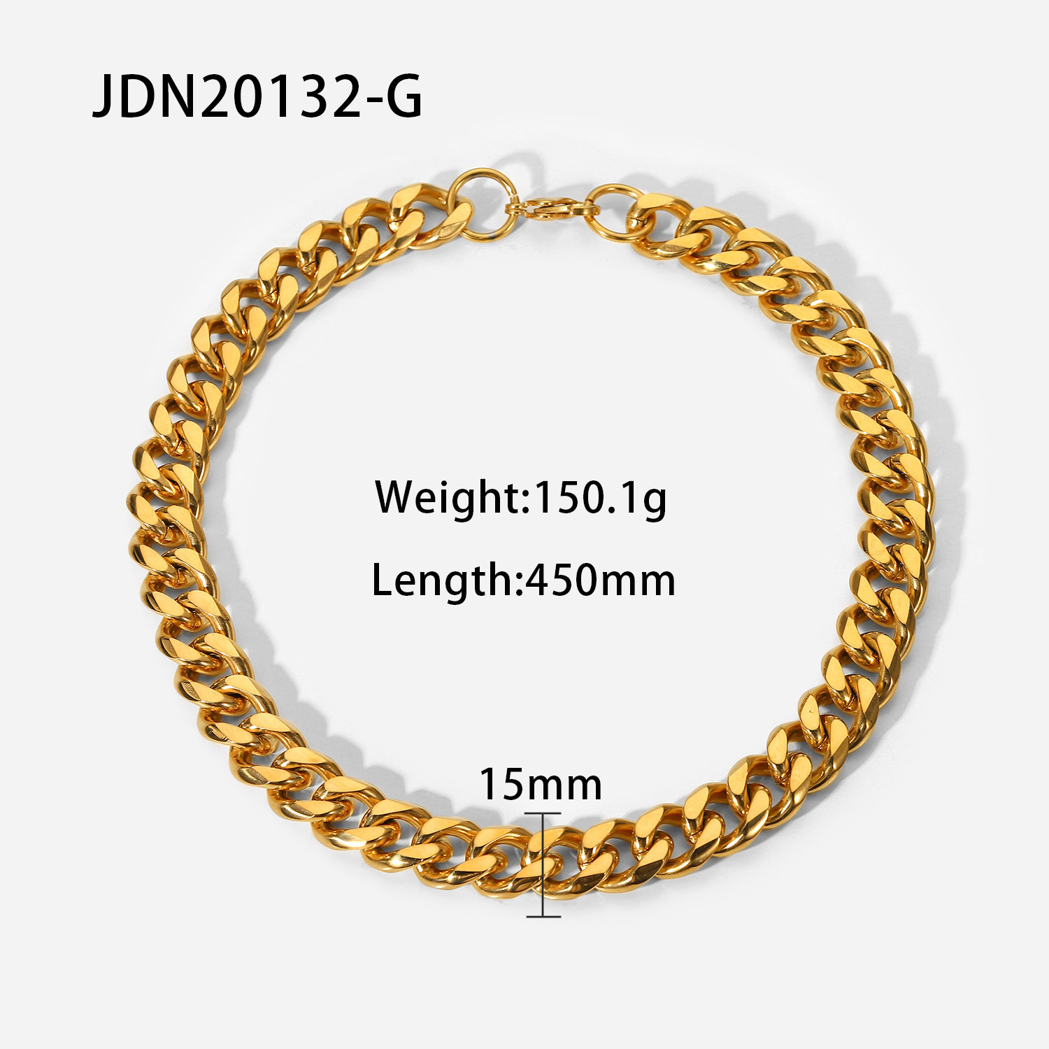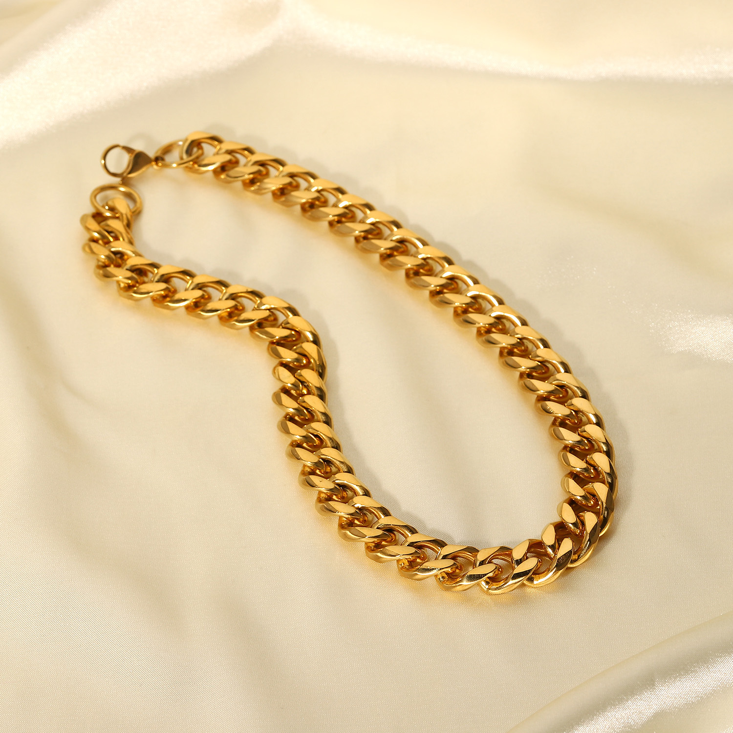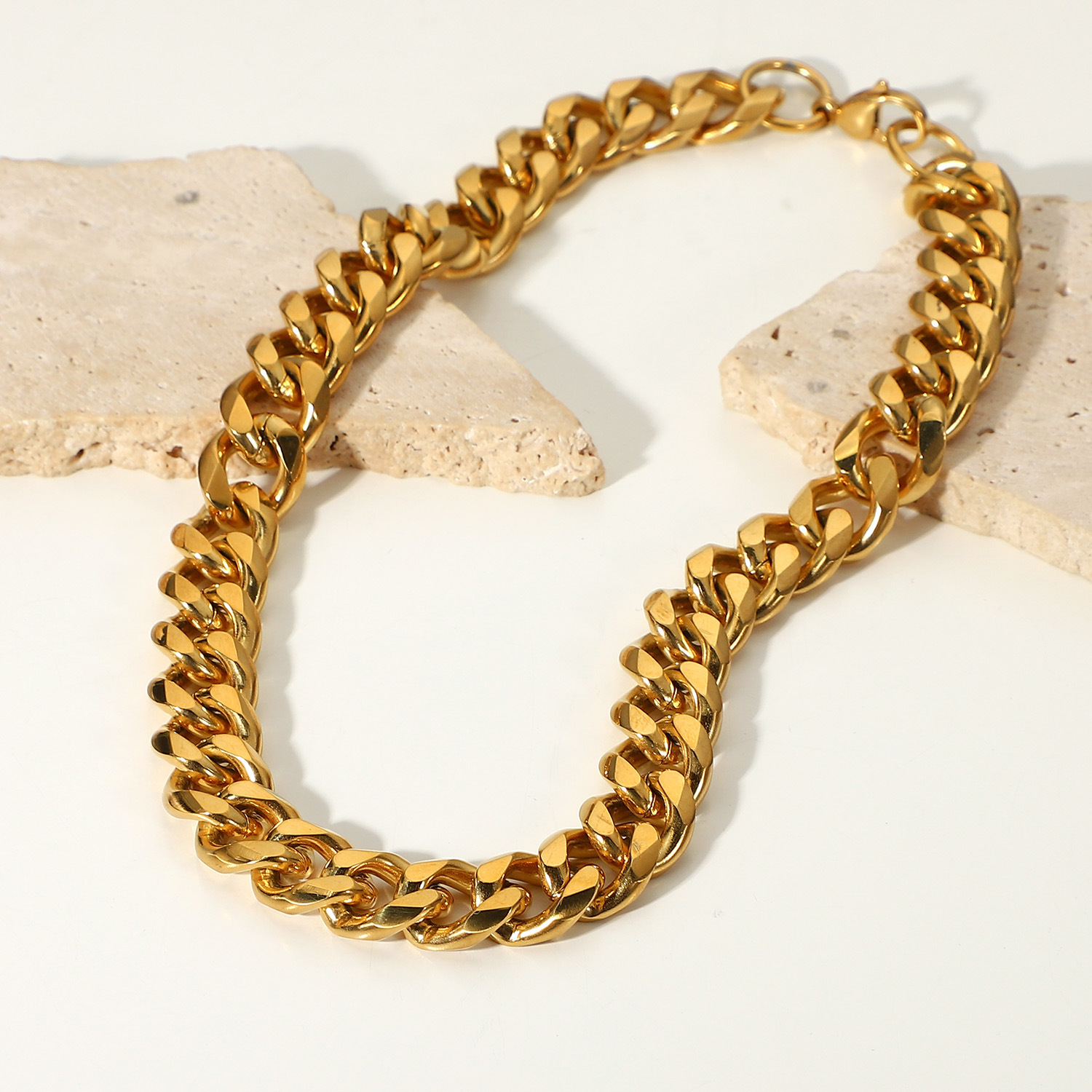 标题:15毫米宽粗路缘链项链 INS博主朋克珠宝镀金不锈钢古巴链项链女士