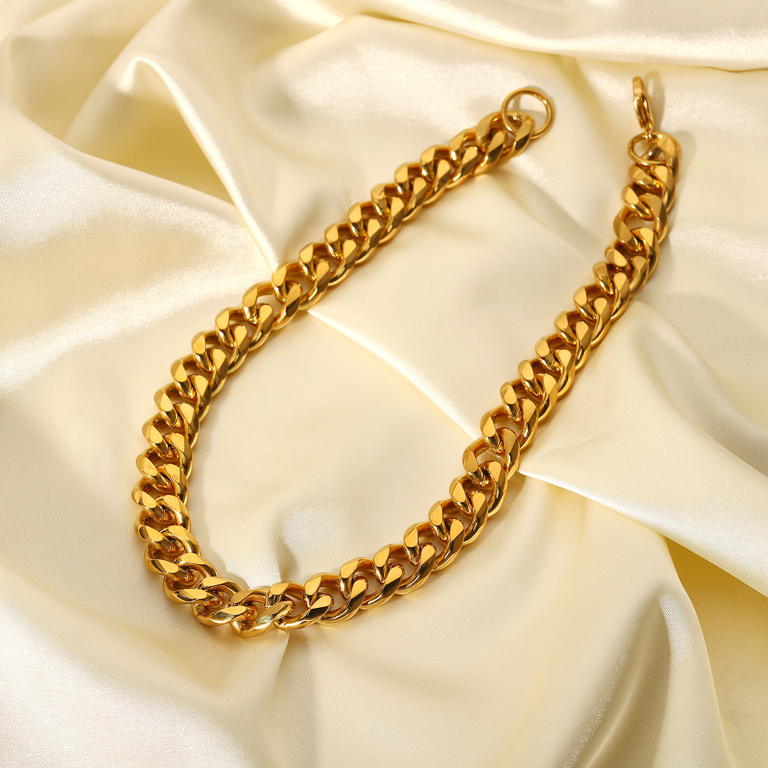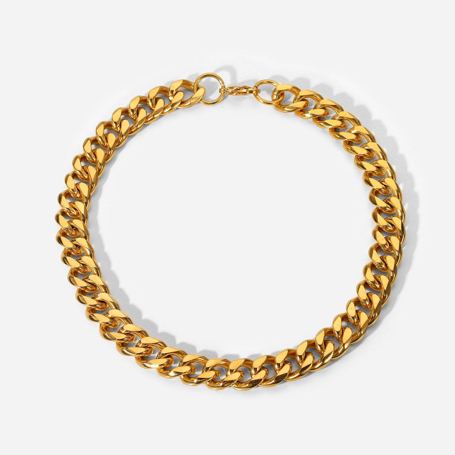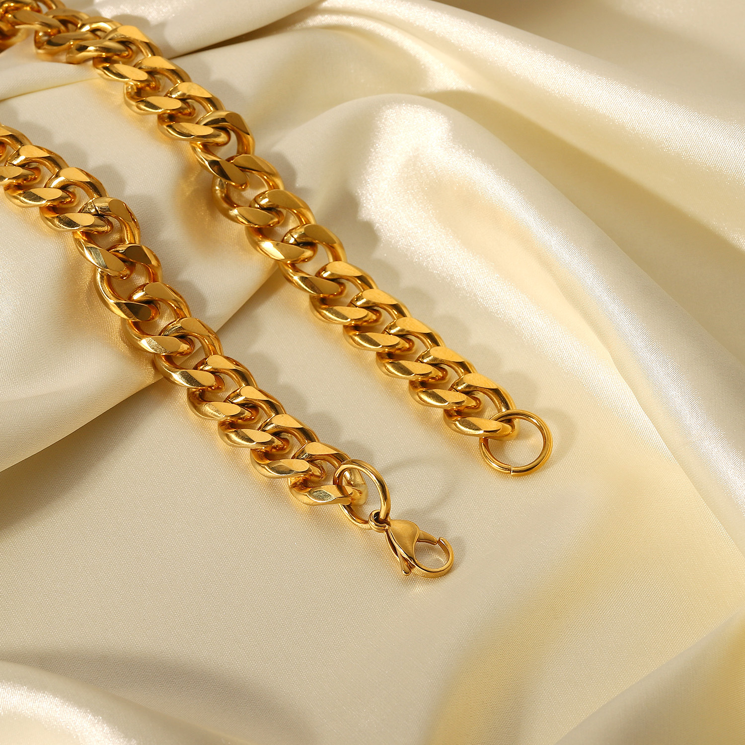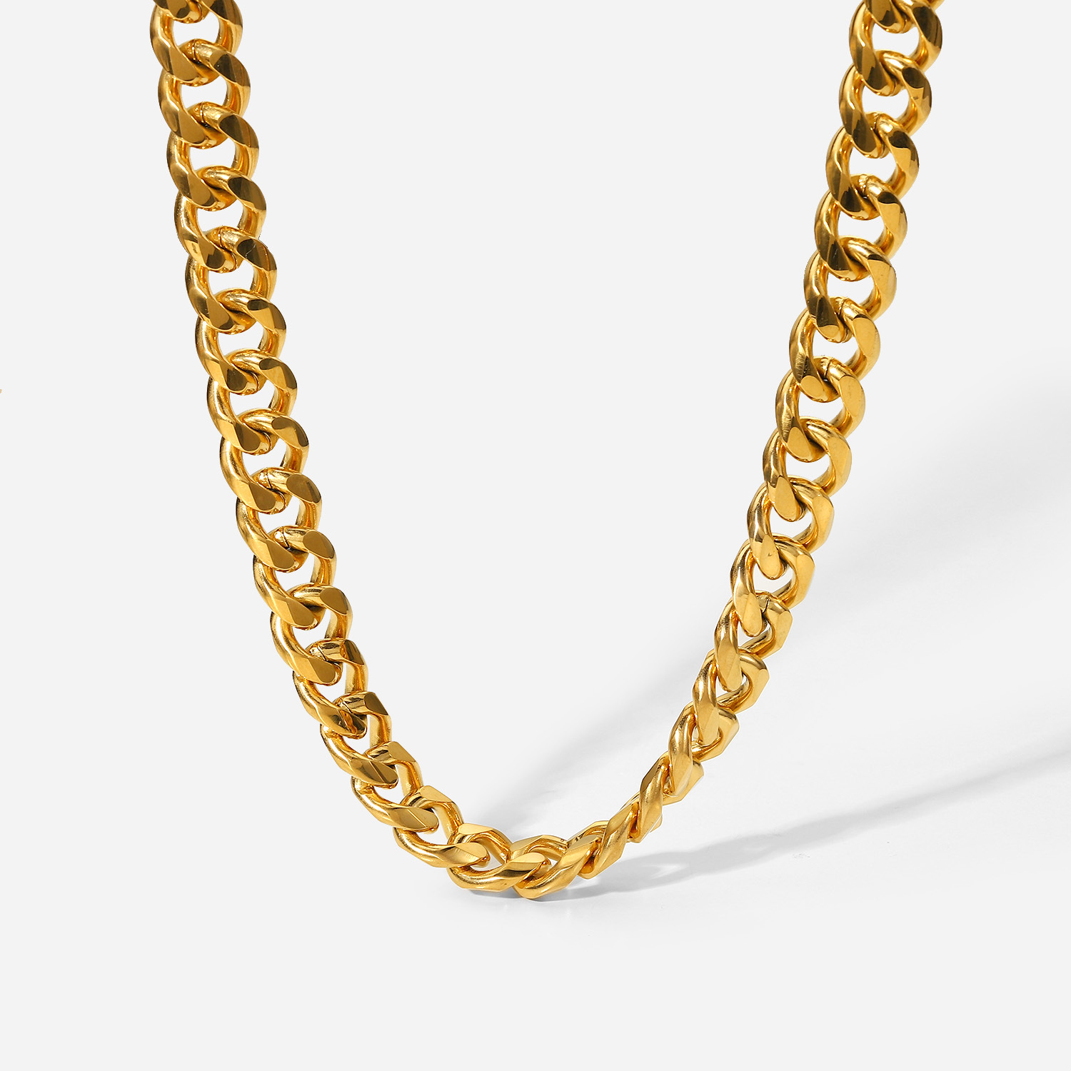 标题:15毫米宽粗路缘链项链 INS博主朋克珠宝镀金不锈钢古巴链项链女士