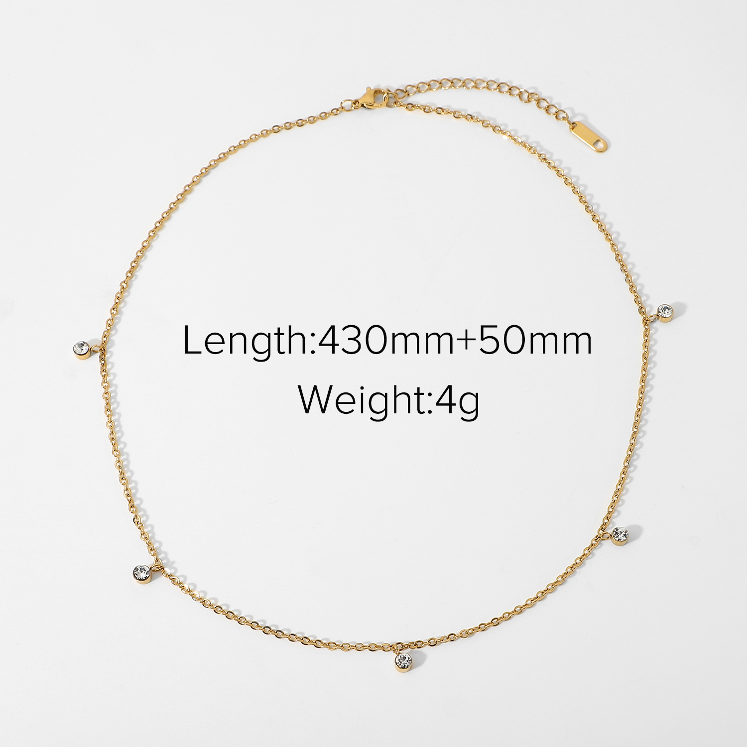 标题:女性时尚首饰18K镀金锆石吊坠项链 不锈钢透明水晶锆石女项链饰品