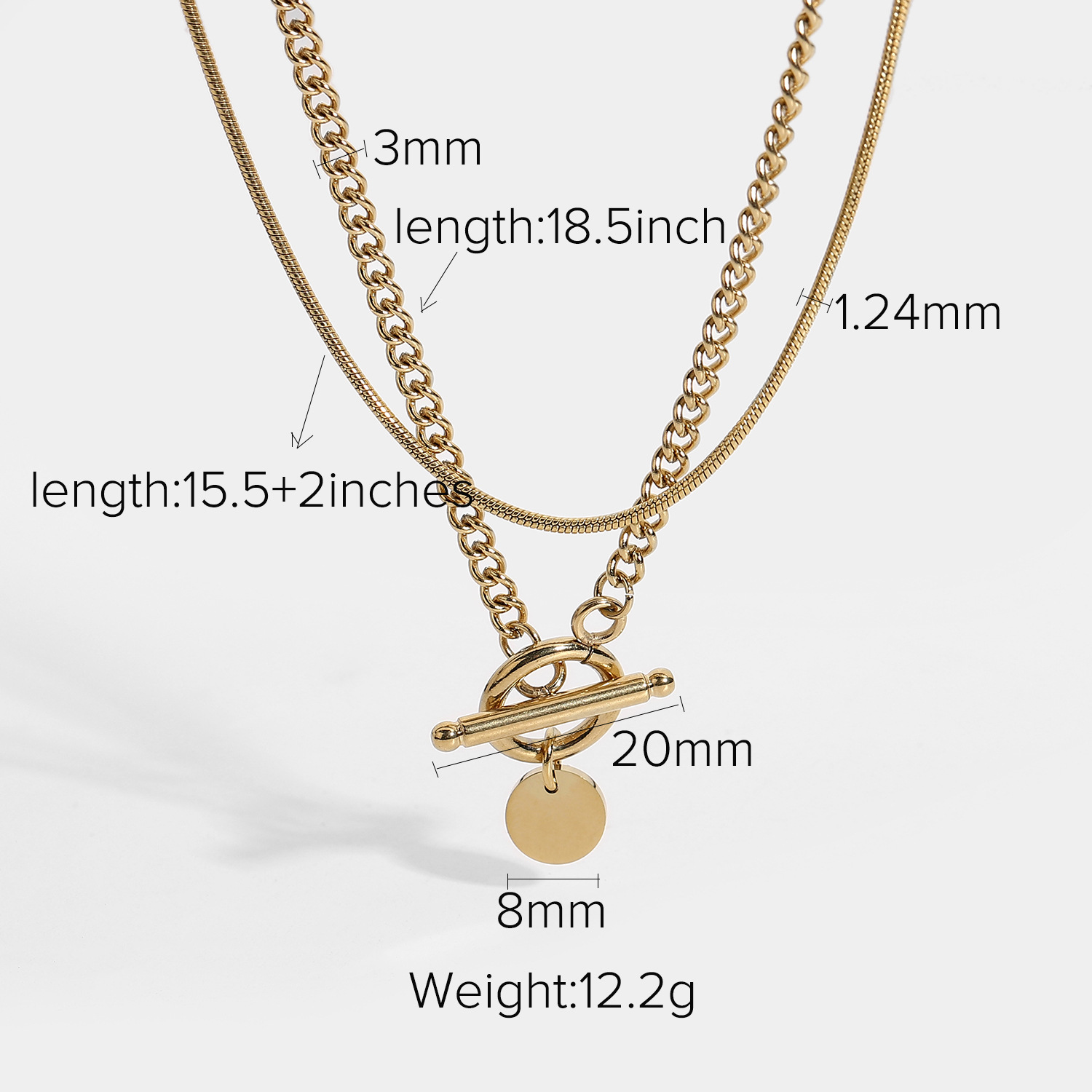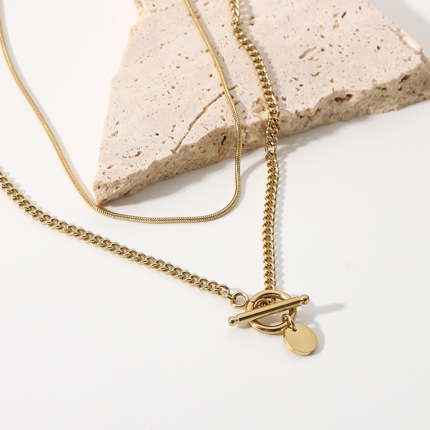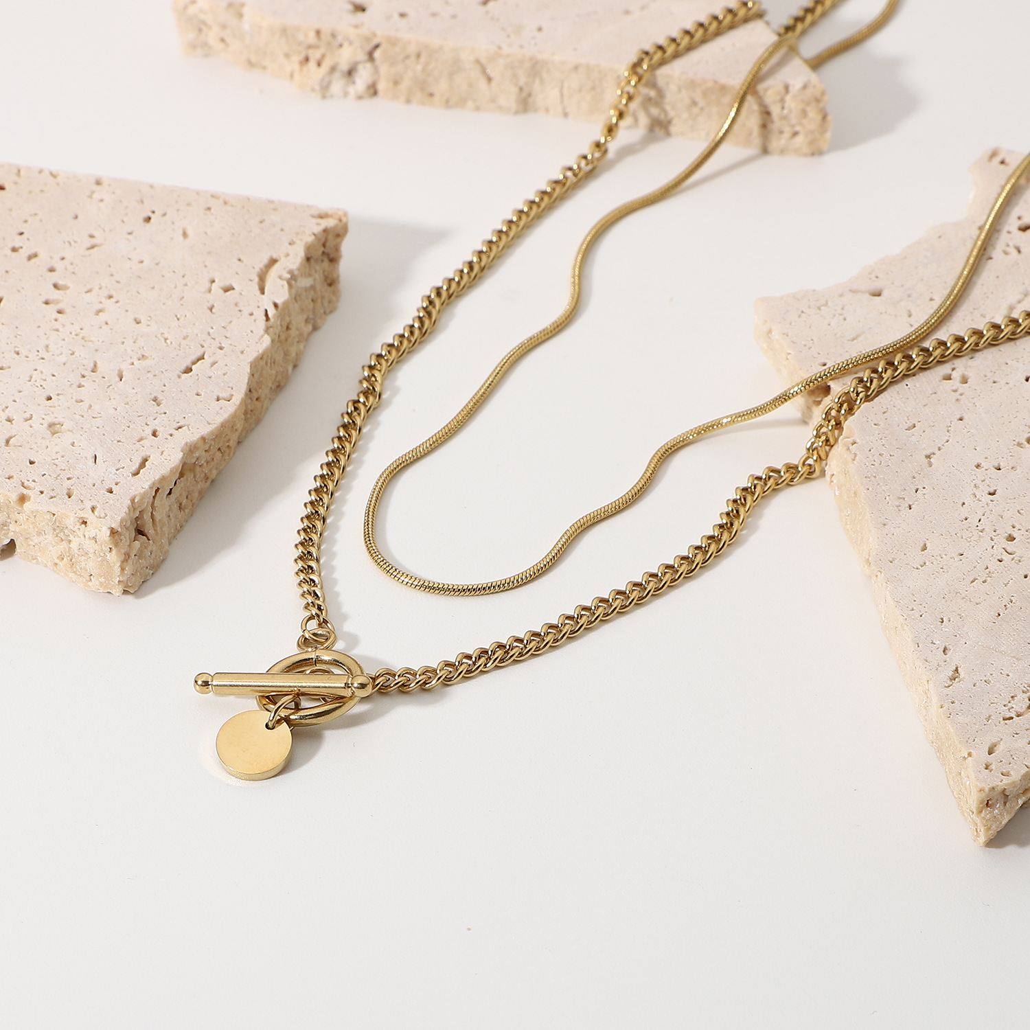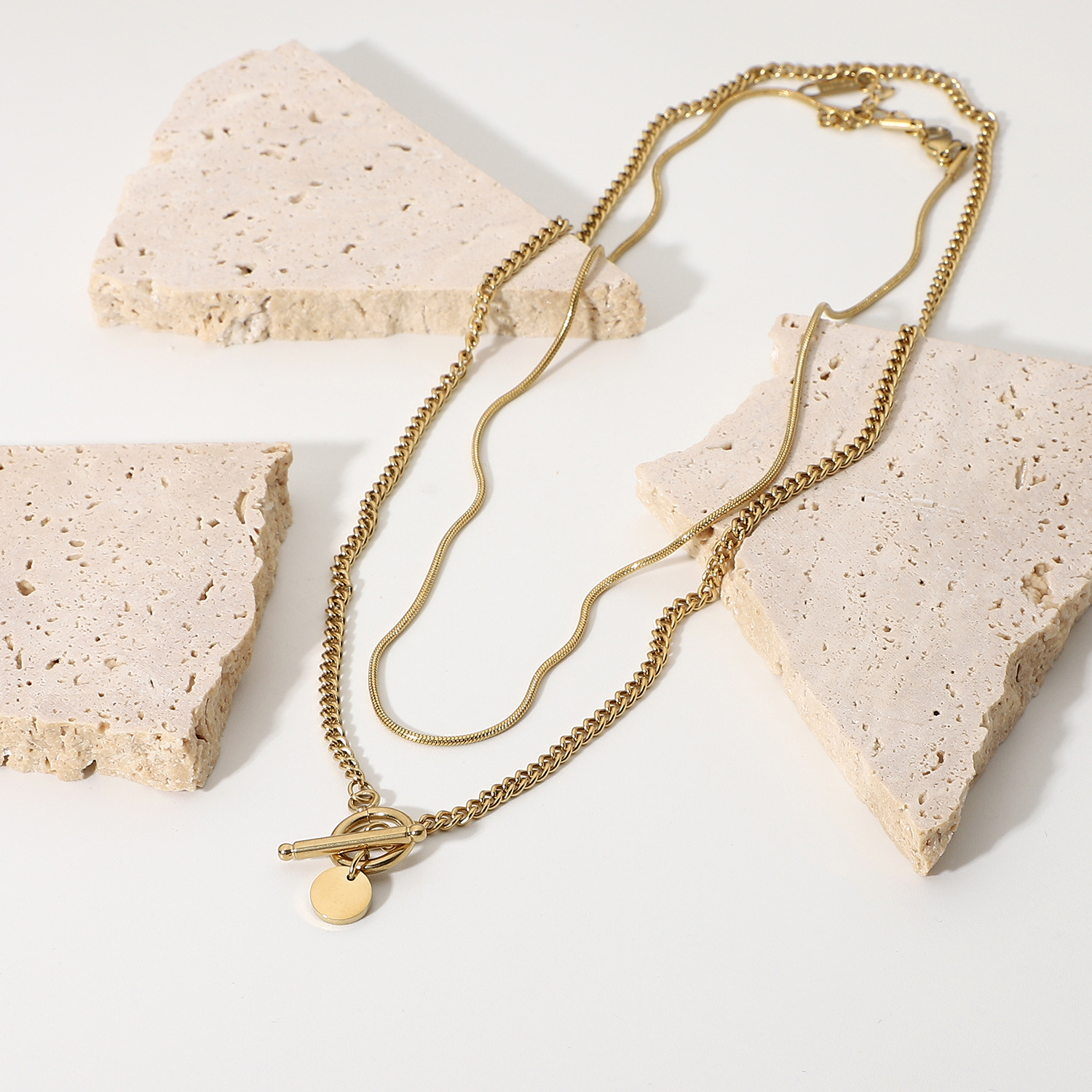 标题:14K金色双层细蛇骨链古巴链OT扣项链 不锈钢金属INS风同款项链女