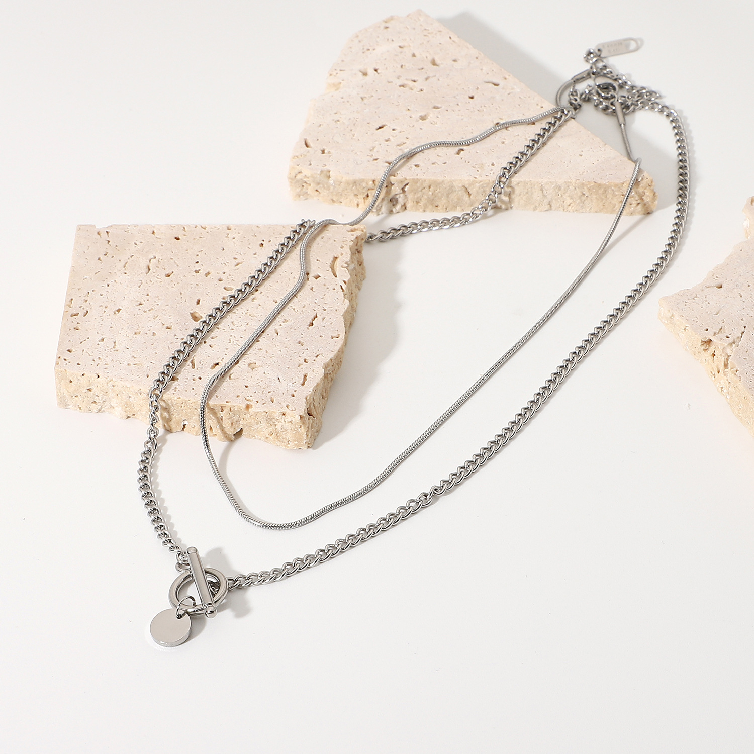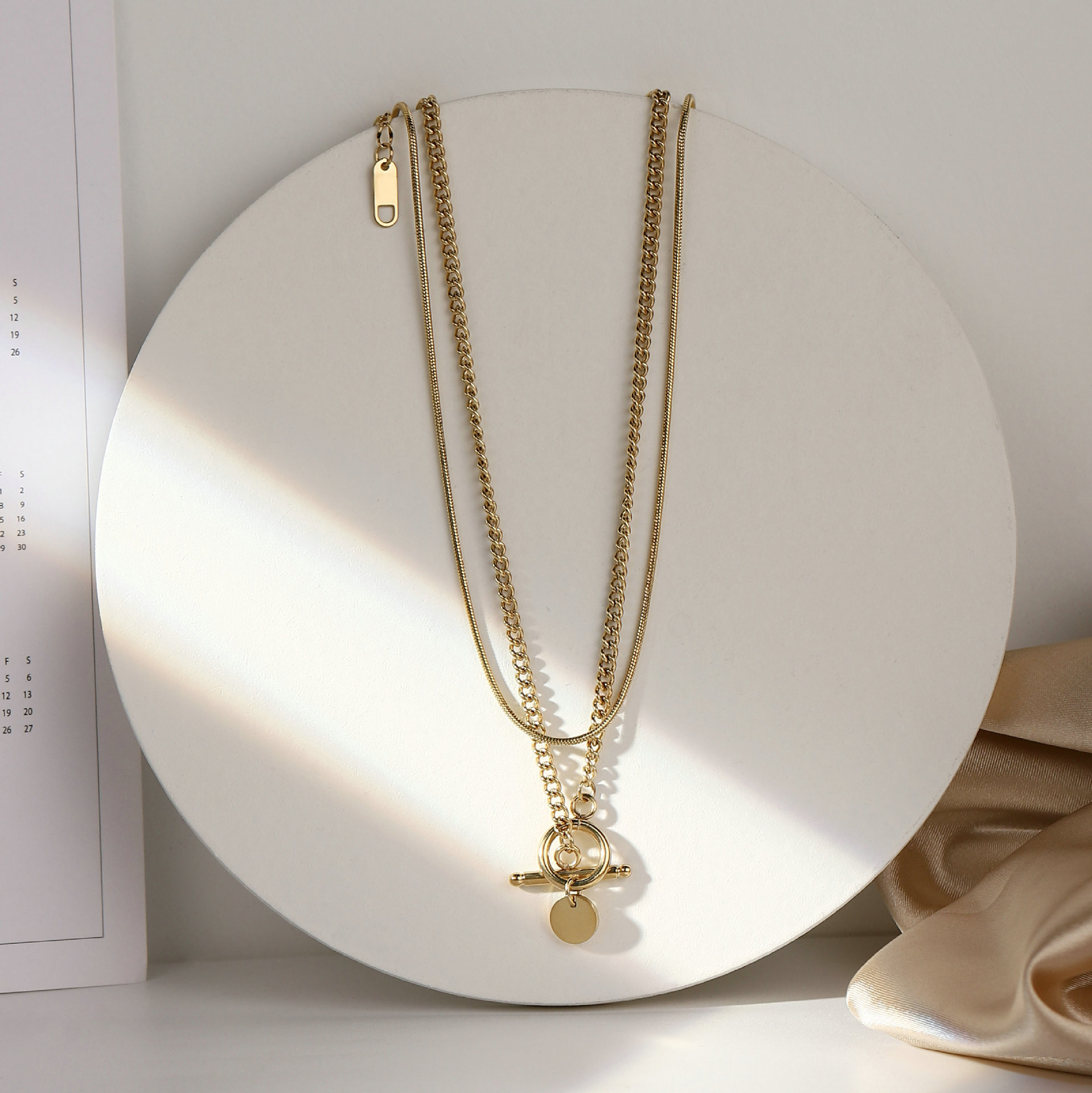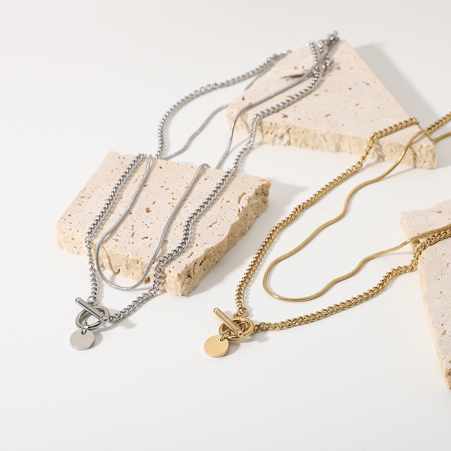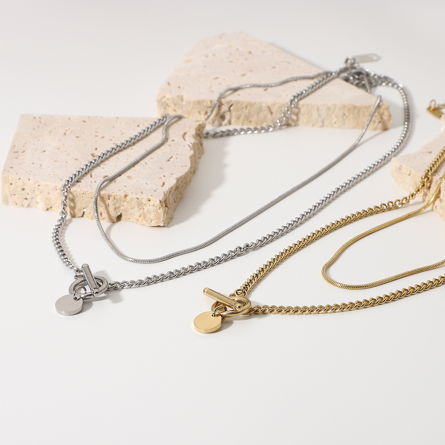 标题:14K金色双层细蛇骨链古巴链OT扣项链 不锈钢金属INS风同款项链女