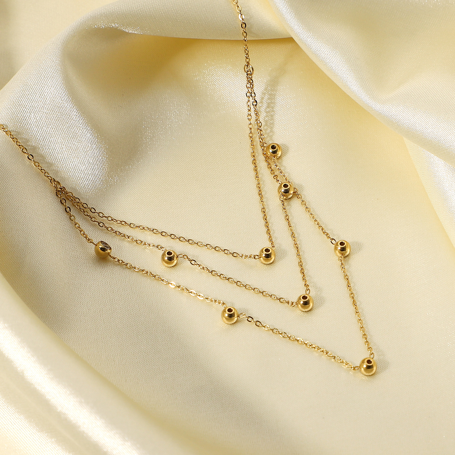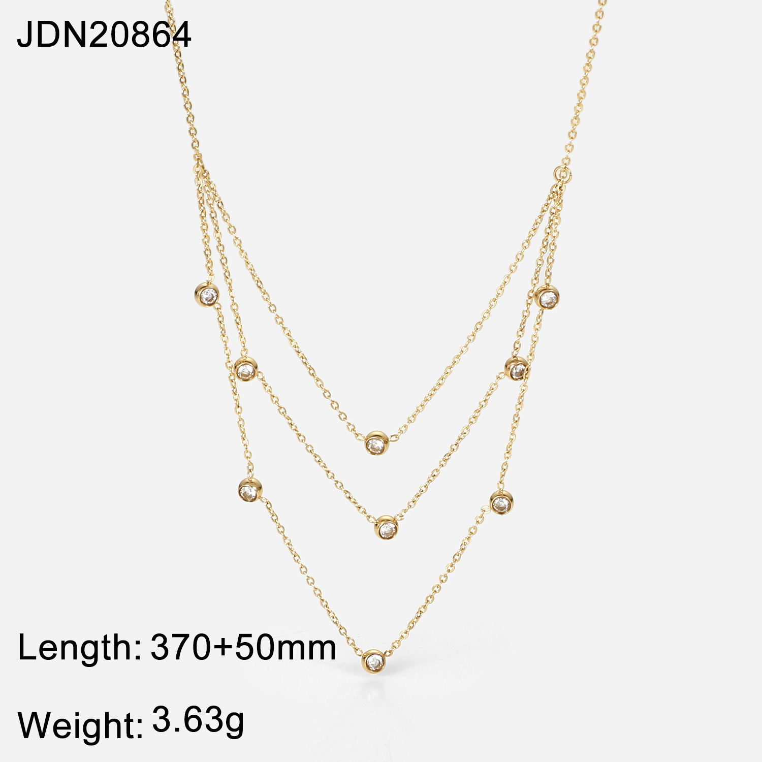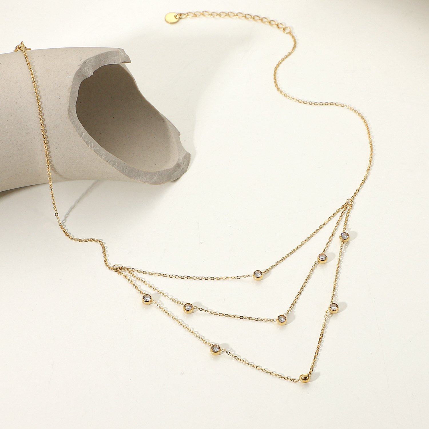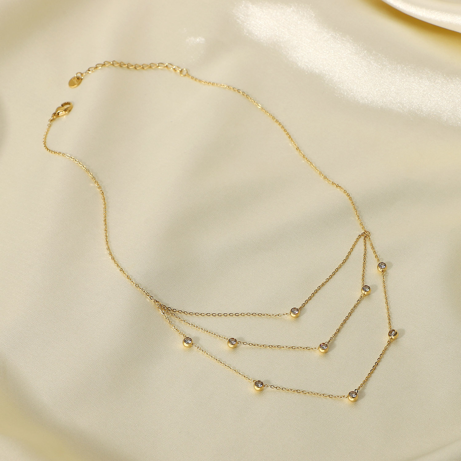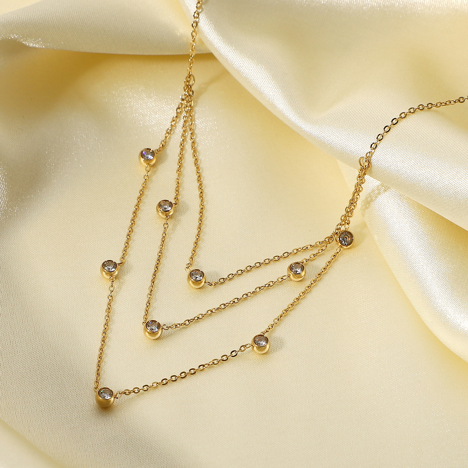 标题:INS风新款多层不锈钢首饰14K金白色圆形水晶流苏链立方氧化锆项链