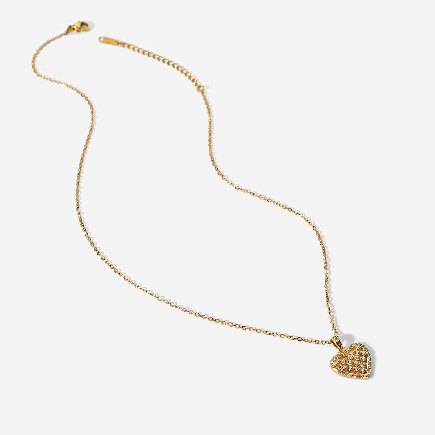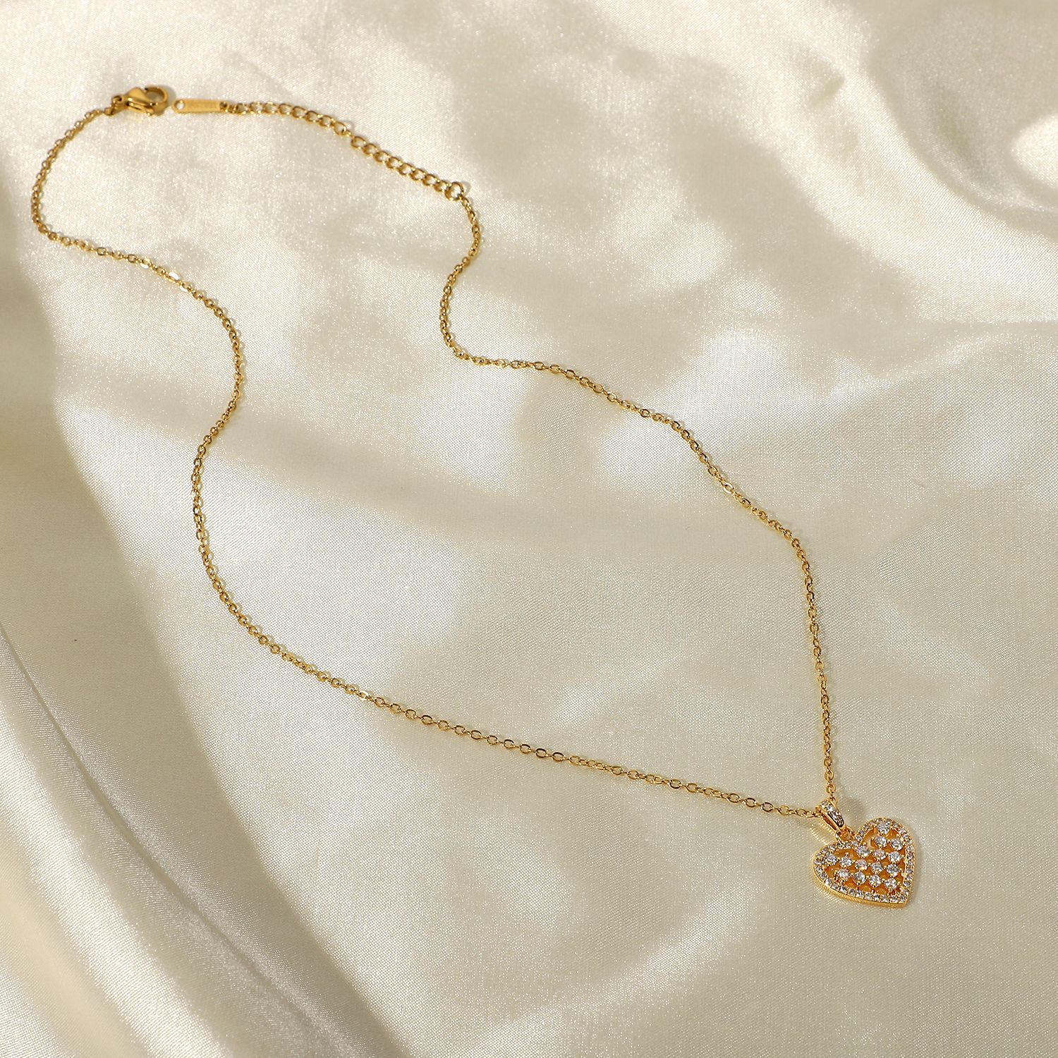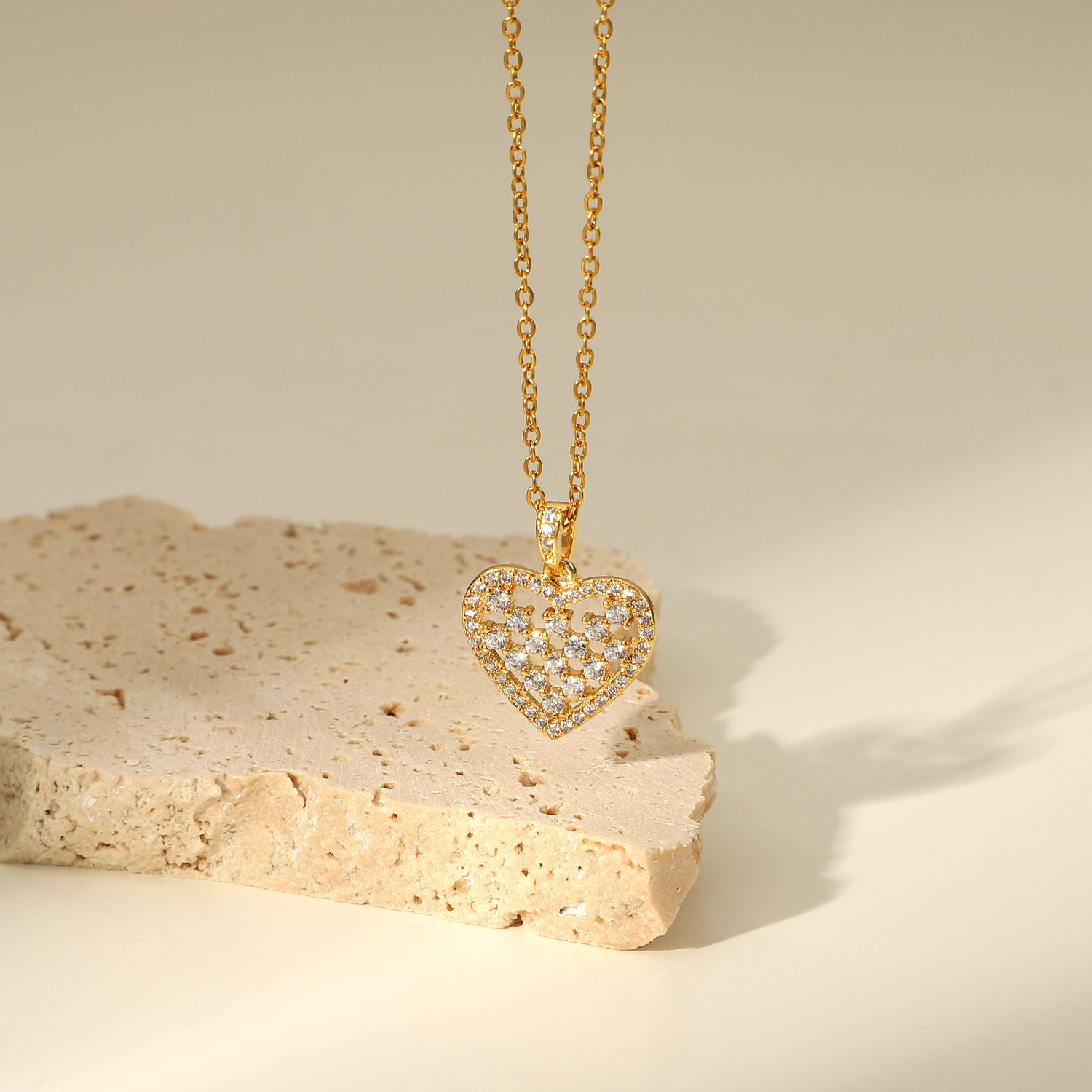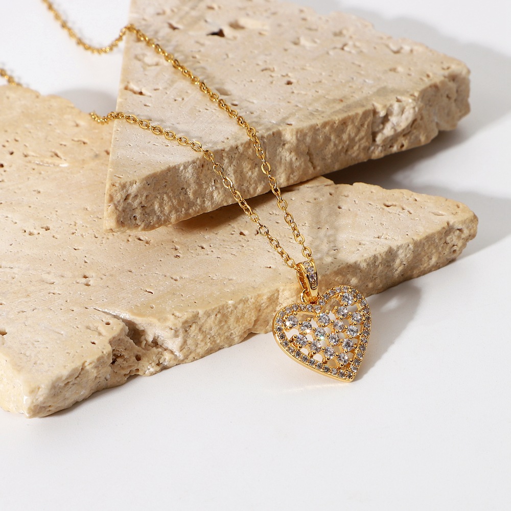 标题:欧美INS风18K镀金不锈钢项链饰品 立方锆石心形吊坠女式空心项链