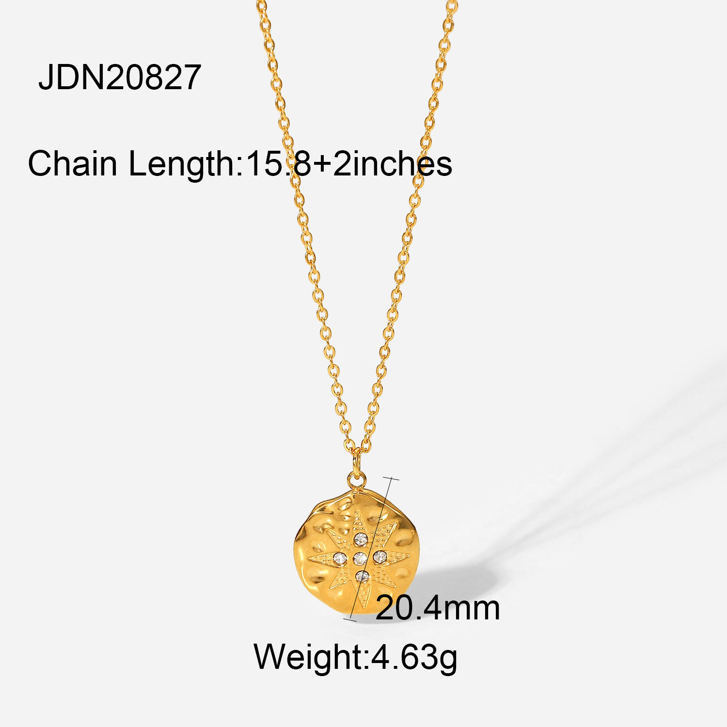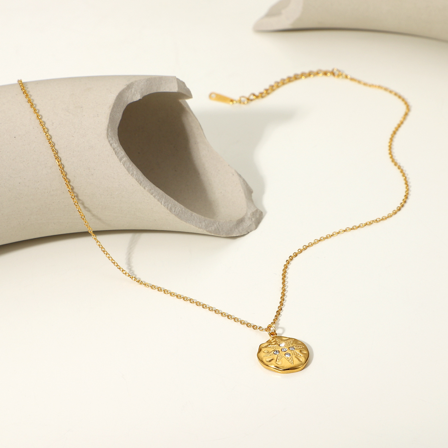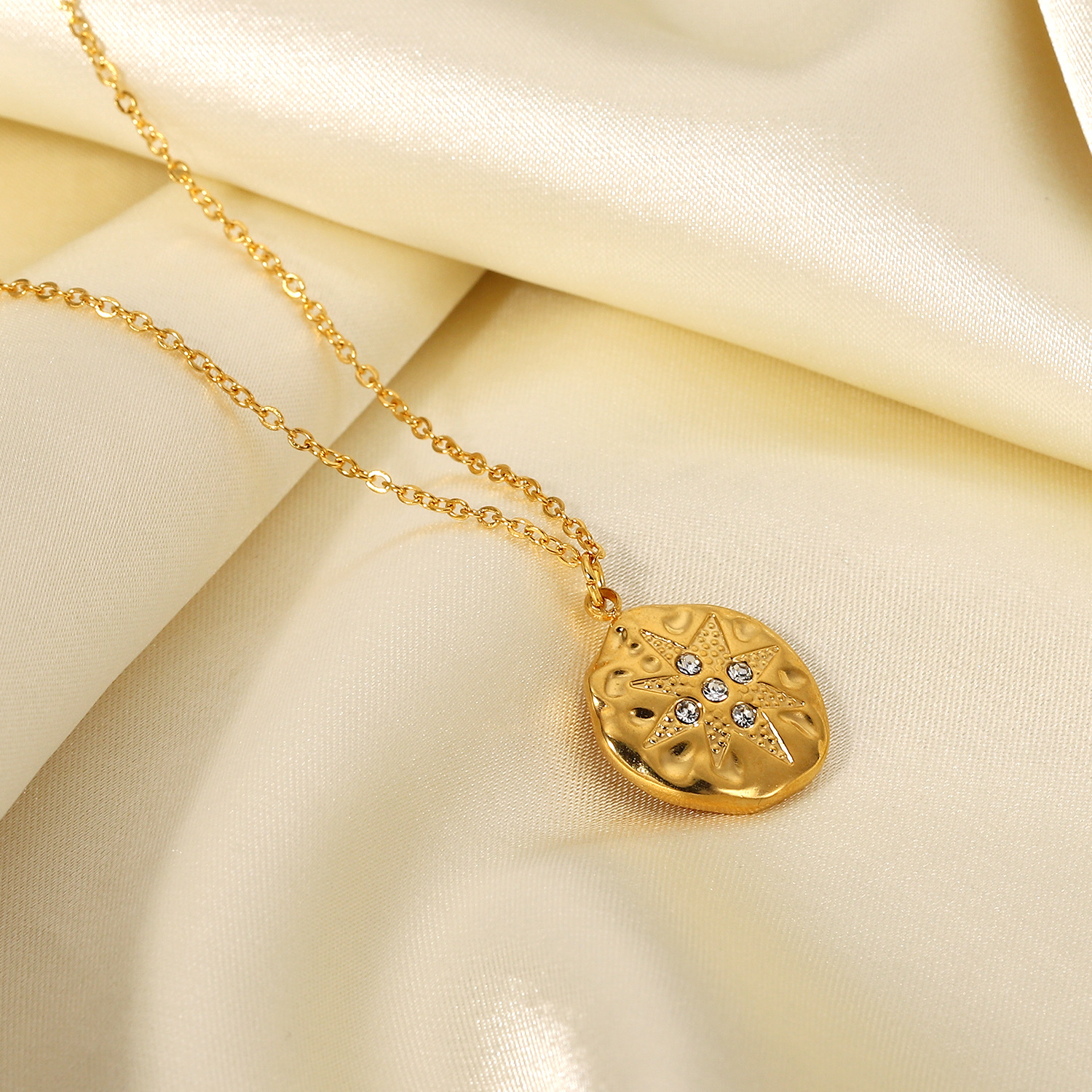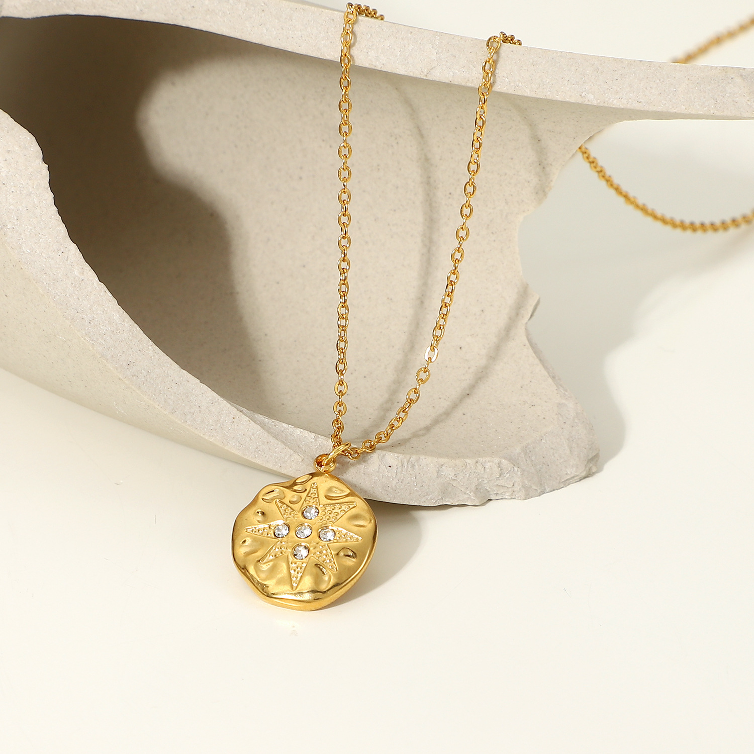标题:INS网红新款钛钢项链18K金不锈钢不规则锤纹八芒星锆石吊坠项链女