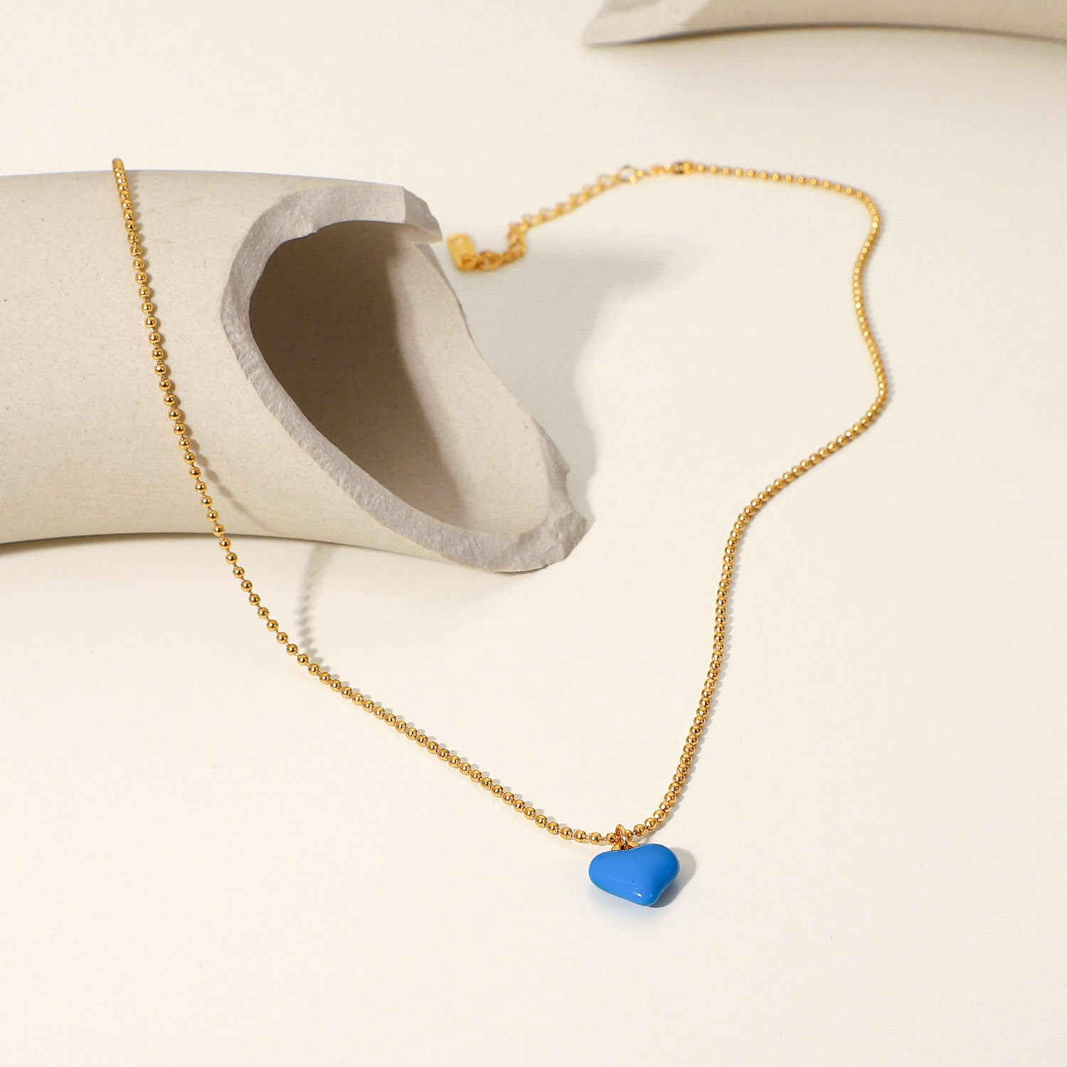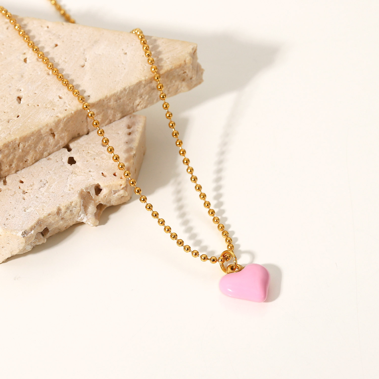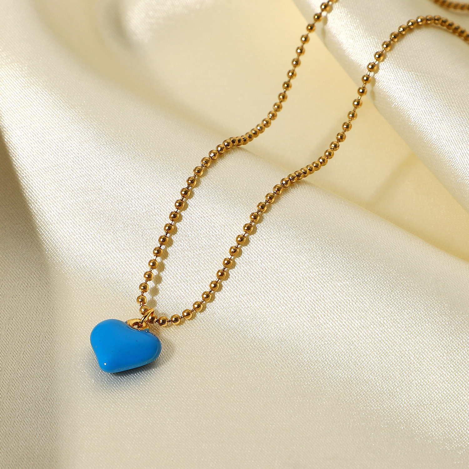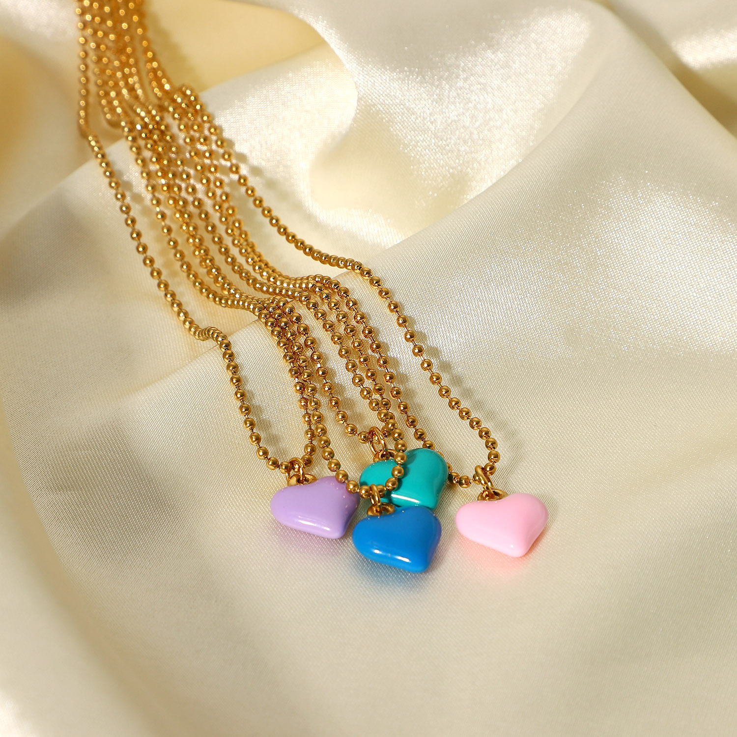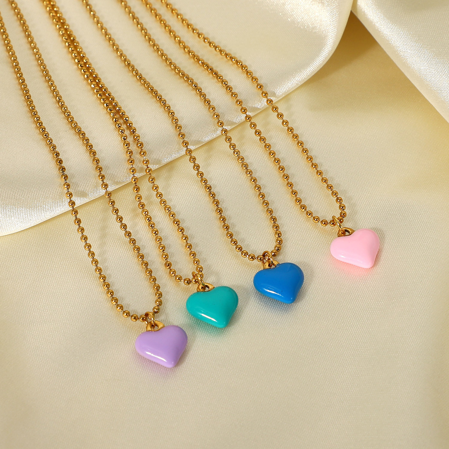 标题:INS新款时尚18k镀金不锈钢珠宝彩色珐琅心形吊坠珠链项链女士饰品