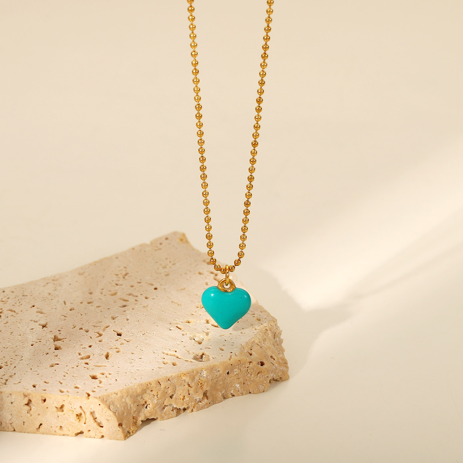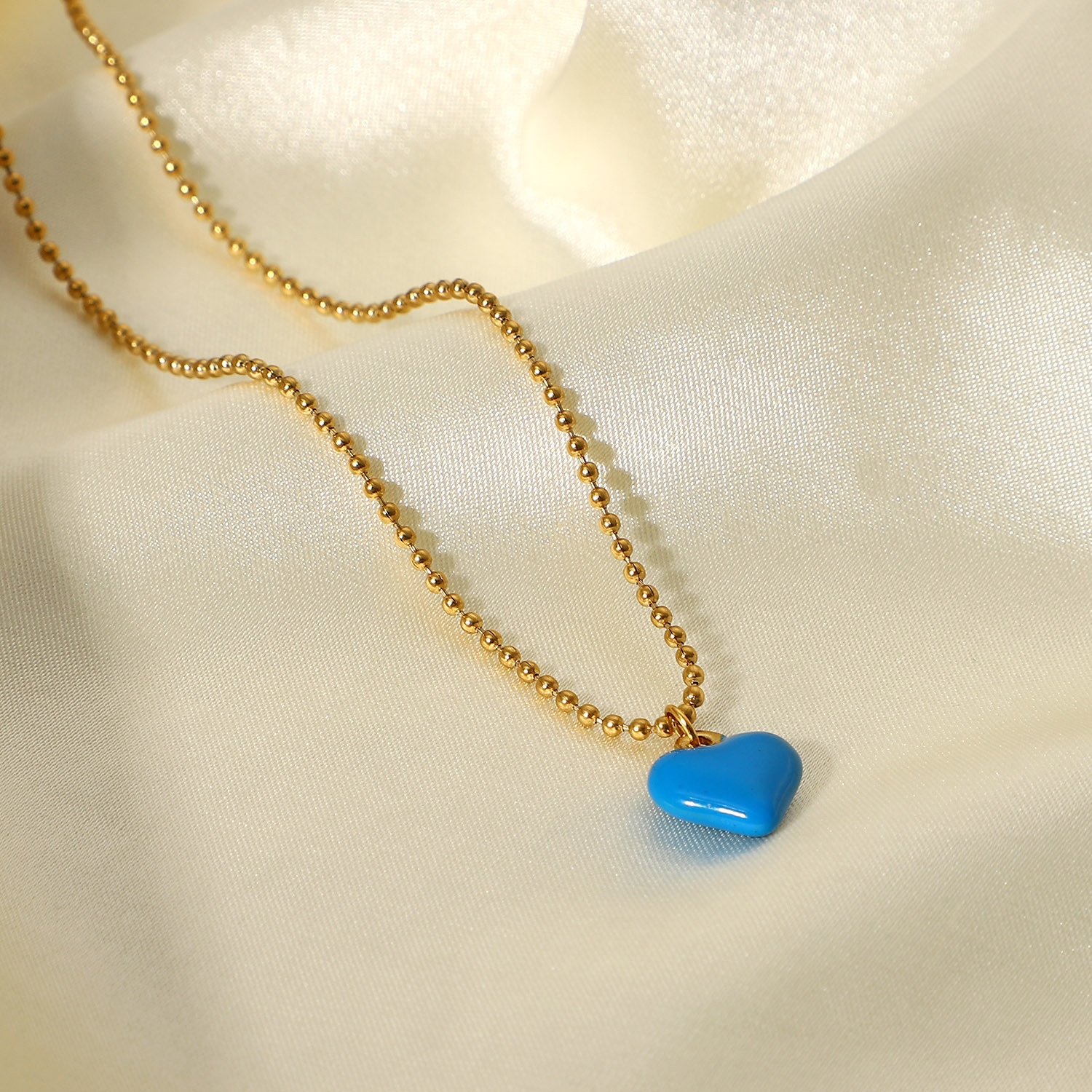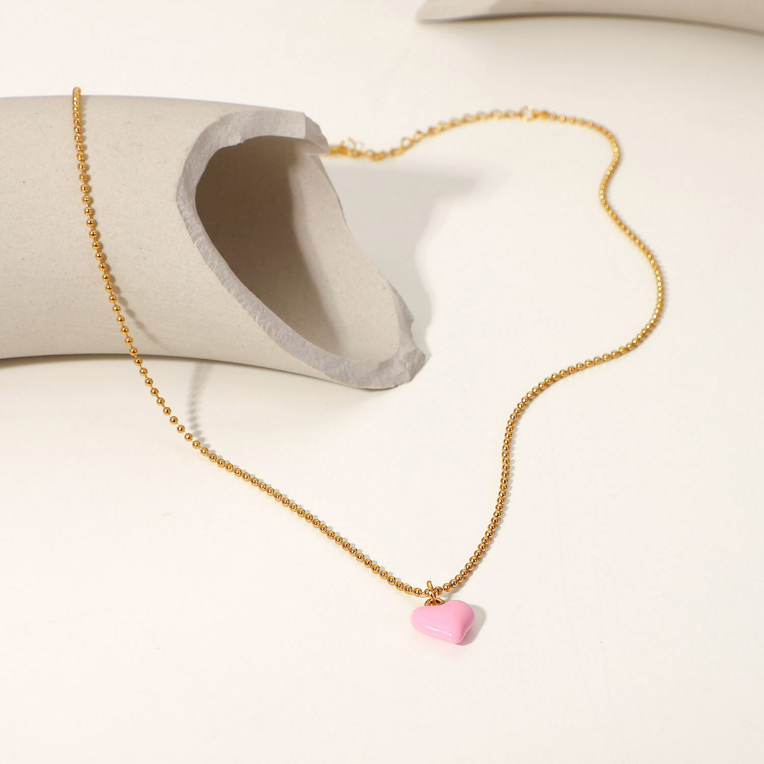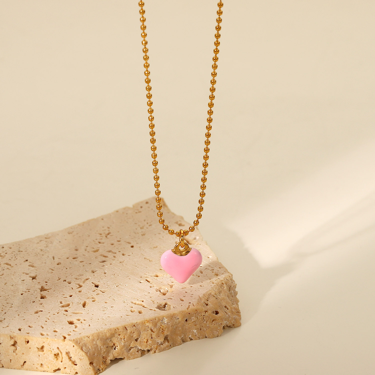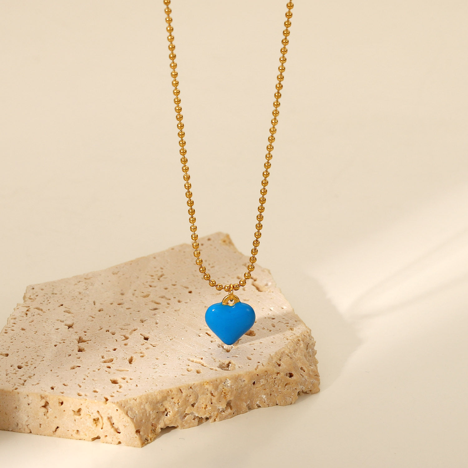 标题:INS新款时尚18k镀金不锈钢珠宝彩色珐琅心形吊坠珠链项链女士饰品