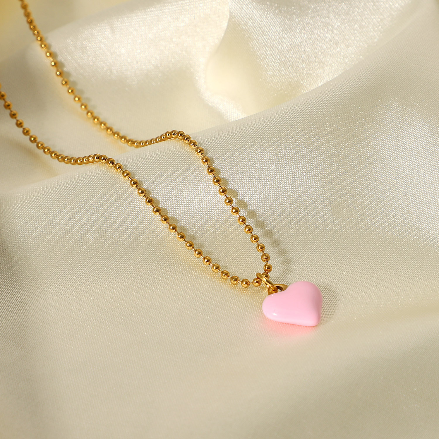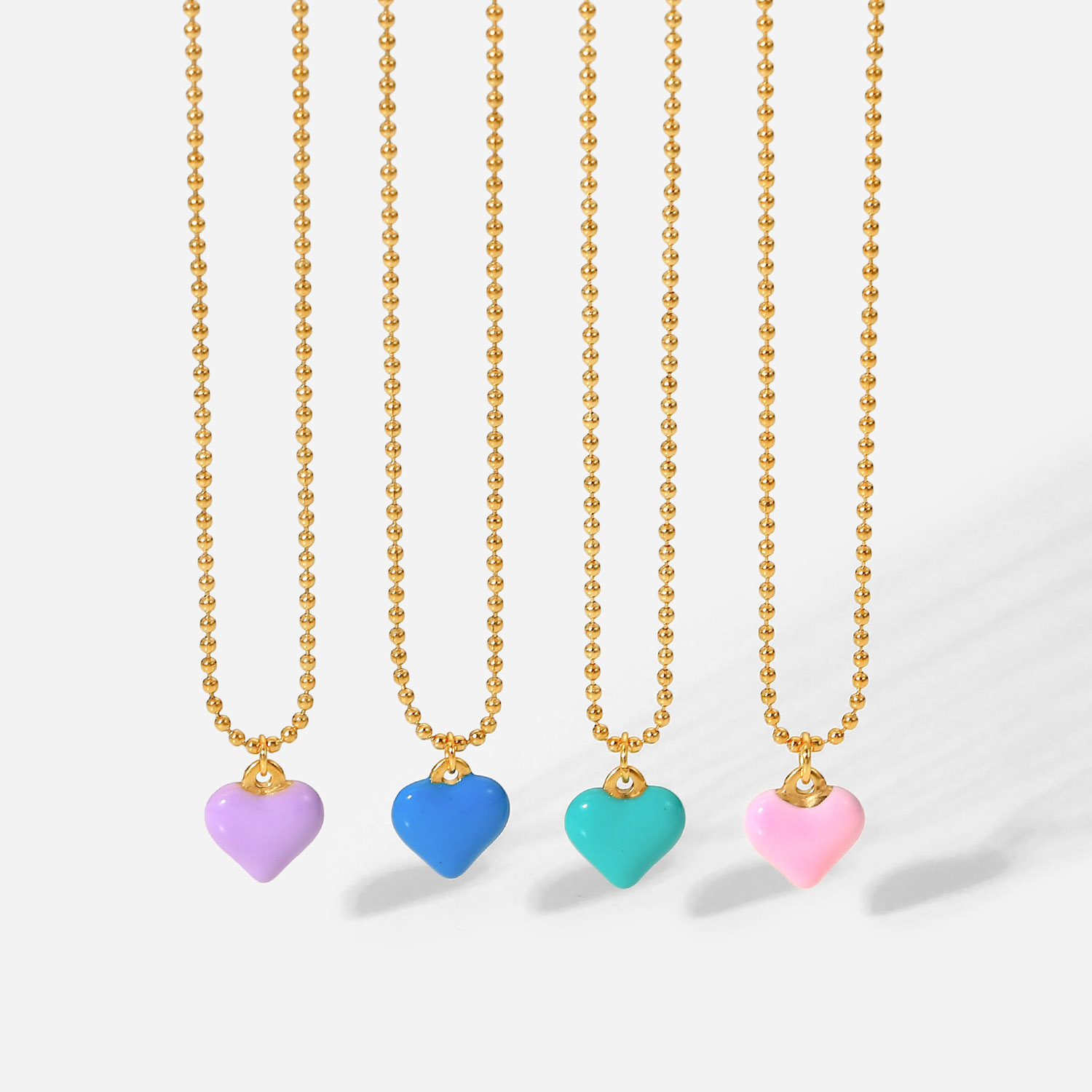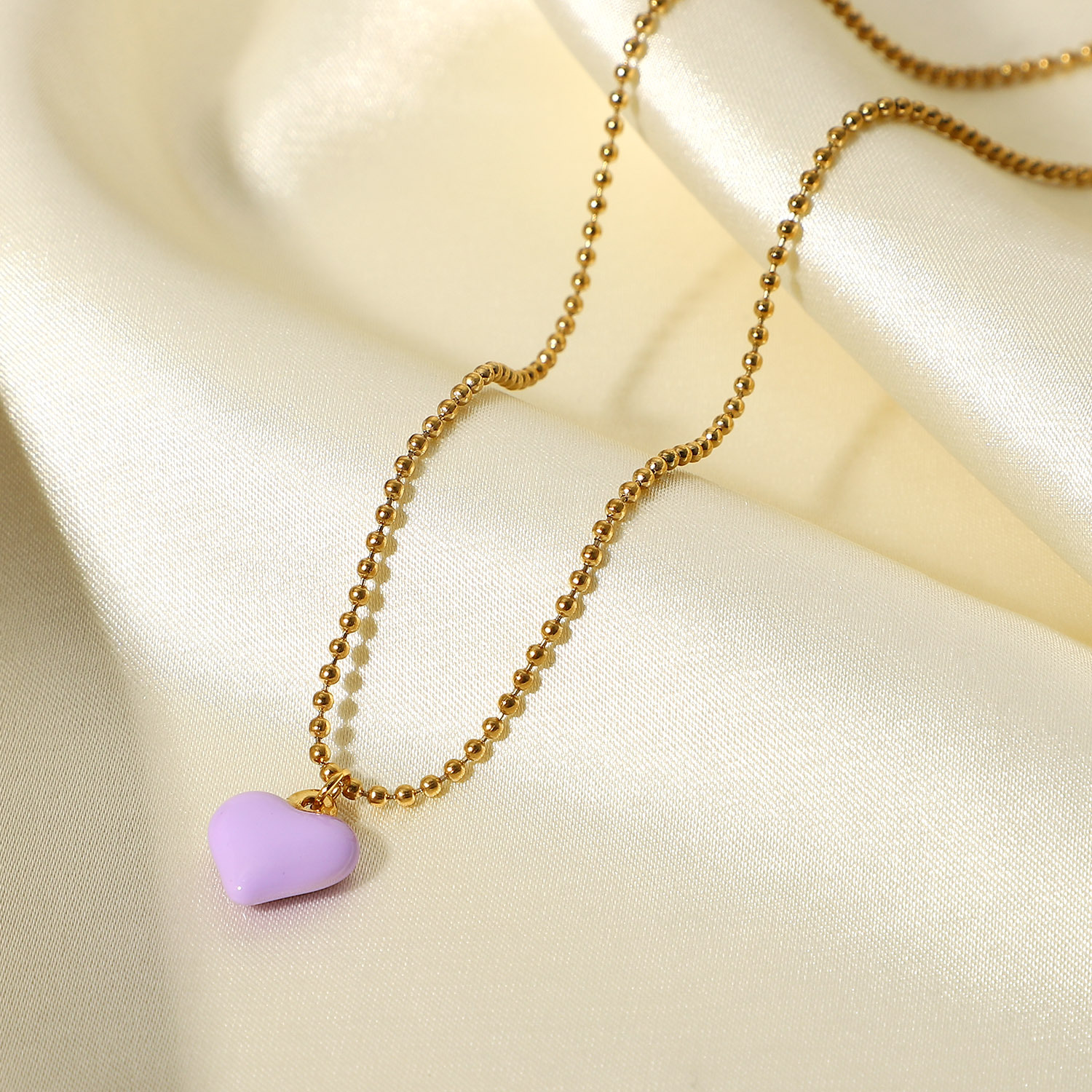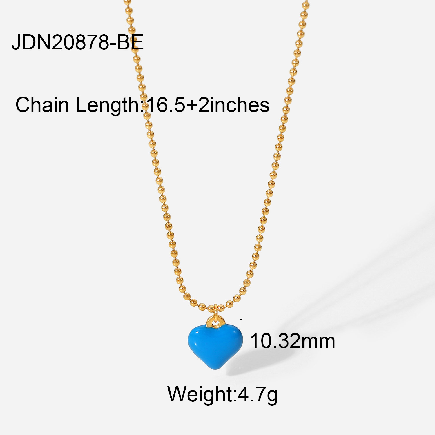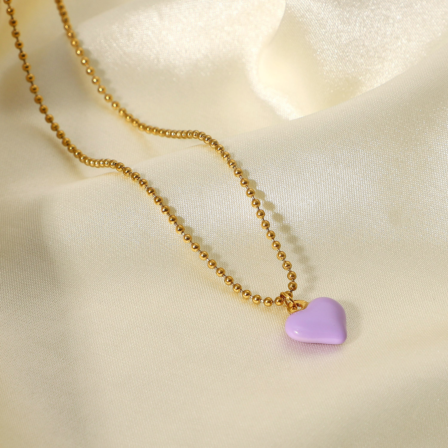 标题:INS新款时尚18k镀金不锈钢珠宝彩色珐琅心形吊坠珠链项链女士饰品