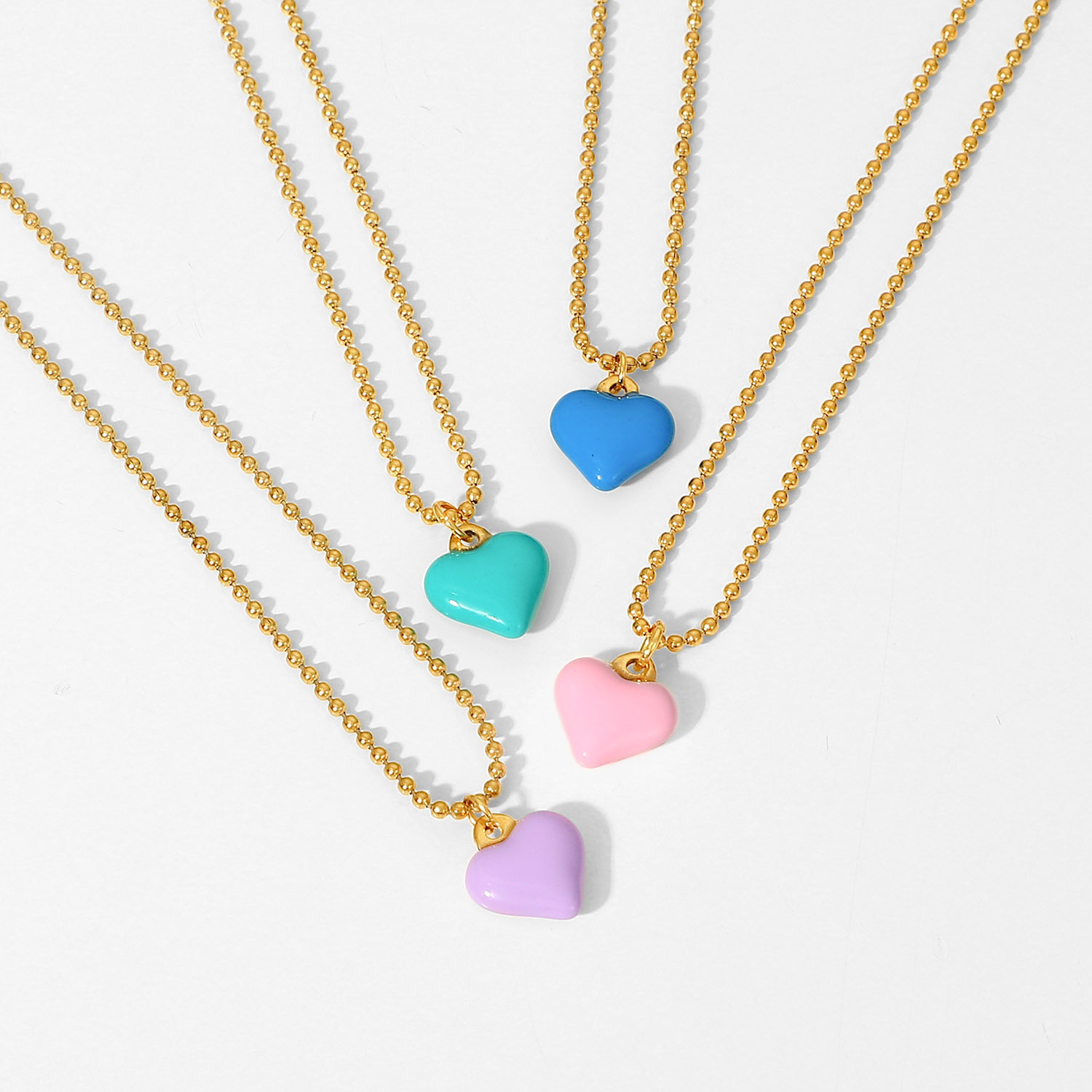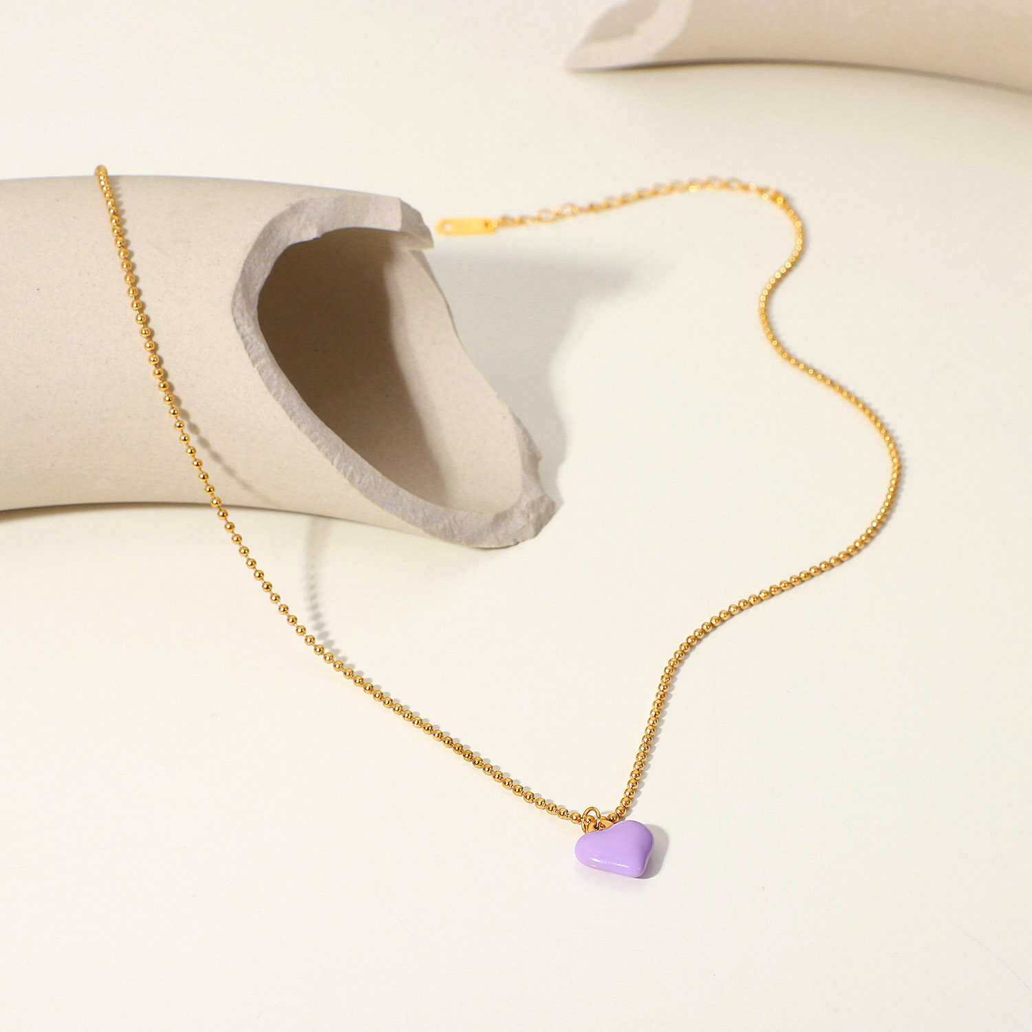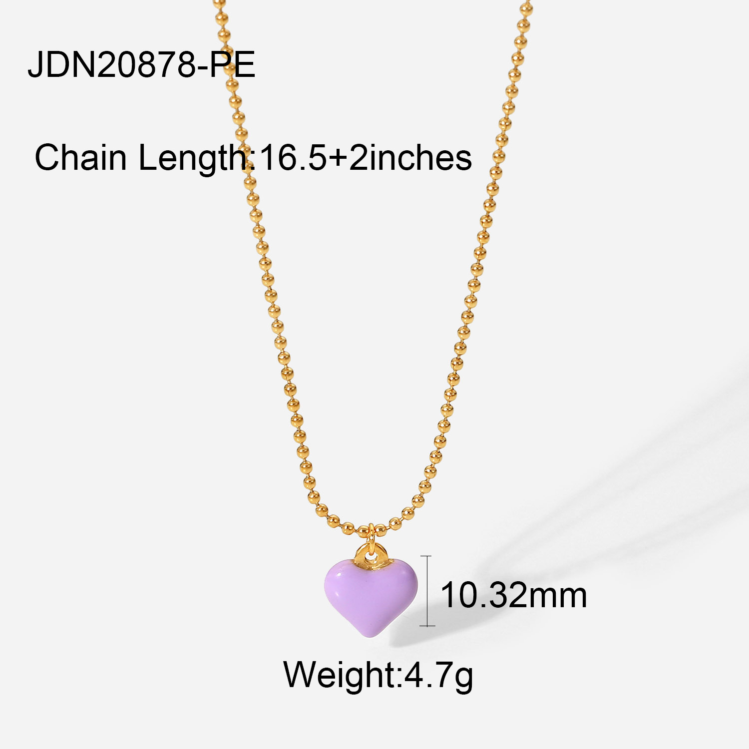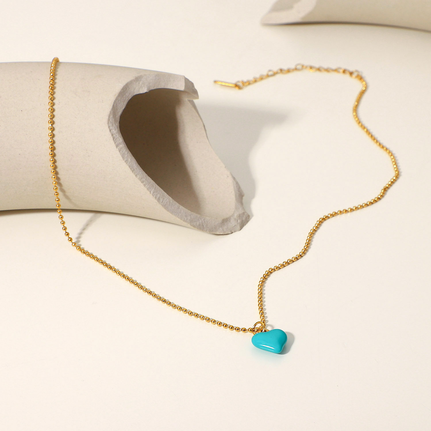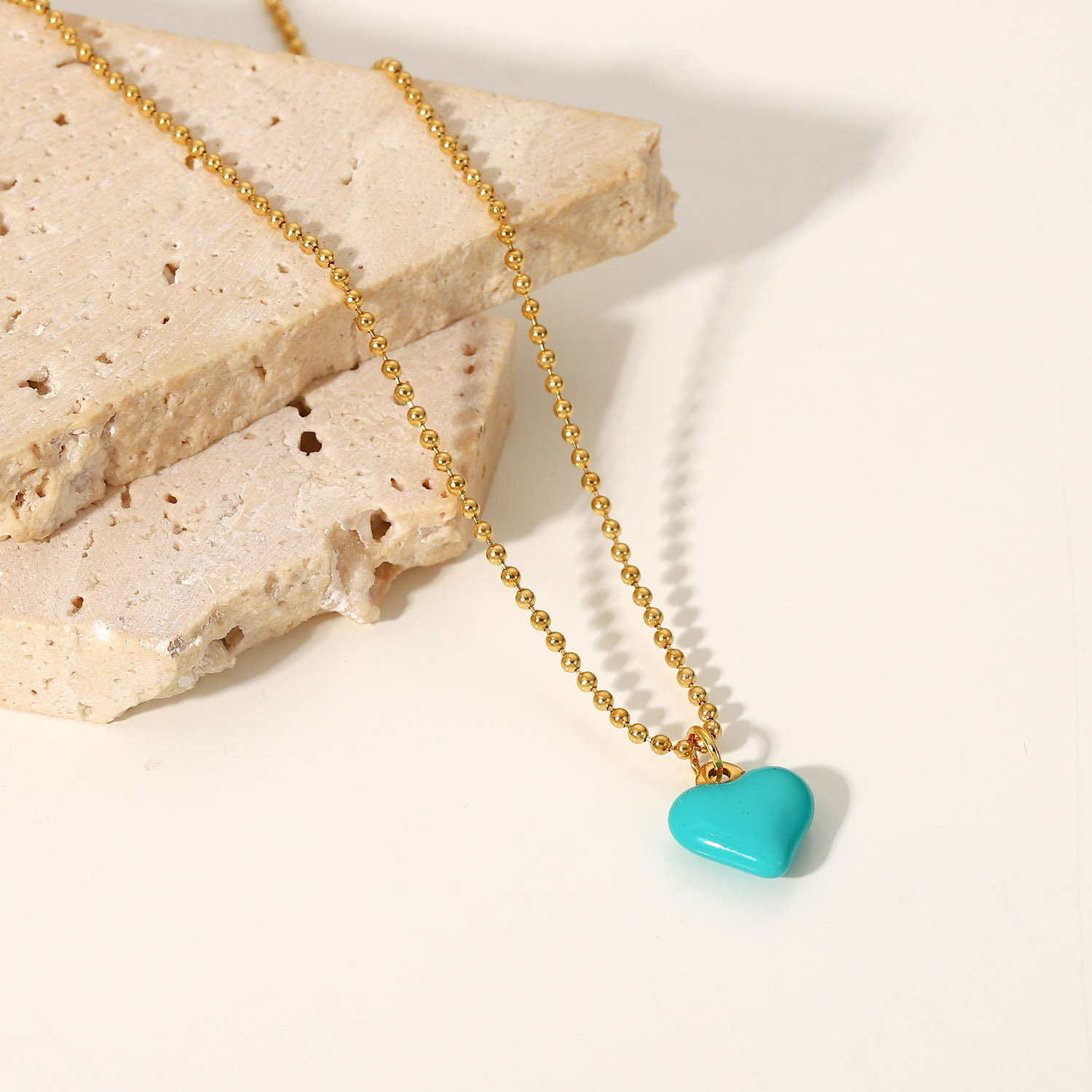 标题:INS新款时尚18k镀金不锈钢珠宝彩色珐琅心形吊坠珠链项链女士饰品