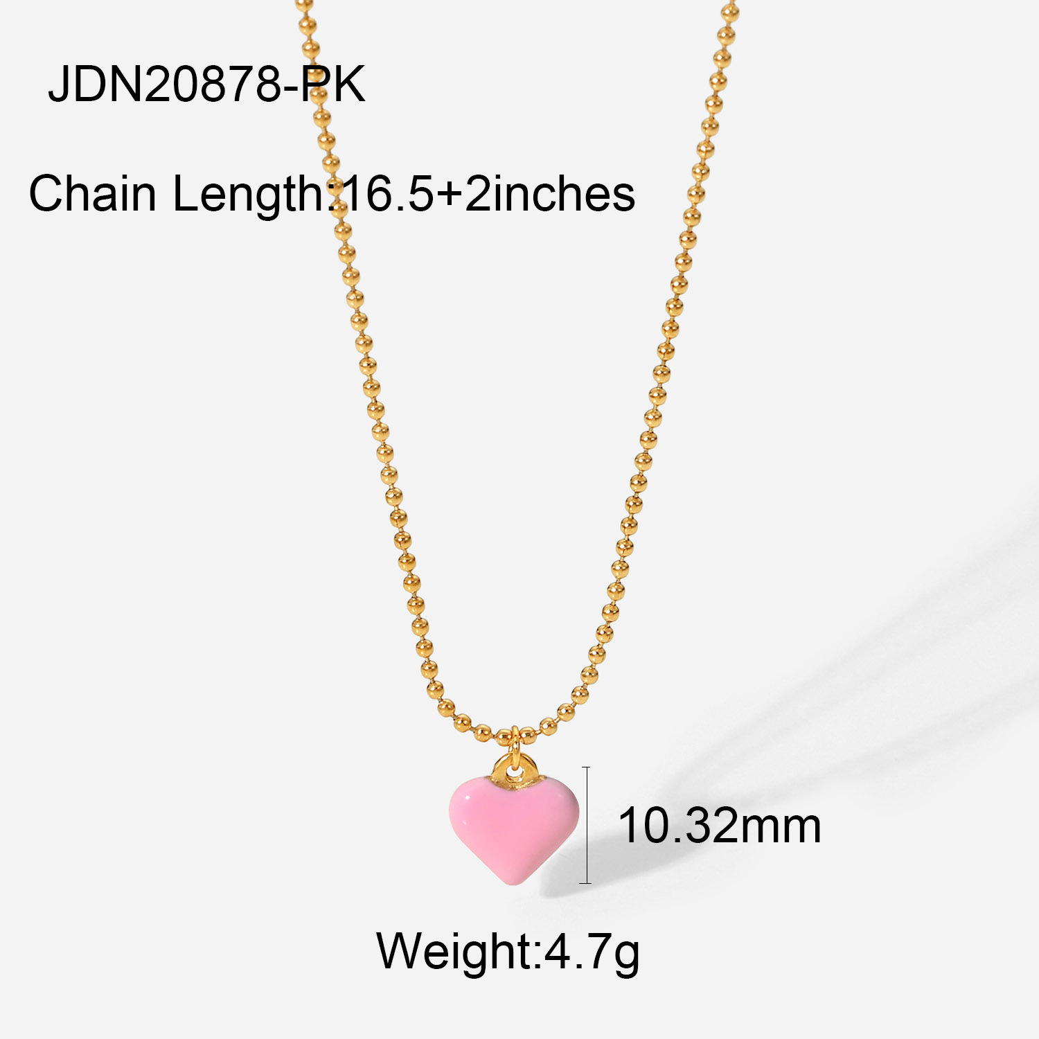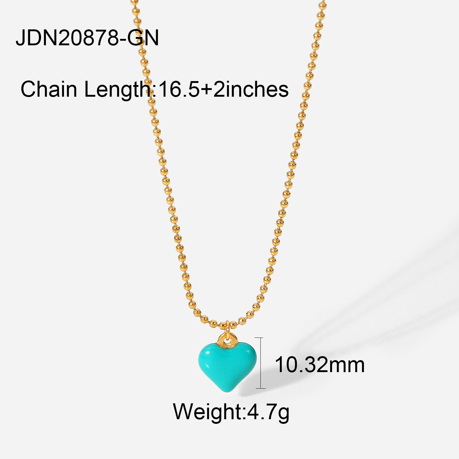 描述:风格:简约,材质:不锈钢,处理工艺:电镀,品牌:Youthway,生产编号:JDN20878,销售序列号:JDN20878,种类:项链,样式:女式,造型:心形,包装:独立包装,适用送礼场合:婚庆,旅游纪念,员工福利,加工定制:是,货号:JDN20878,产地:浙江义乌,链子样式:圆珠链,是否多层:是,是否带坠:是,延长链:10cm以下,坠子材质:珐琅,周长:21cm(含)-50cm(含),系列:不锈钢,形象:项链,主要下游平台:ebay,亚马逊,wish,速卖通,独立站,LAZADA,颜色:JDN20878-GN,JDN20878-BE,JDN20878-PE,JDN20878-PK,主要销售地区:非洲,欧洲,南美,东南亚,北美,东北亚,中东,有可授权的自有品牌:是,是否跨境出口专供货源:是,流行元素:金属,链条,几何,上市年份/季节:2021年冬季,
