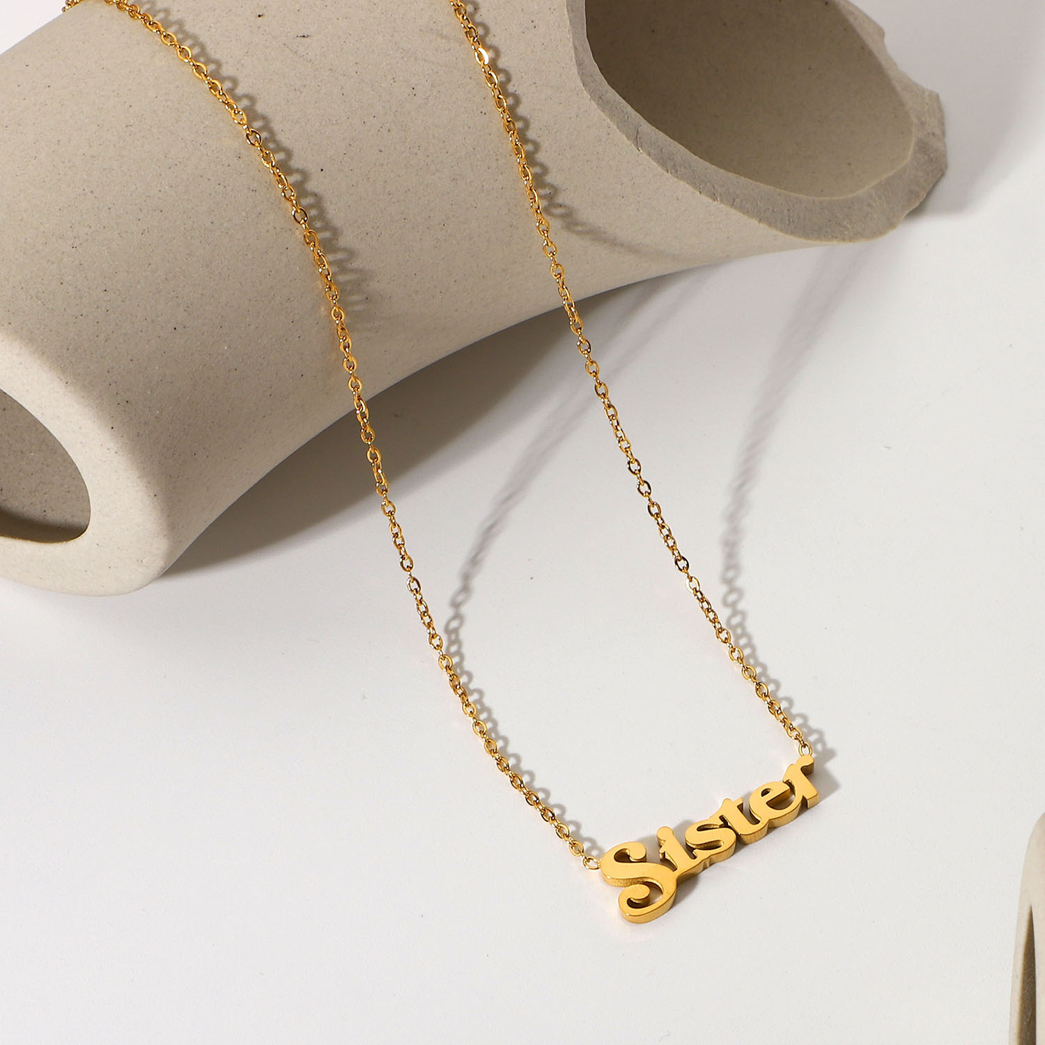 标题:欧美热销款钛钢电镀金字母吊坠项链INS网红同款18K金不锈钢项链女