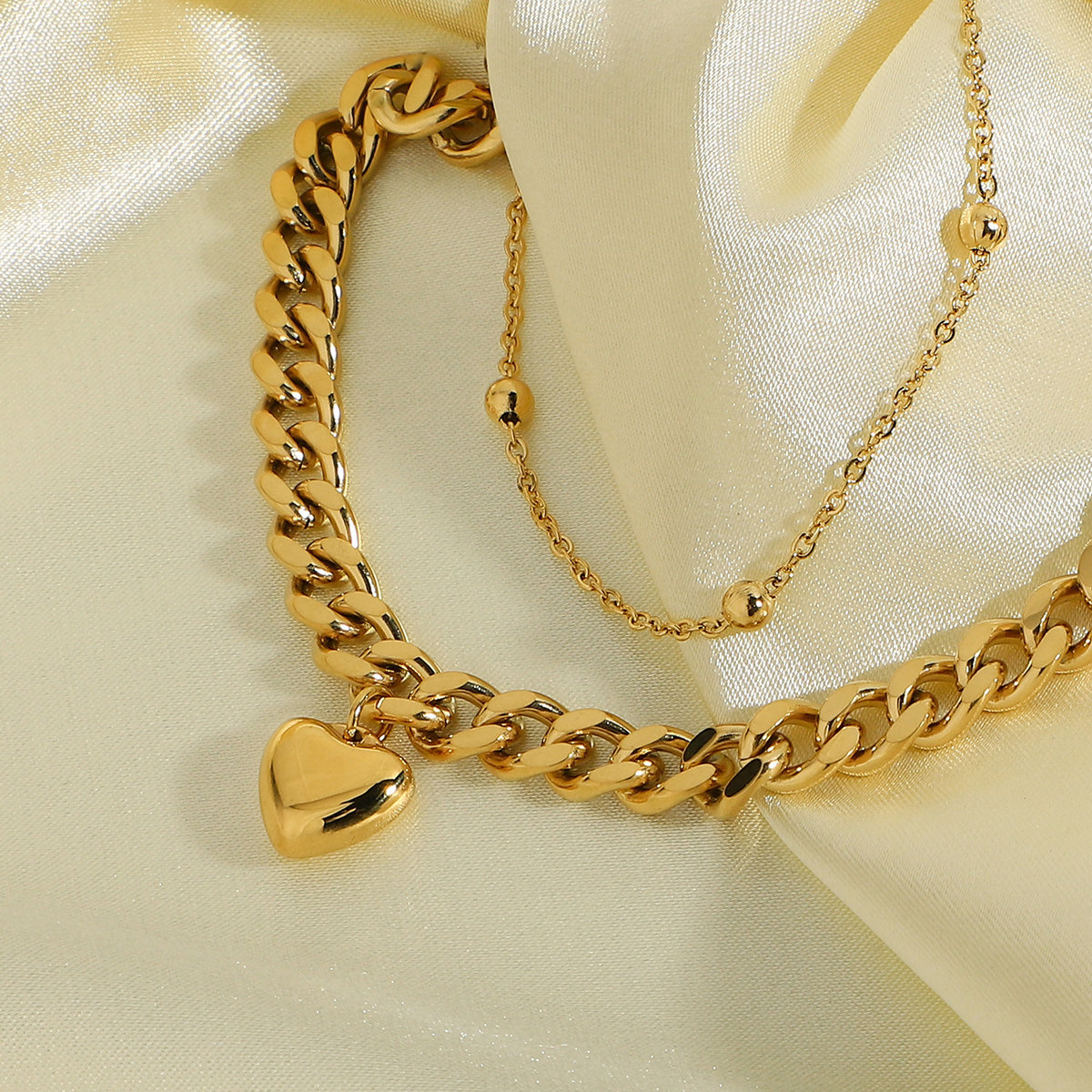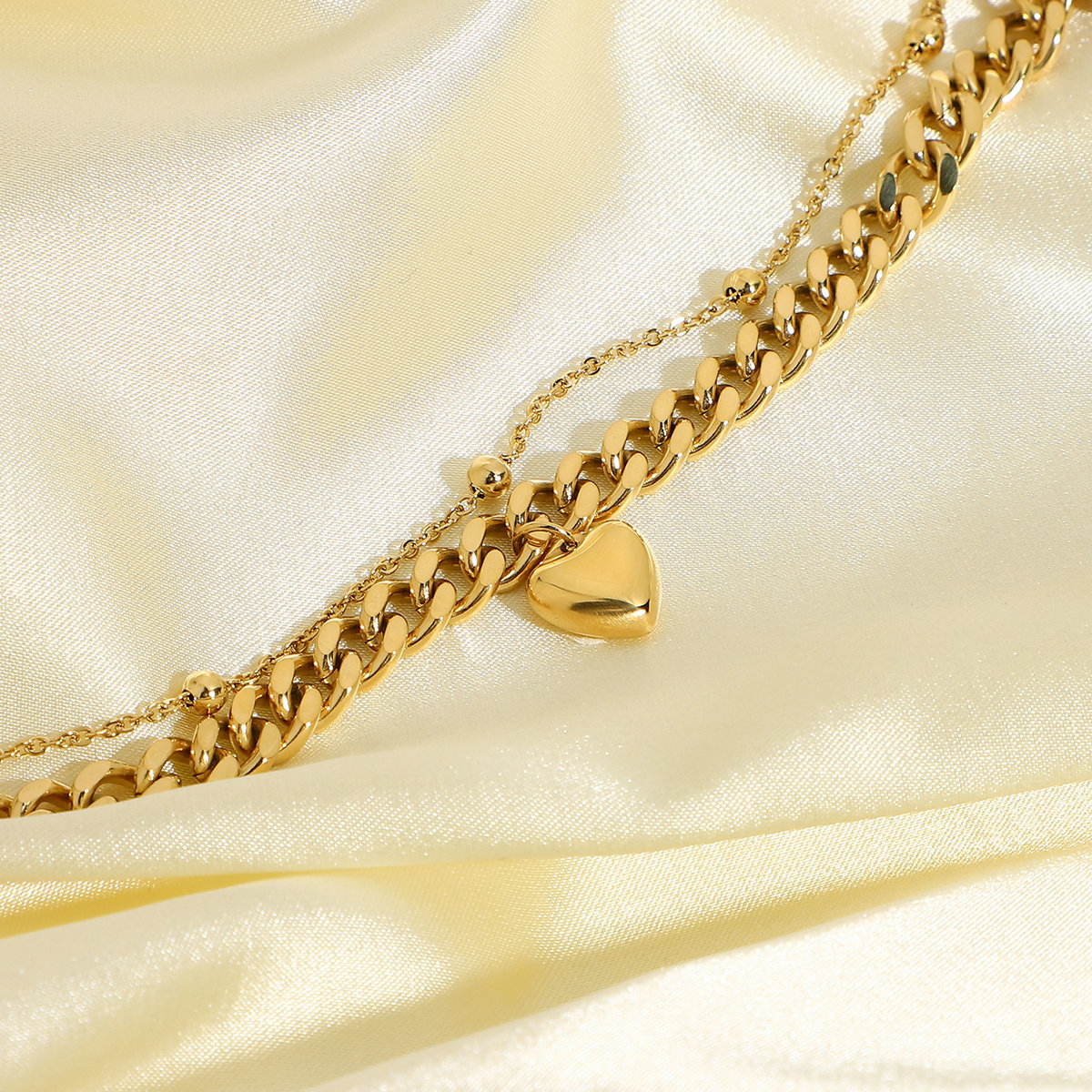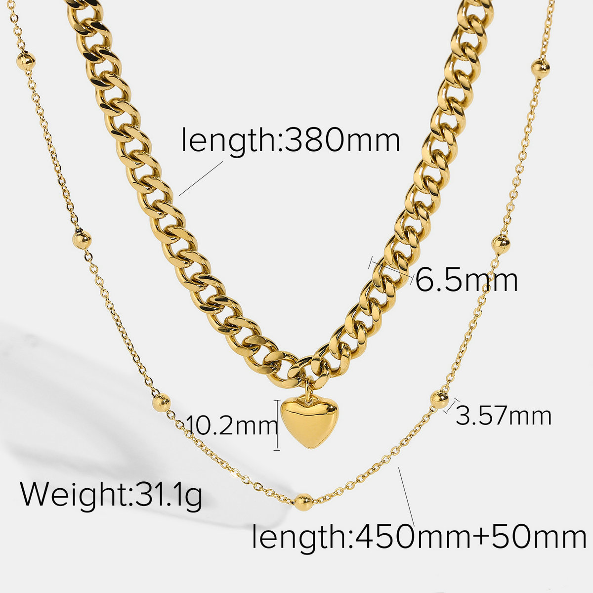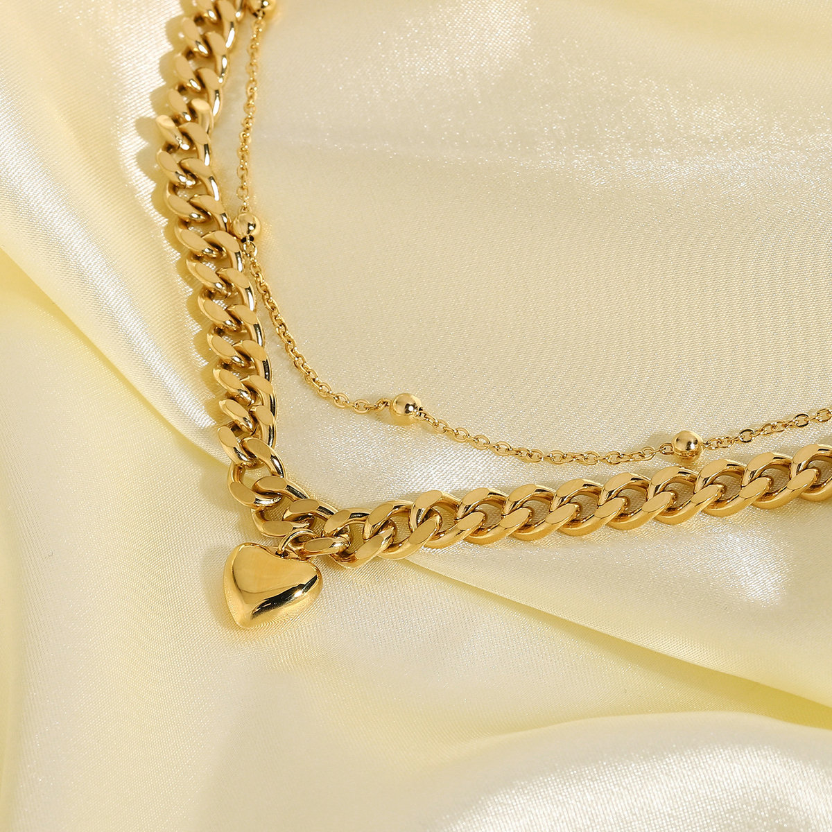 标题:欧美网红同款项链 14K金色双层古巴链爱心吊坠细圆珠链项链脖颈链