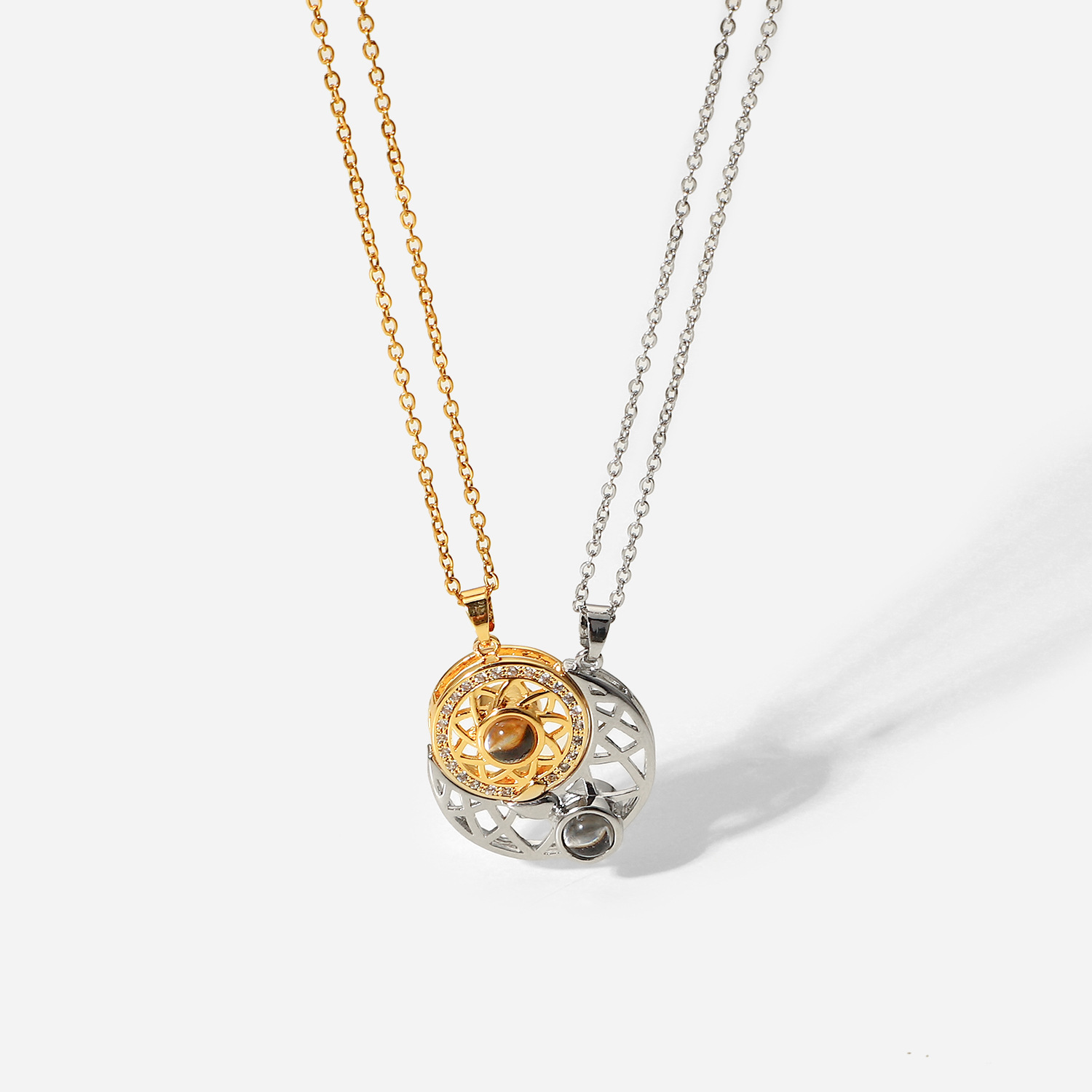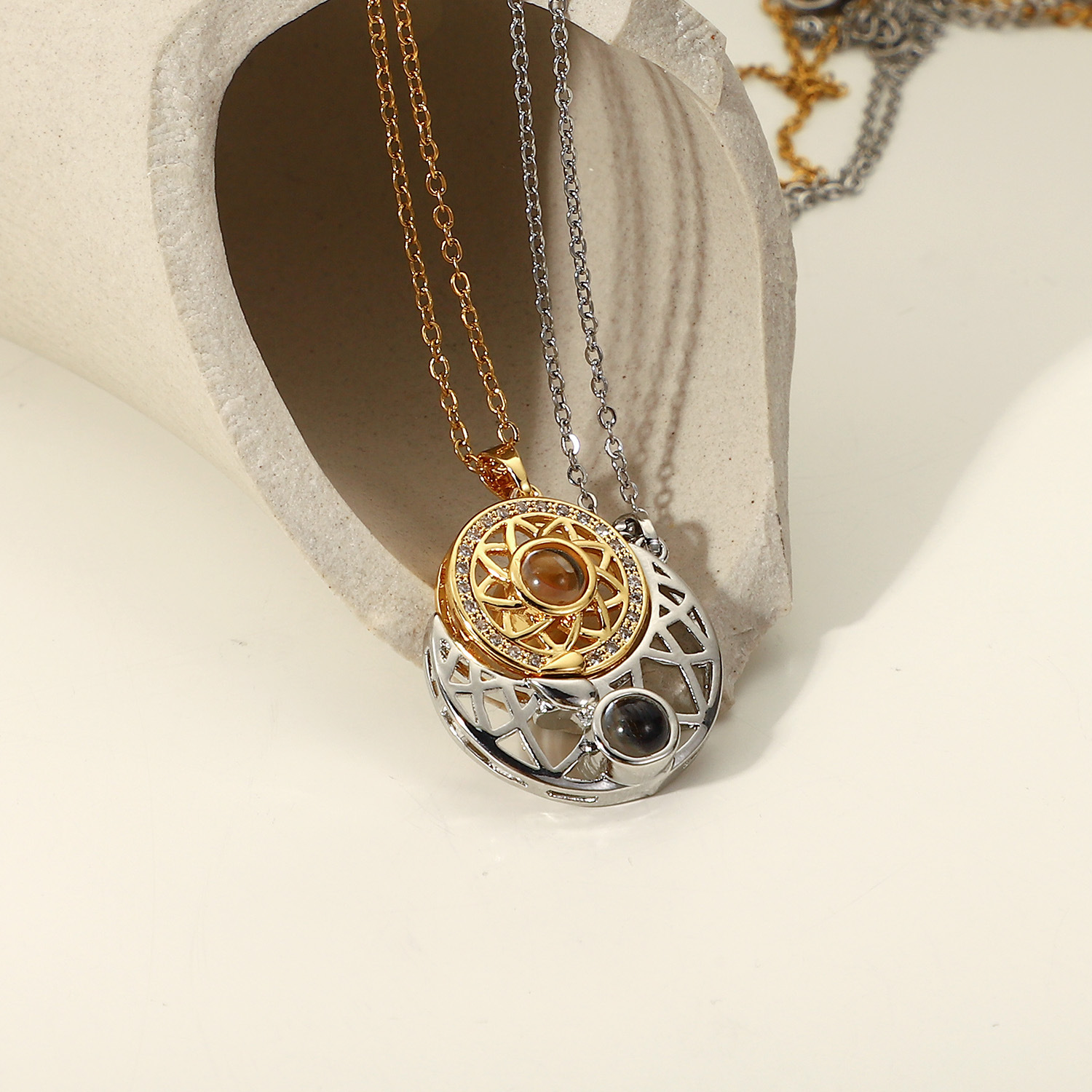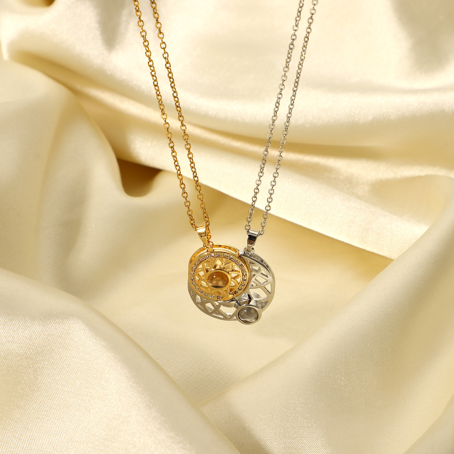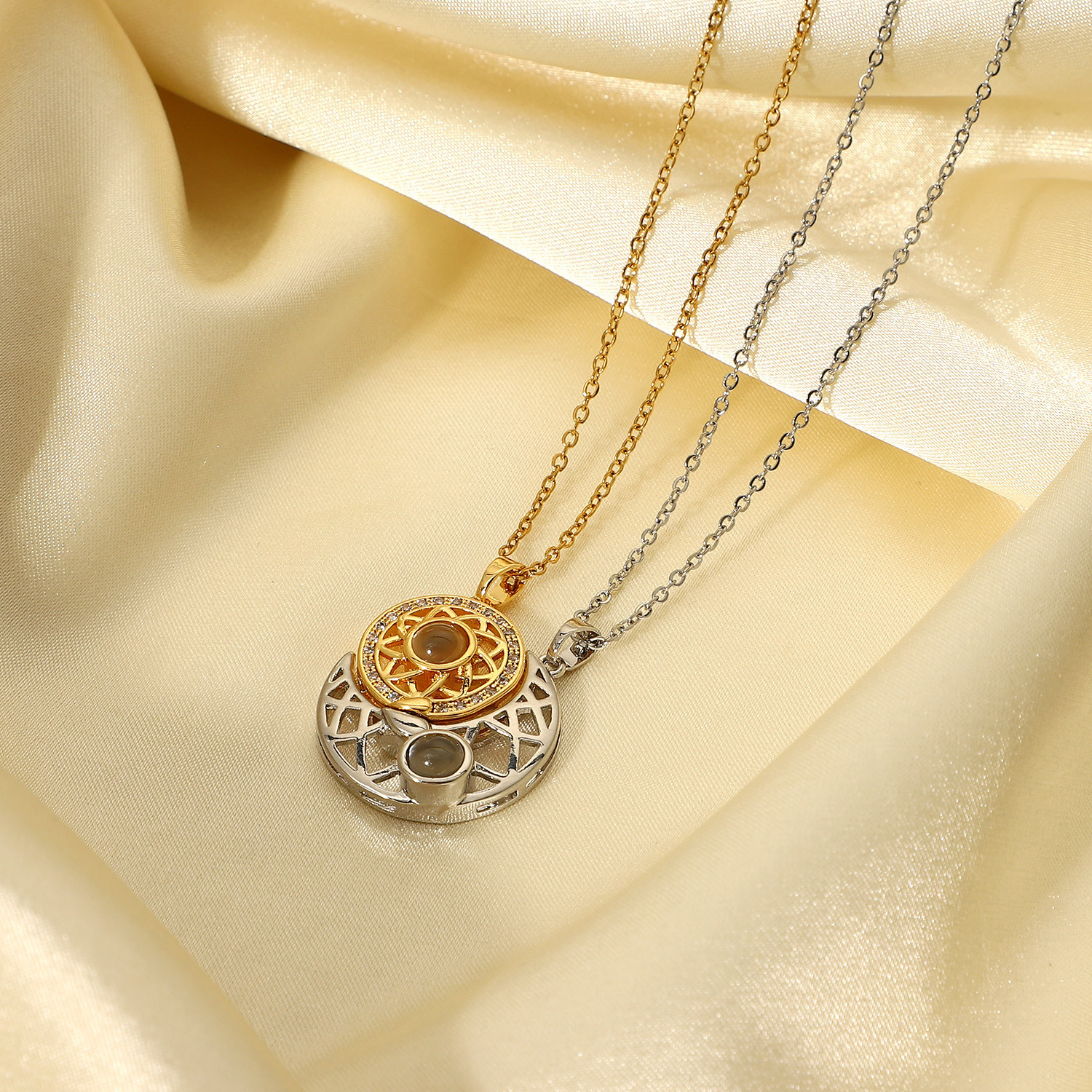 标题:100种语言我爱你蛋白石项链不锈钢18K金太阳银月亮连接吊坠项链女