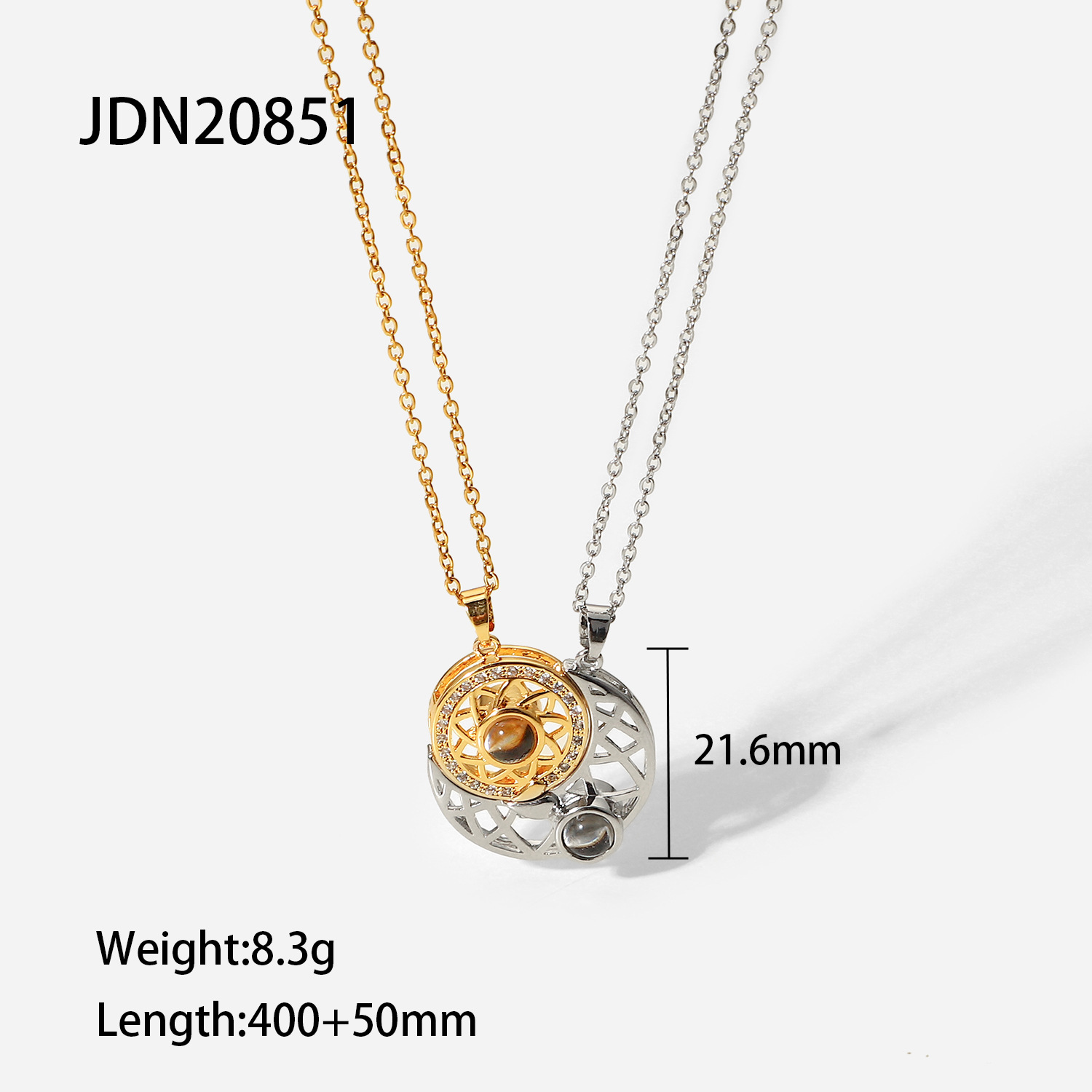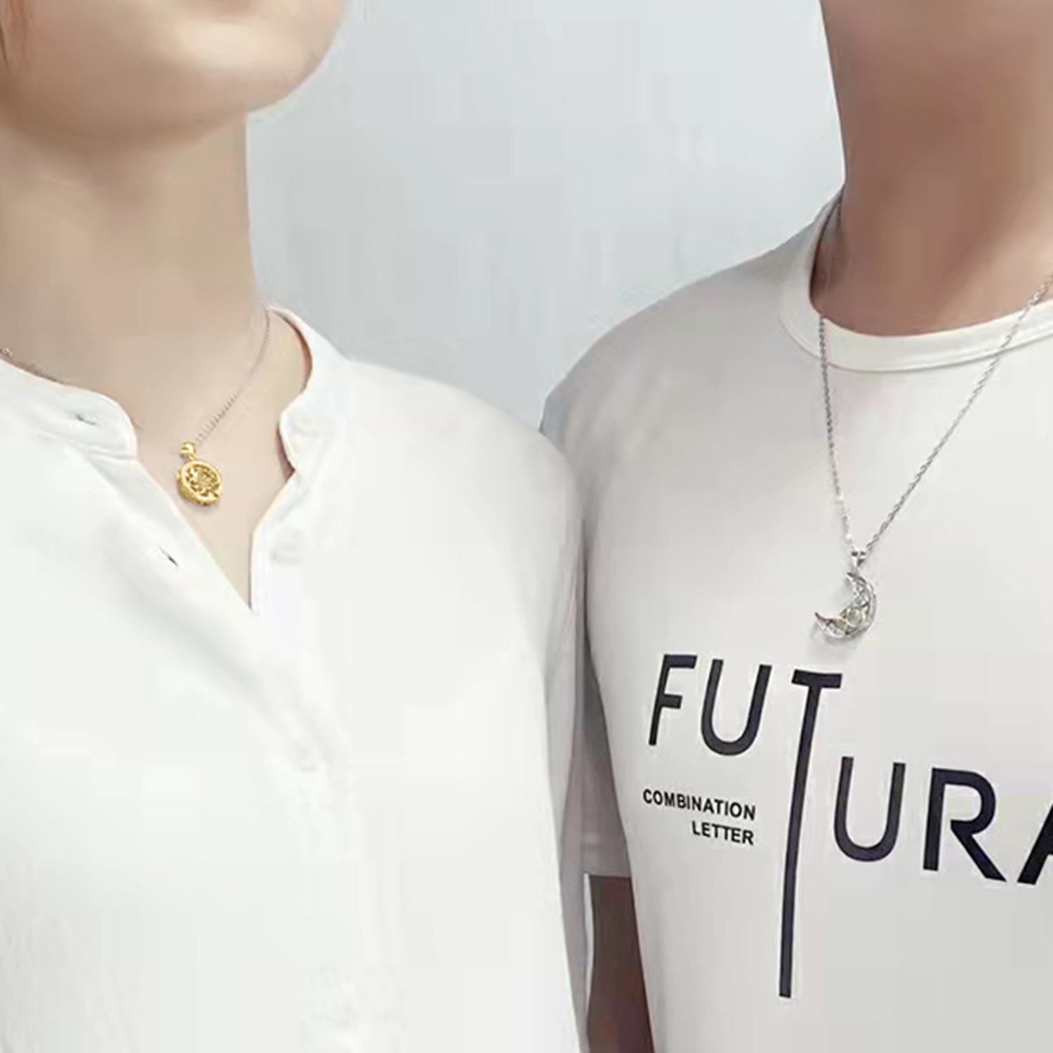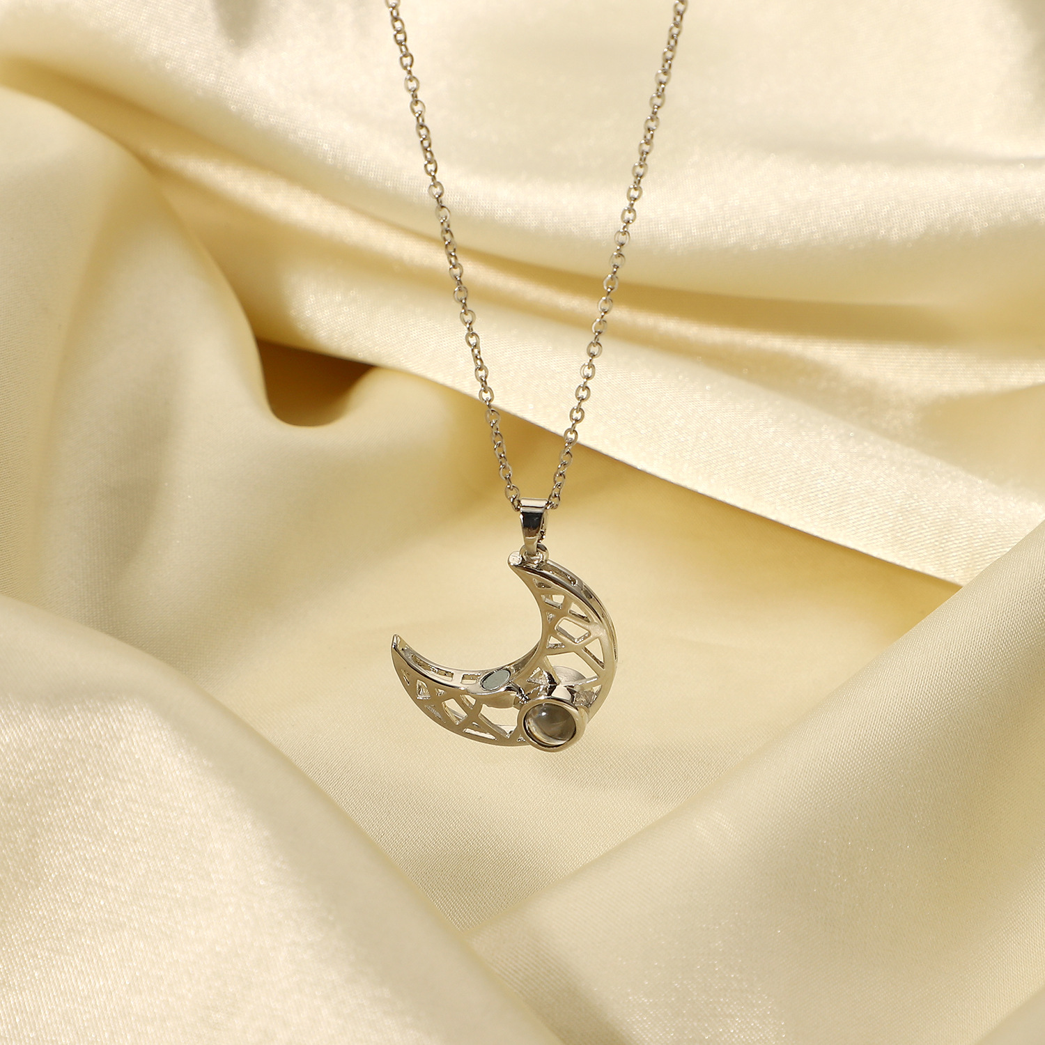 标题:100种语言我爱你蛋白石项链不锈钢18K金太阳银月亮连接吊坠项链女