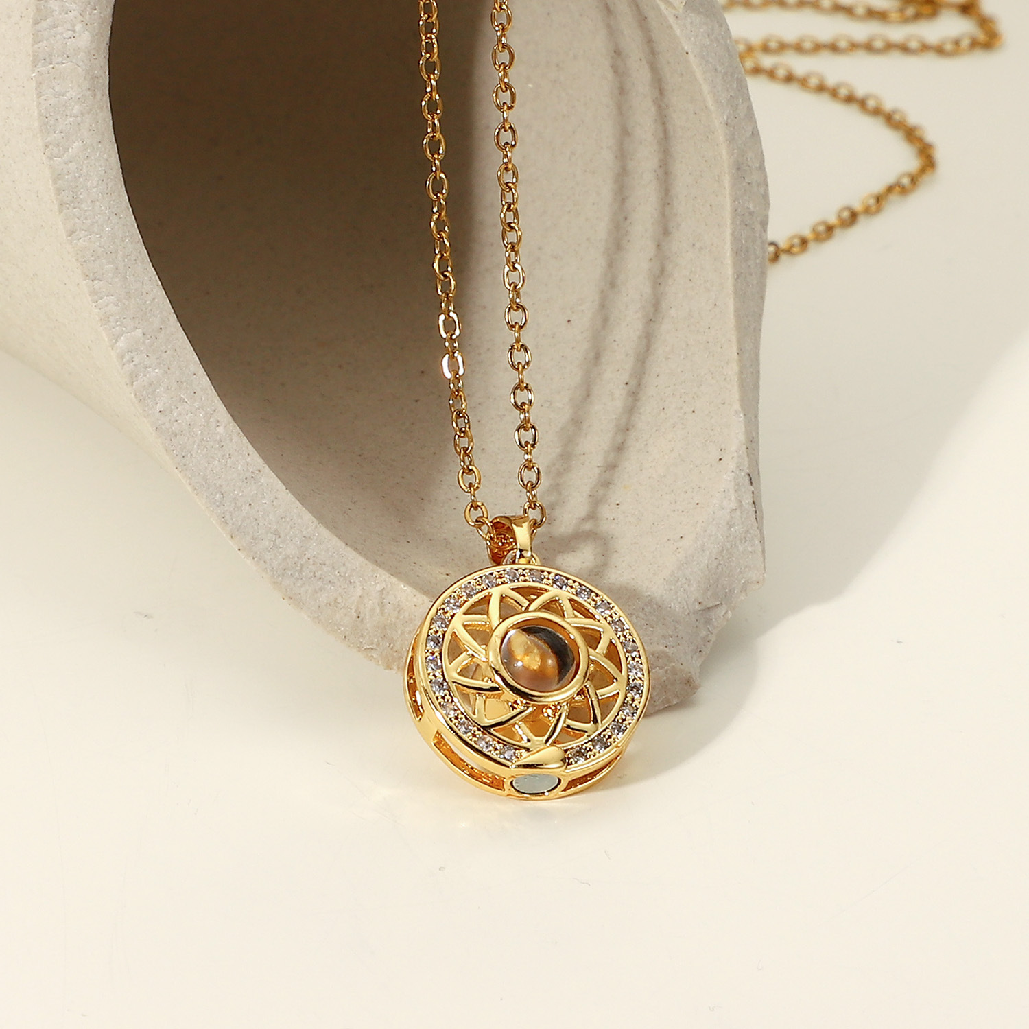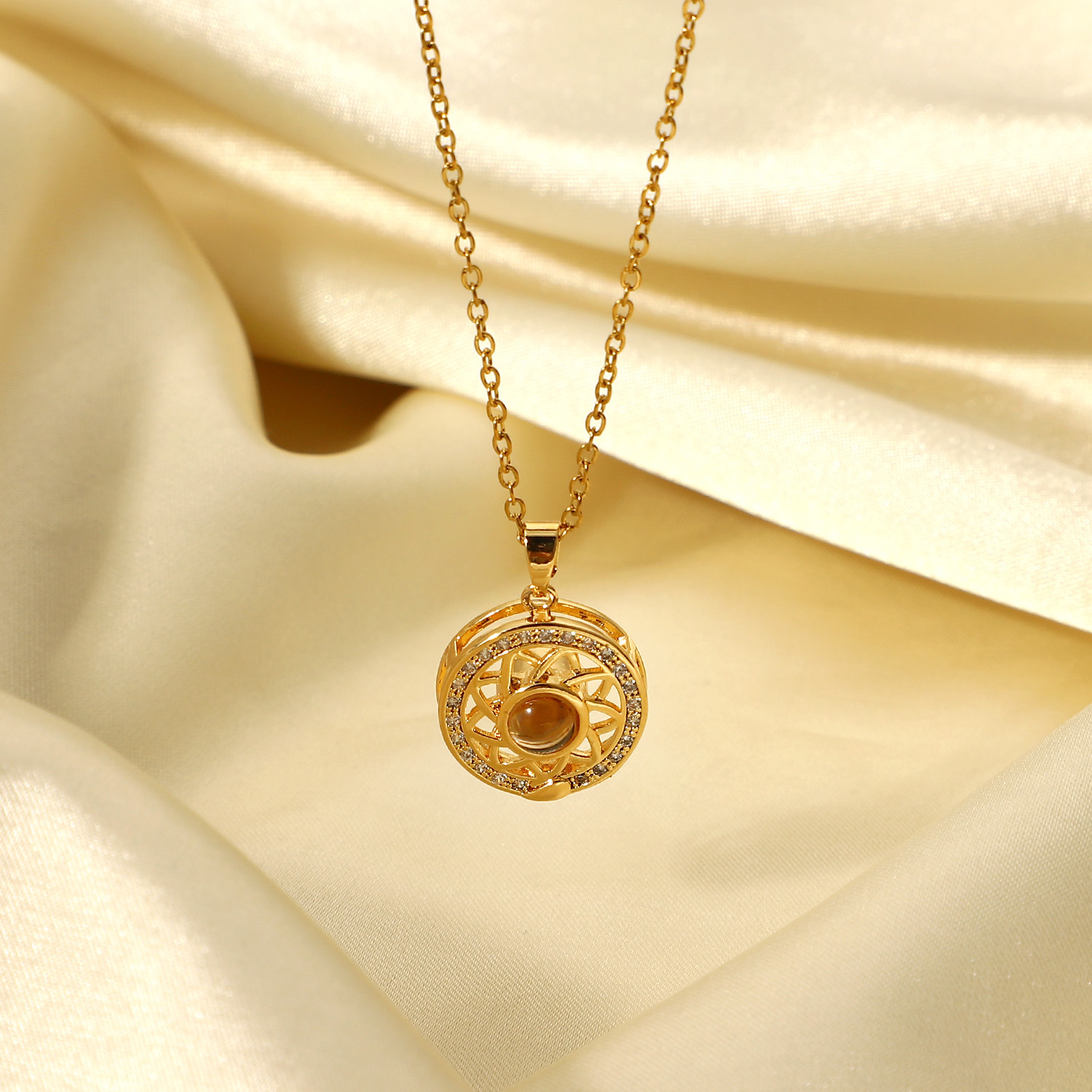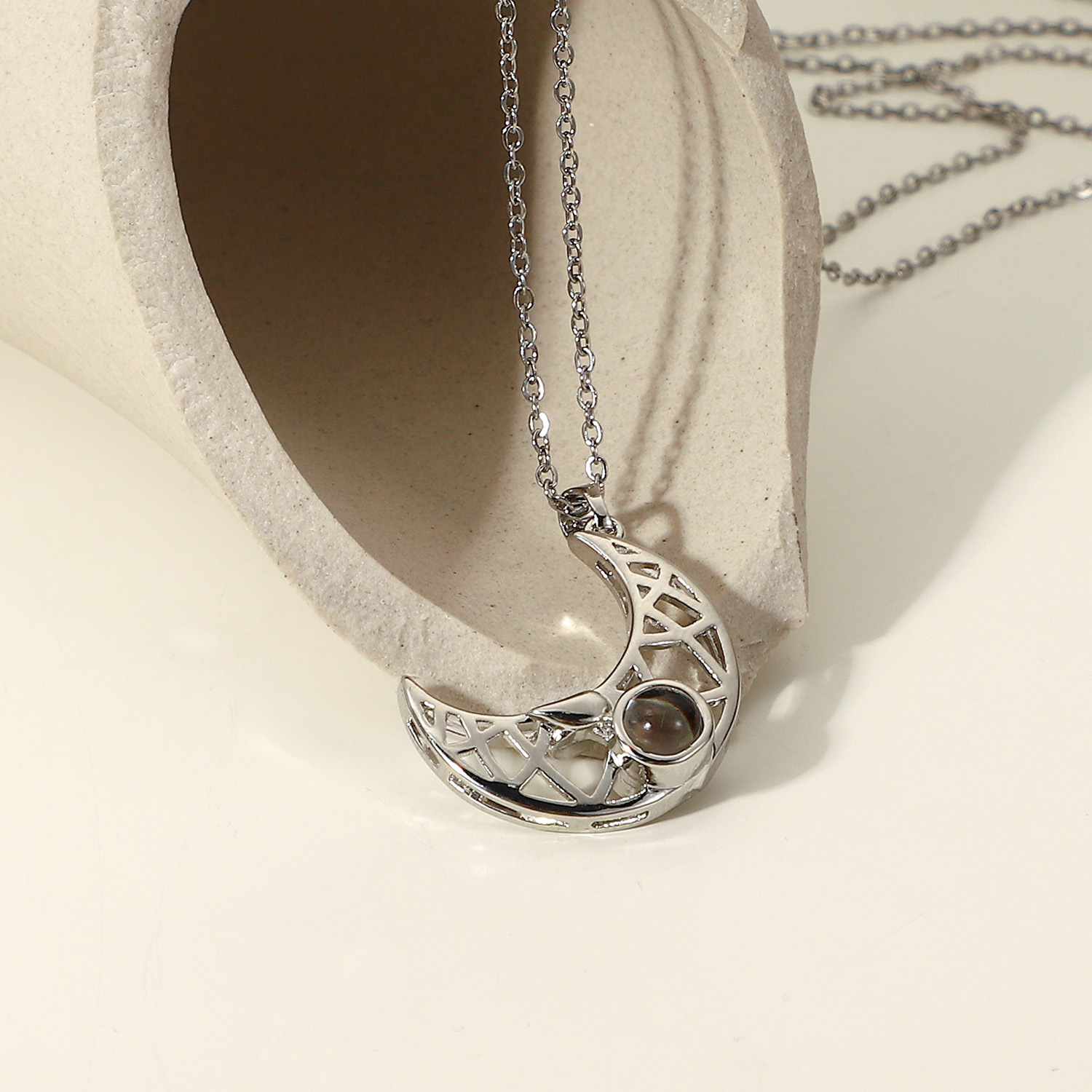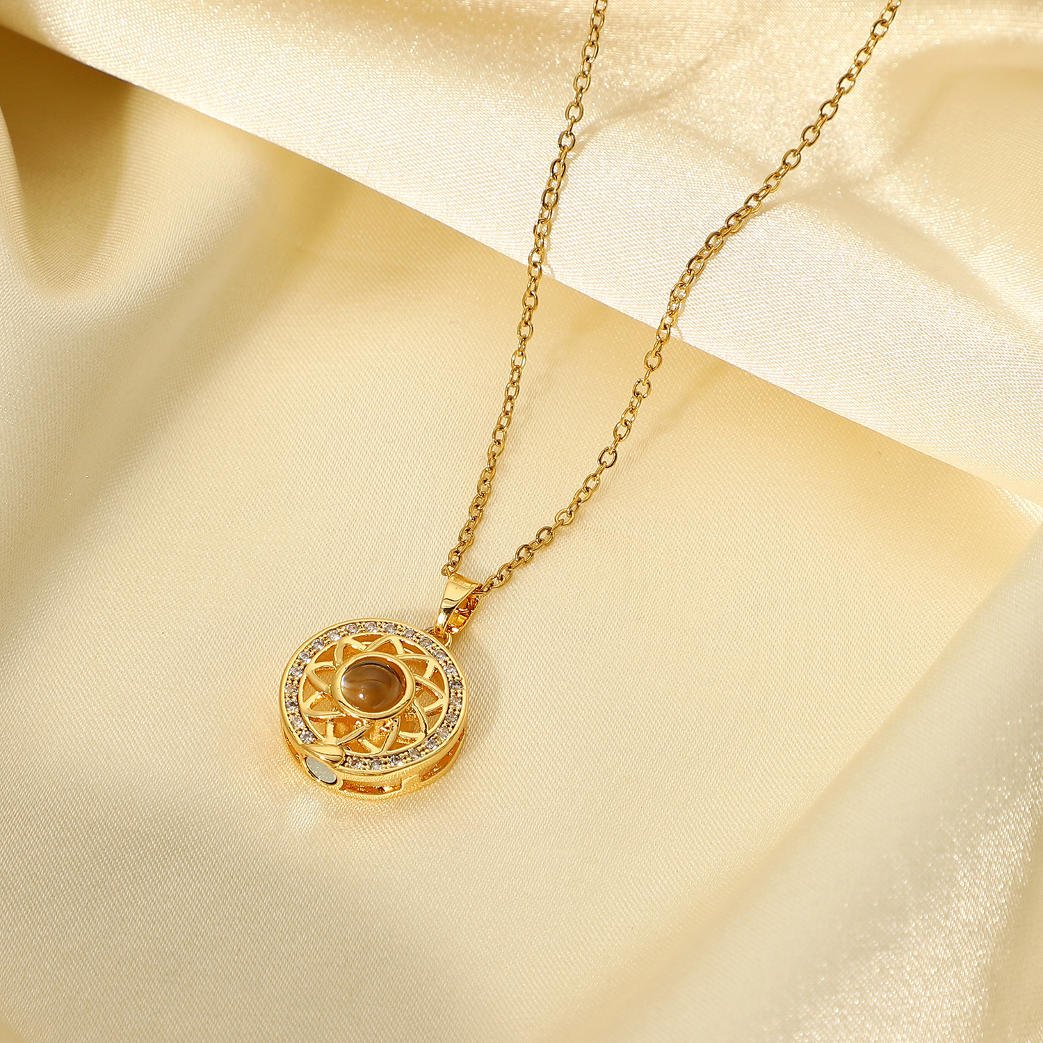 标题:100种语言我爱你蛋白石项链不锈钢18K金太阳银月亮连接吊坠项链女