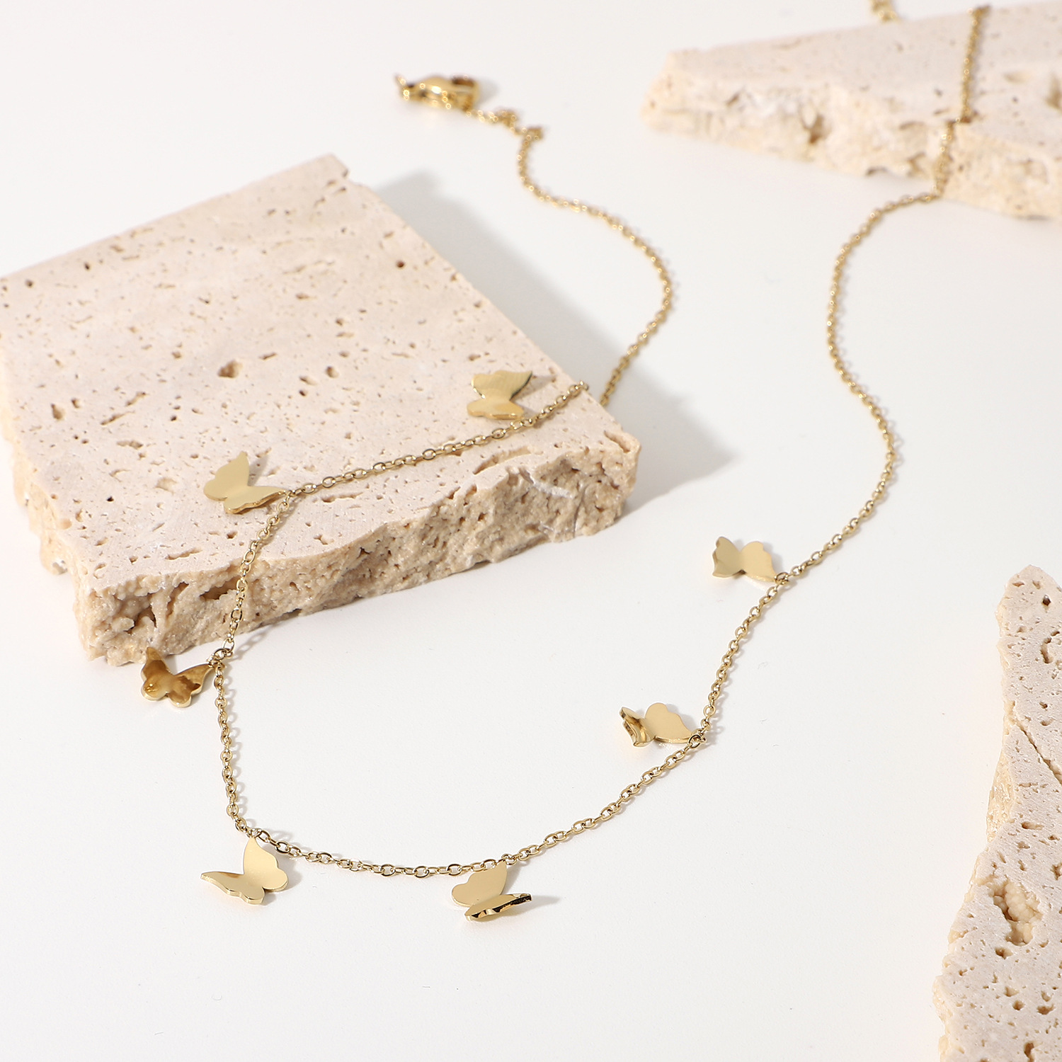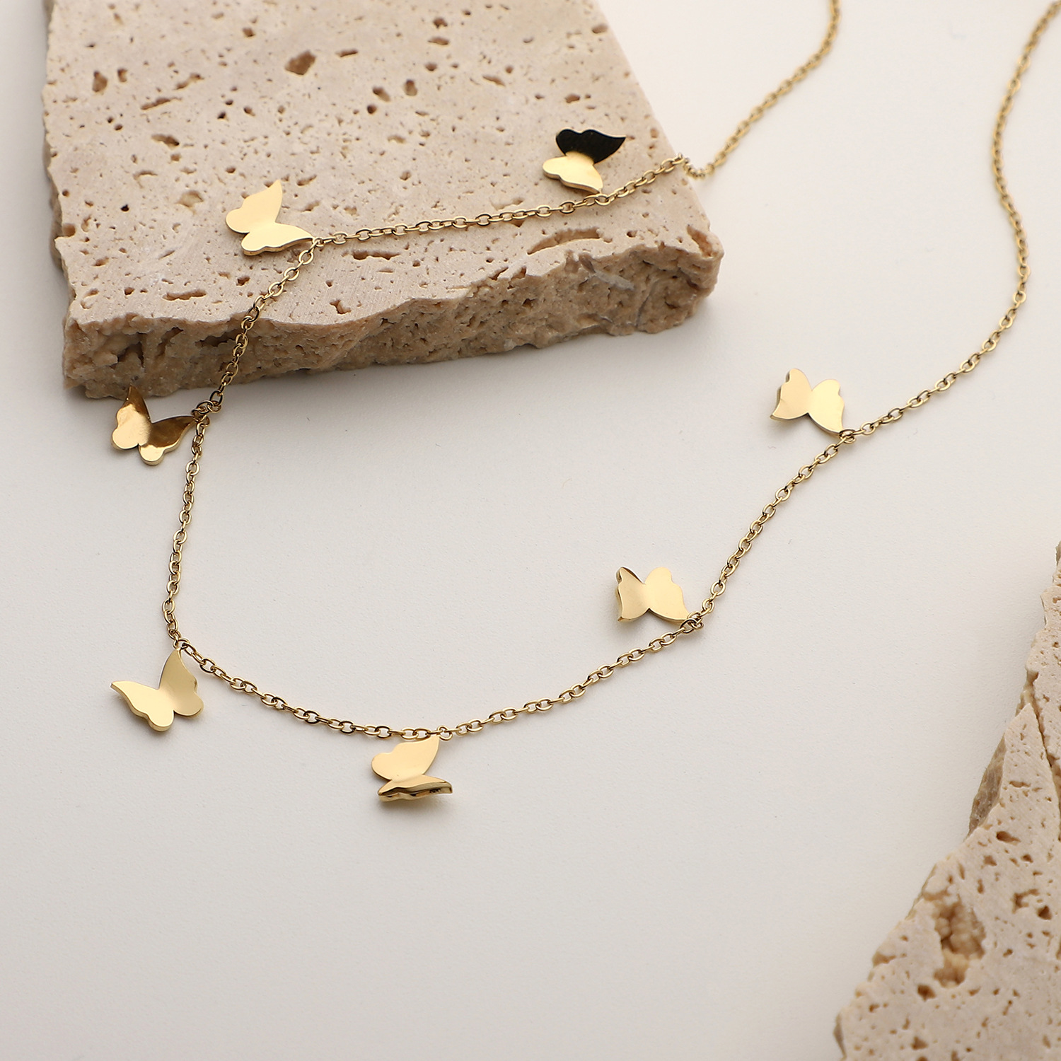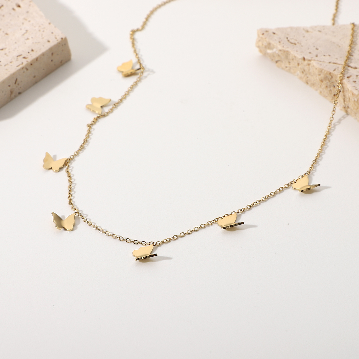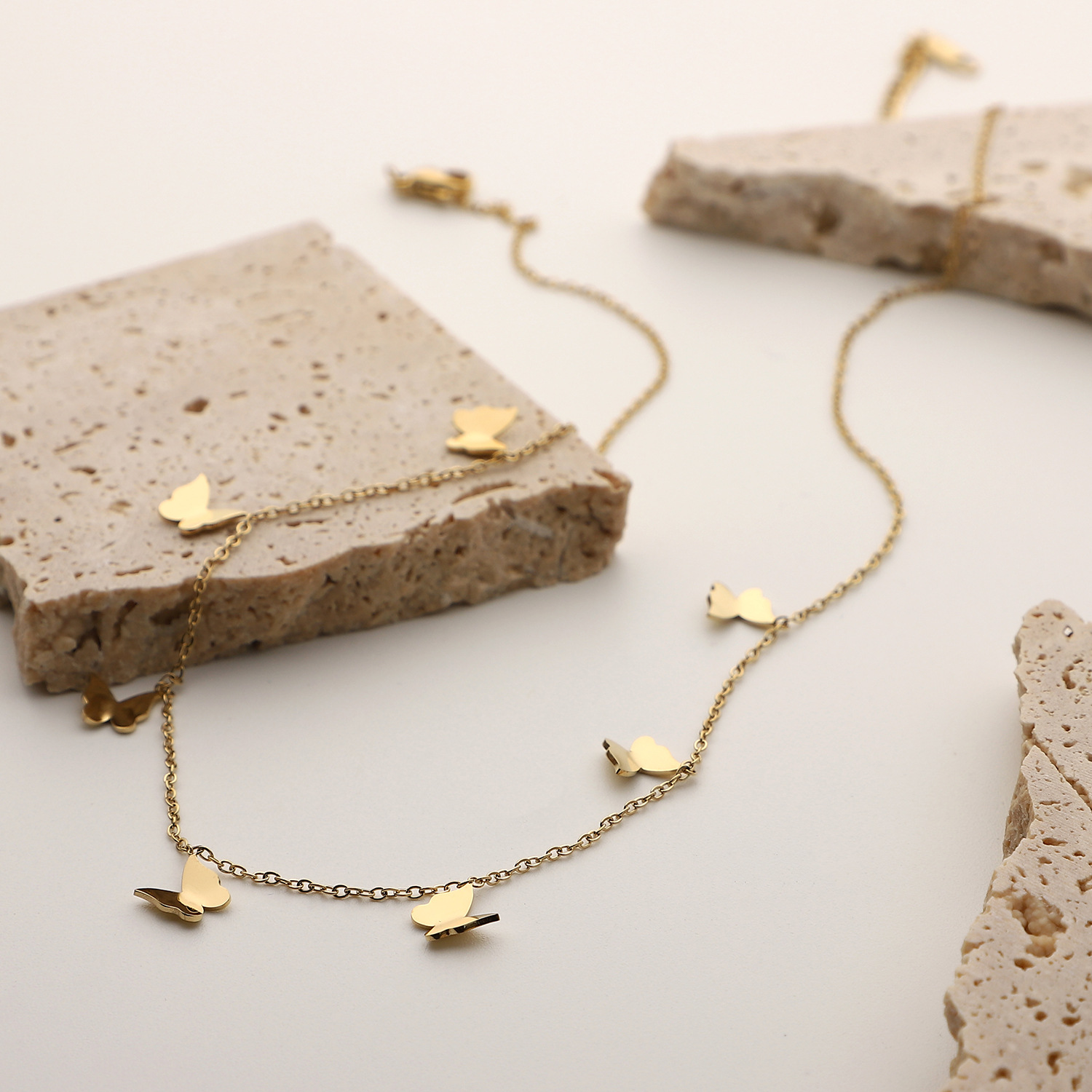 标题:欧美INS风新款14K镀金不锈钢项链饰品金色多个迷你小蝴蝶吊坠项链