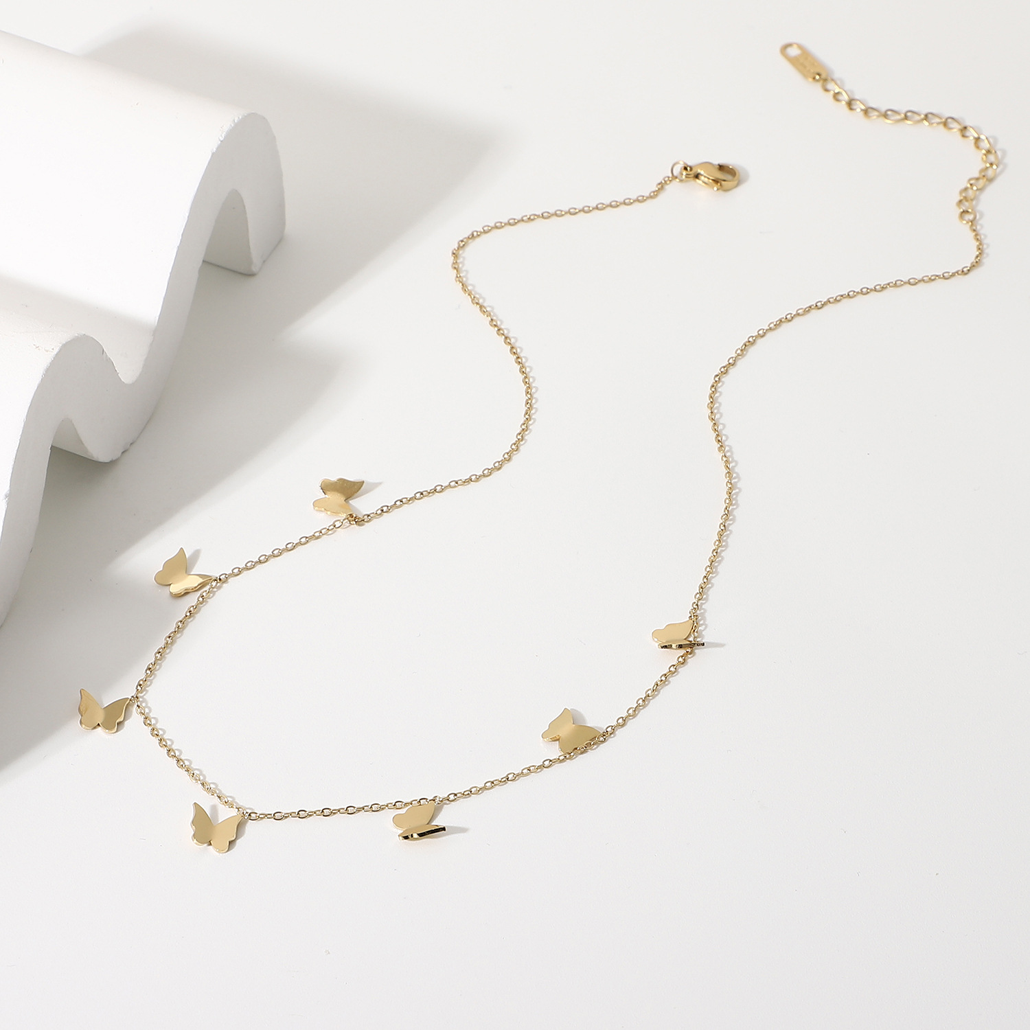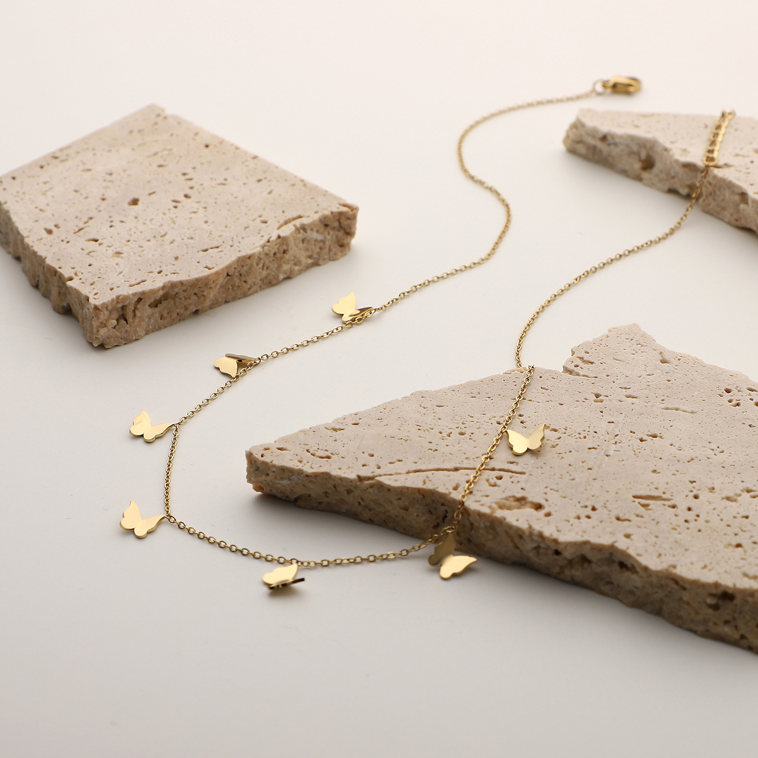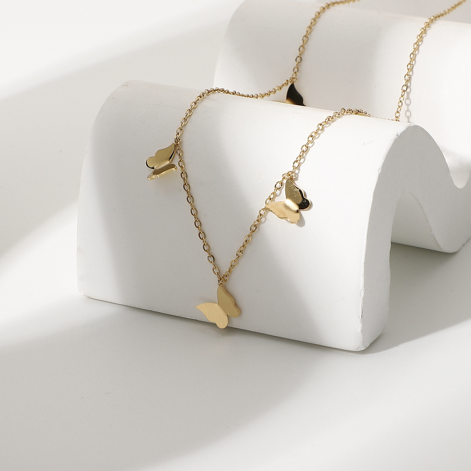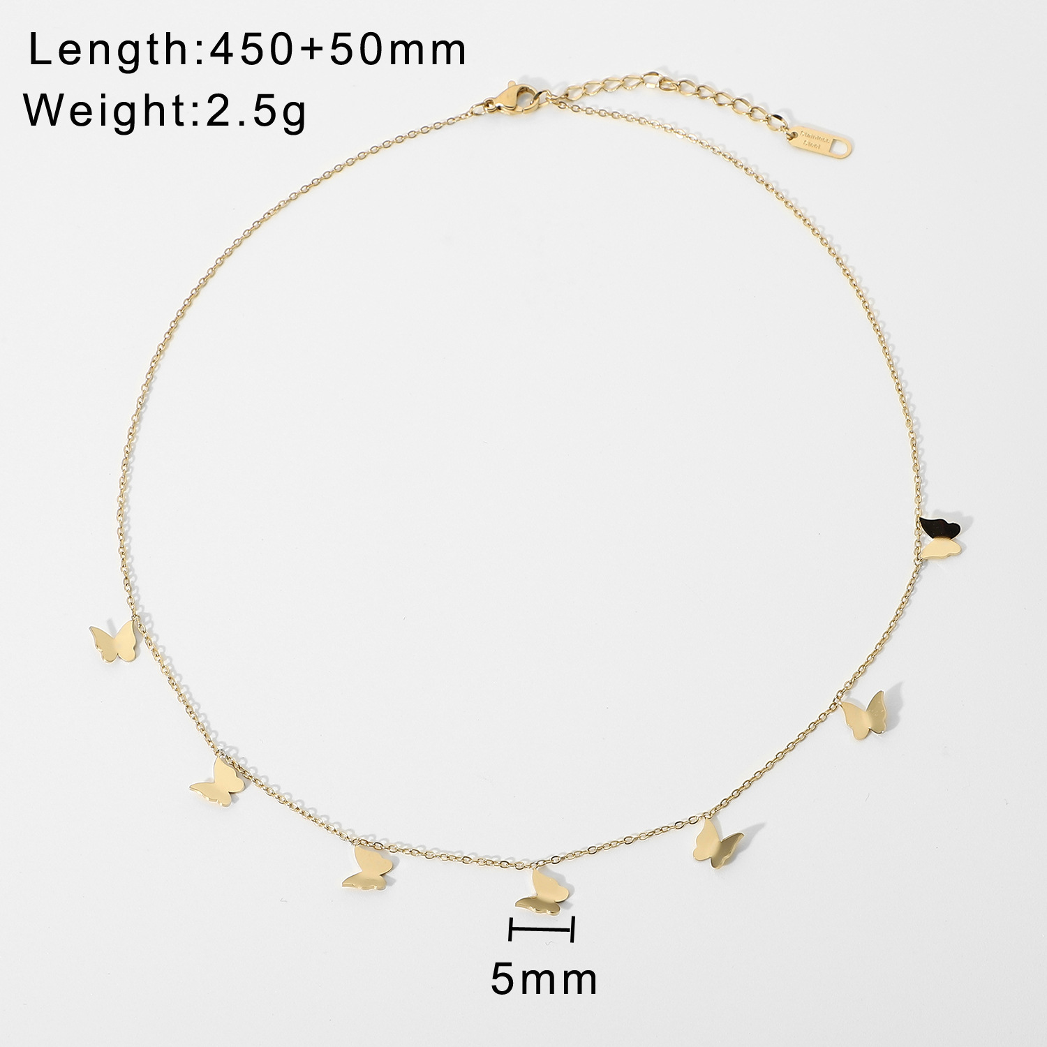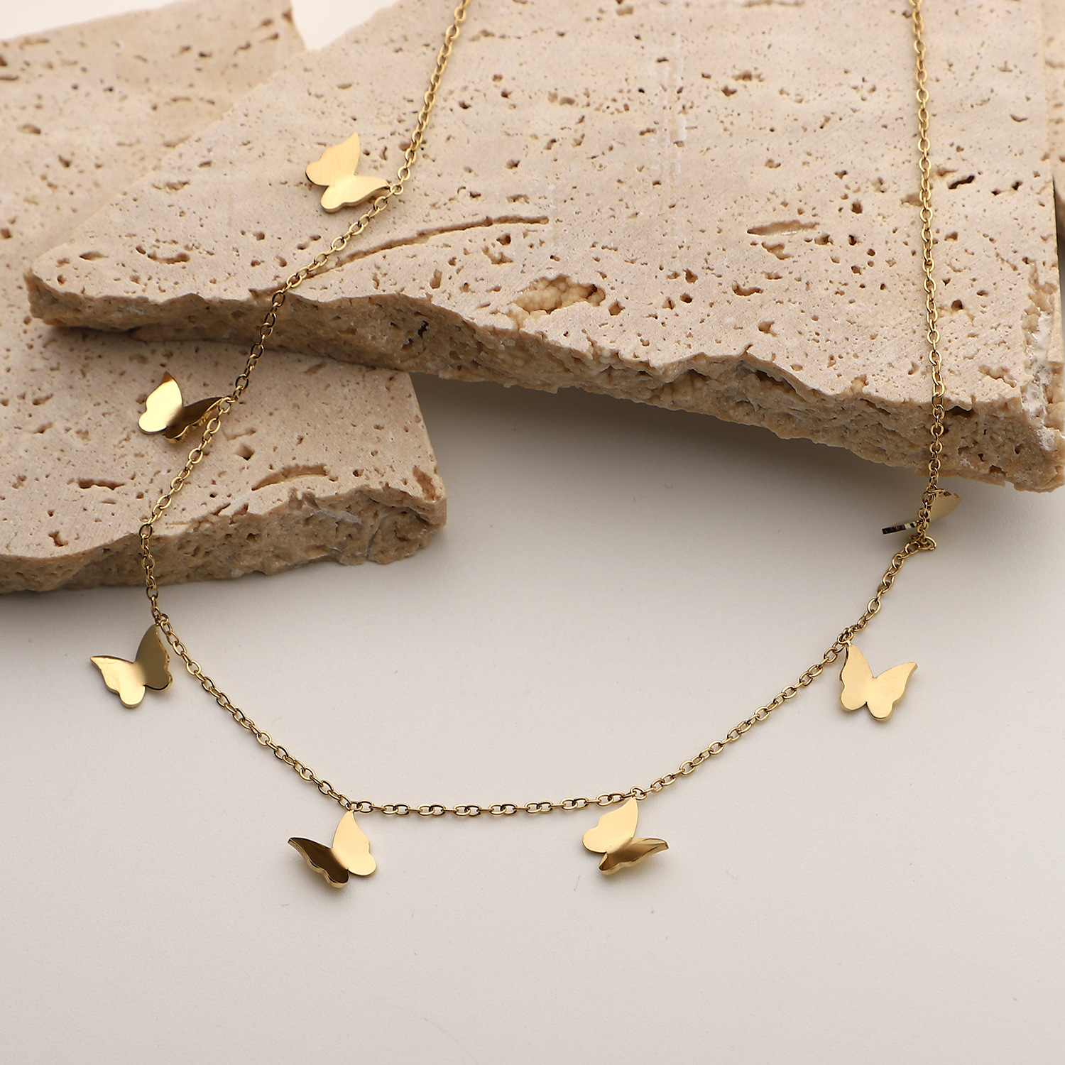 标题:欧美INS风新款14K镀金不锈钢项链饰品金色多个迷你小蝴蝶吊坠项链