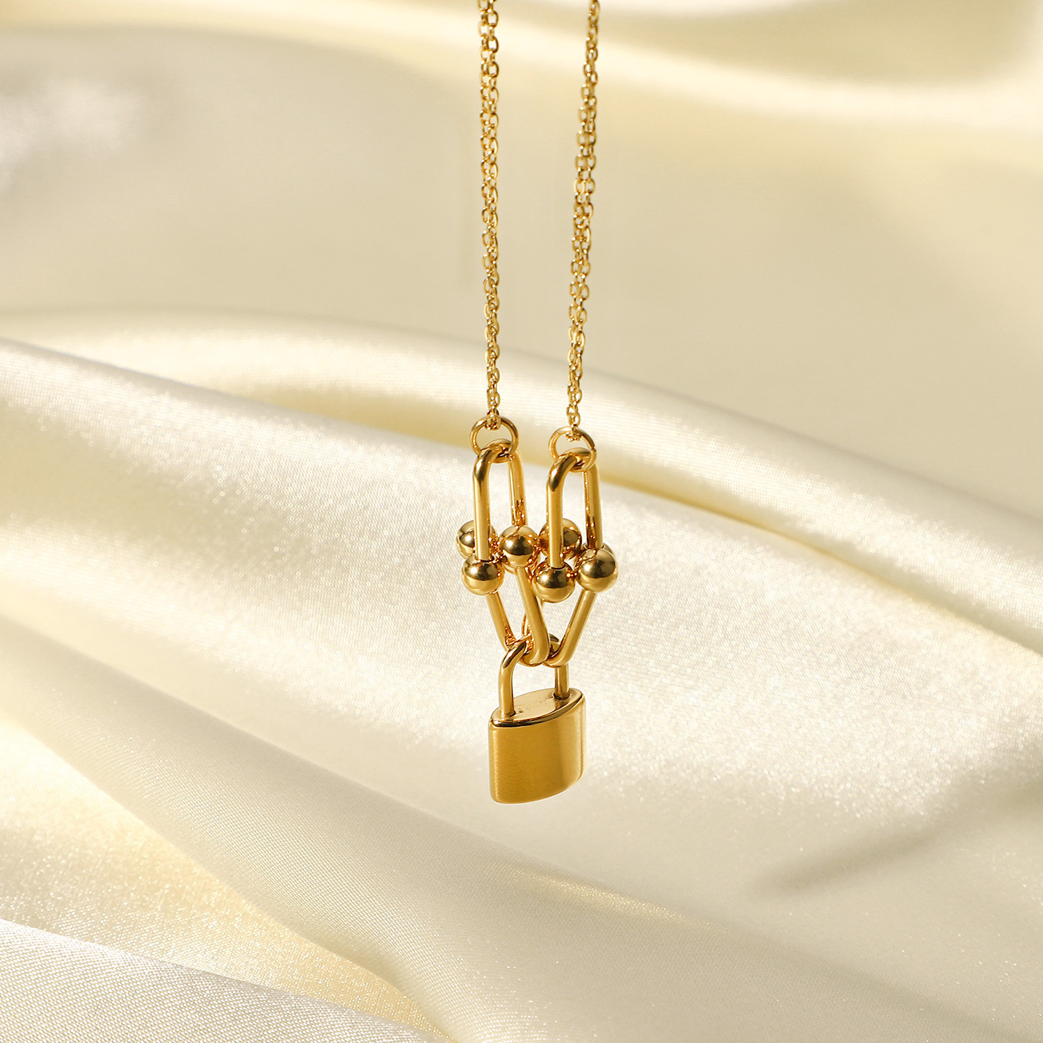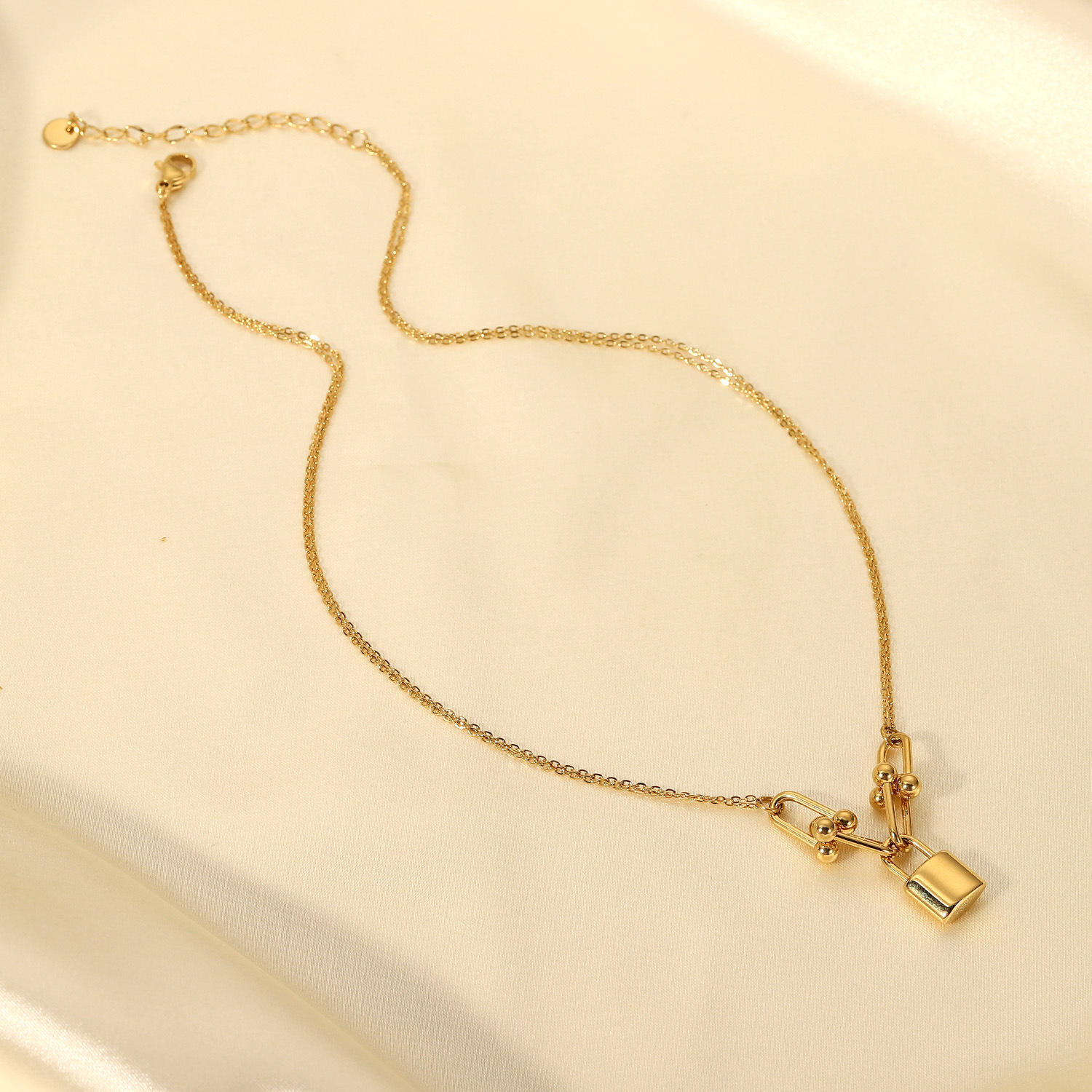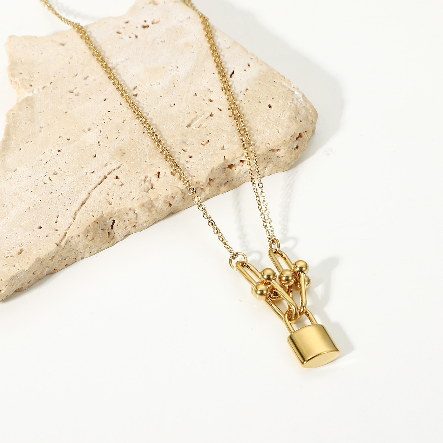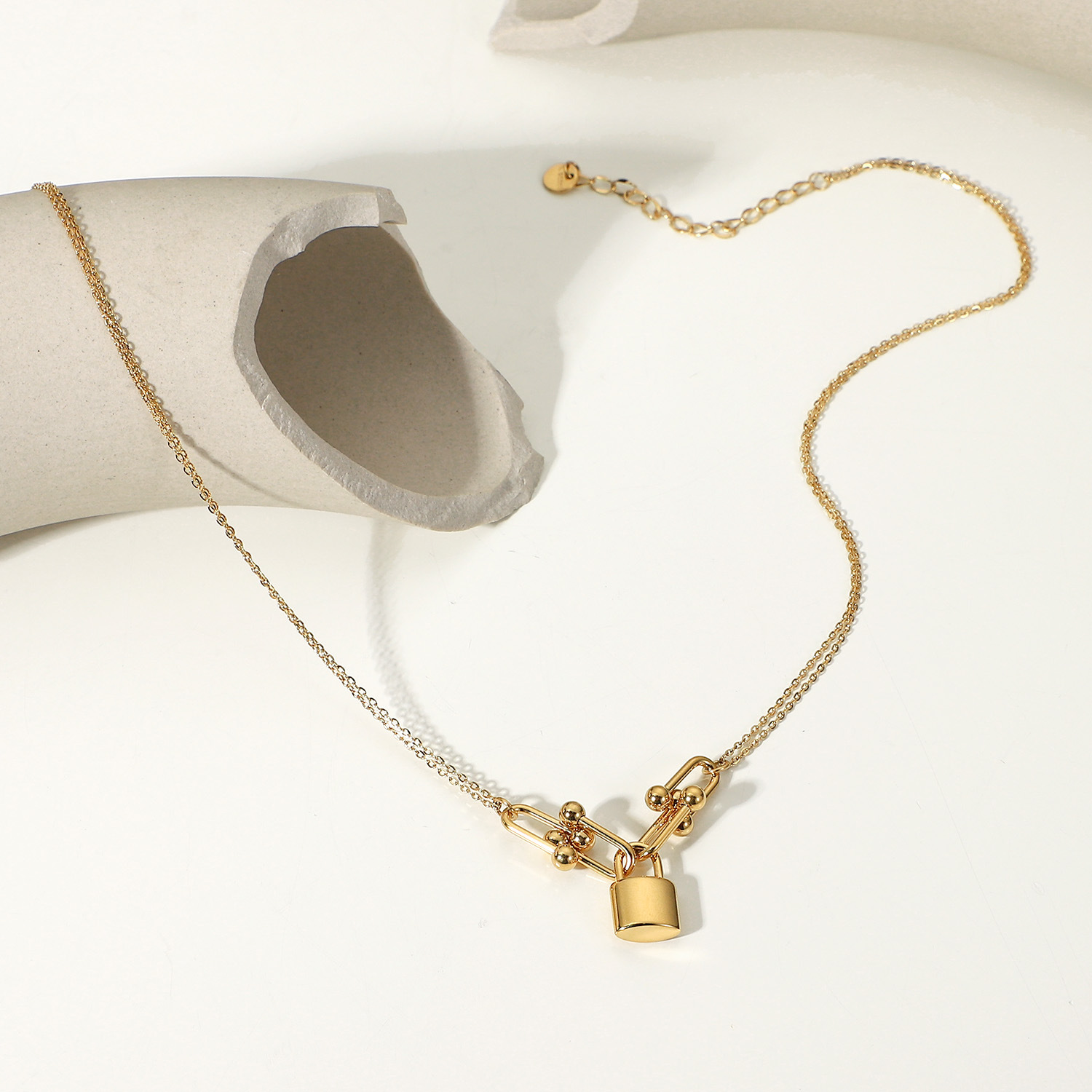 标题:欧美INS网红同款时尚项链 18K金立体不锈钢U形链锁造型吊坠项链女