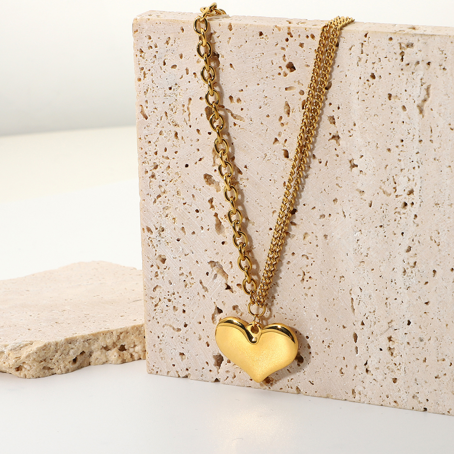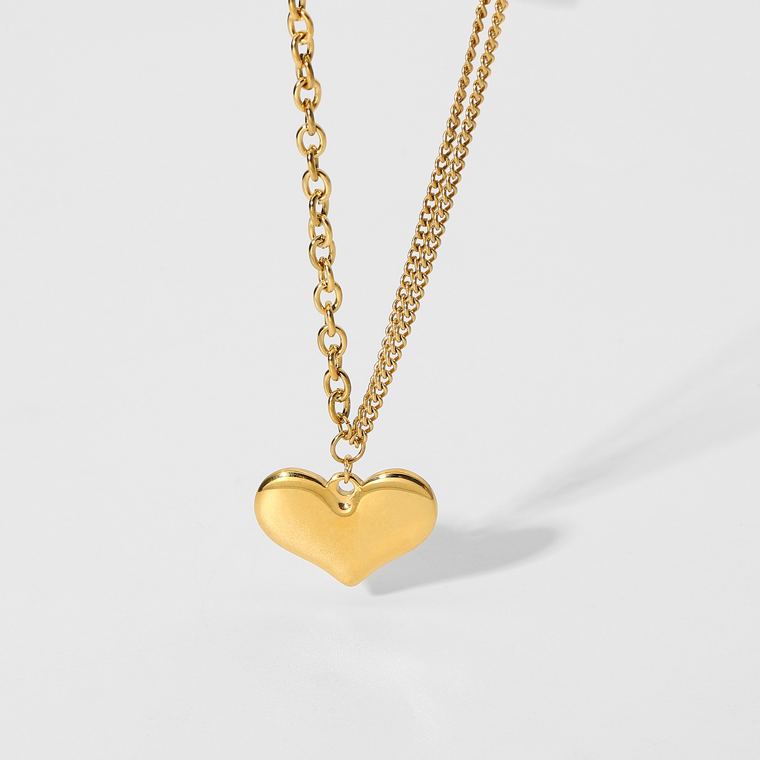 标题:欧美风时尚INS爱心吊坠双层项链 18K镀金不锈钢心形项链饰品女士