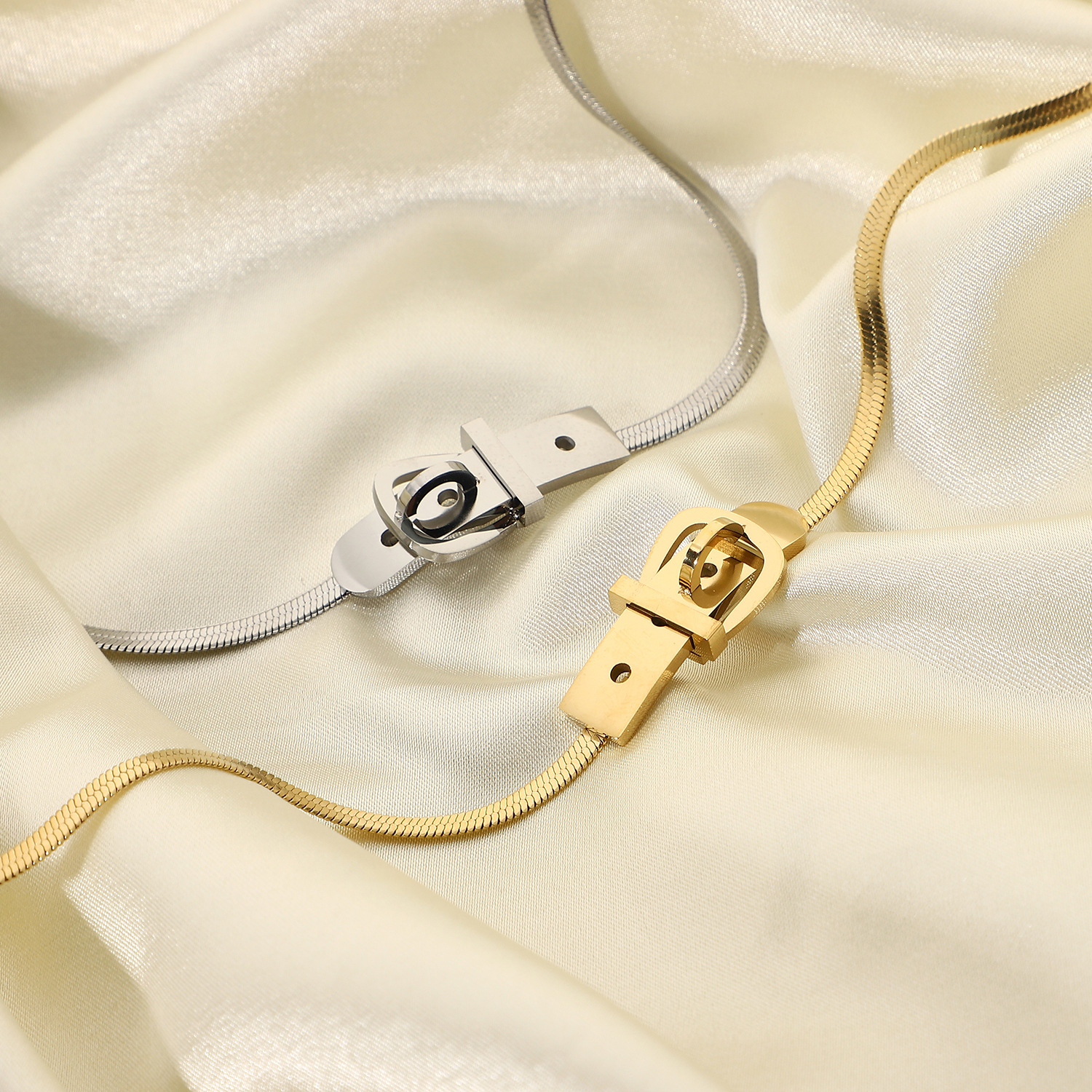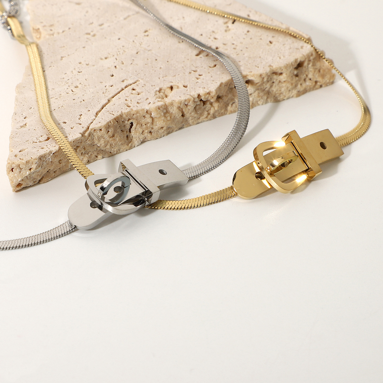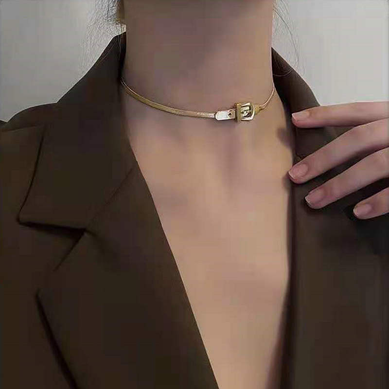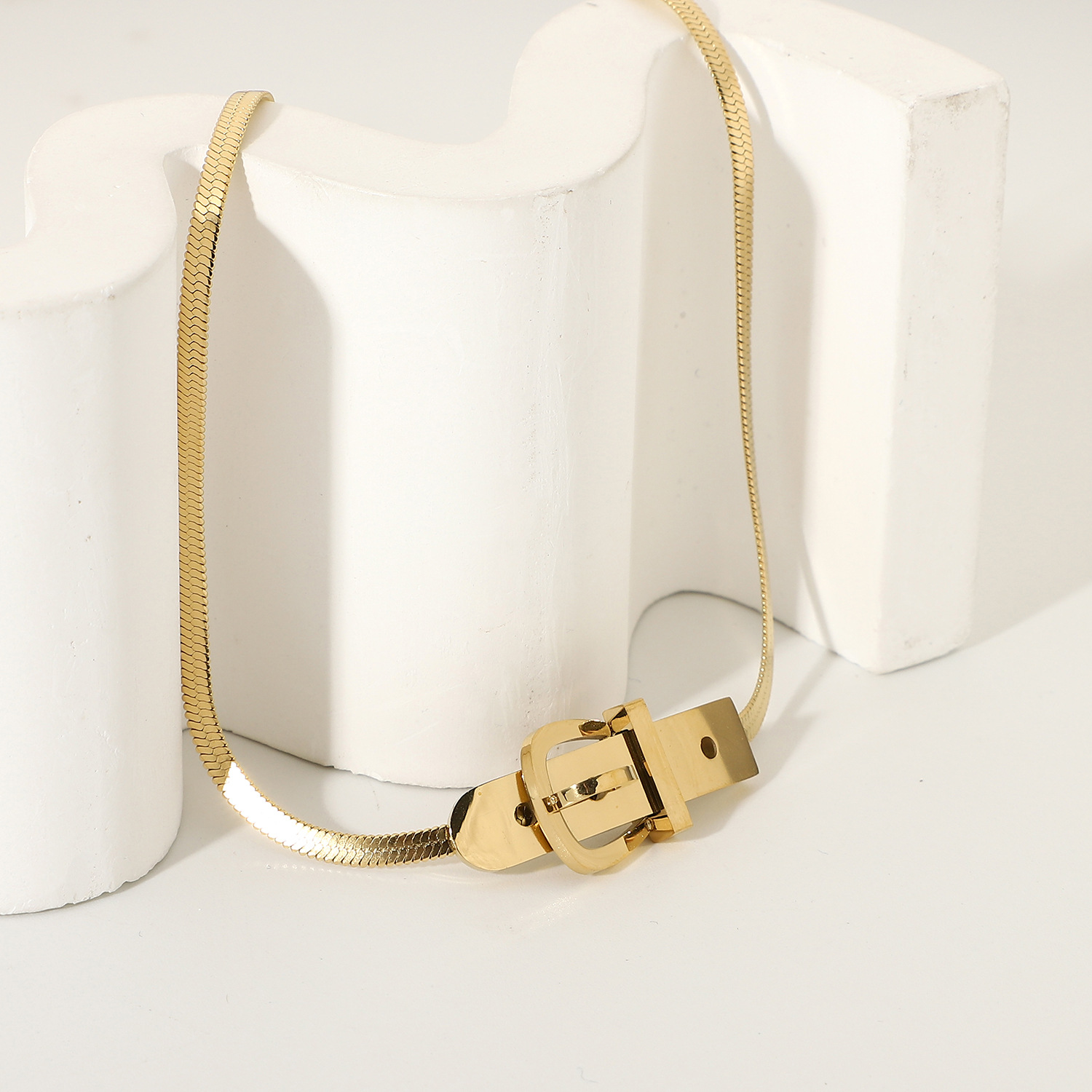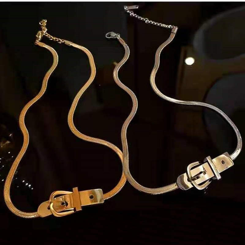 标题:INS网红同款时尚叠戴项链14K镀金不锈钢金色皮带扣表带扣项链女士