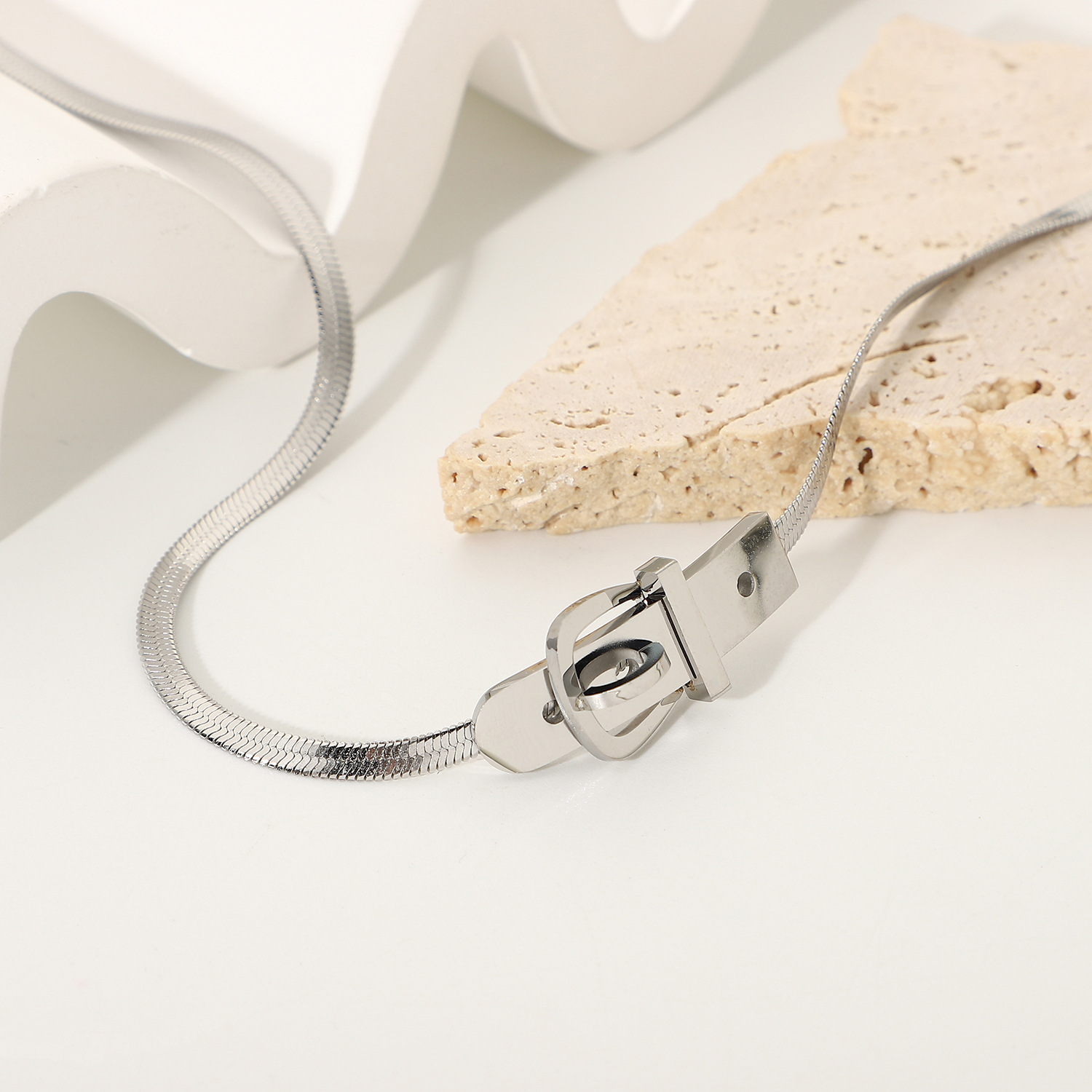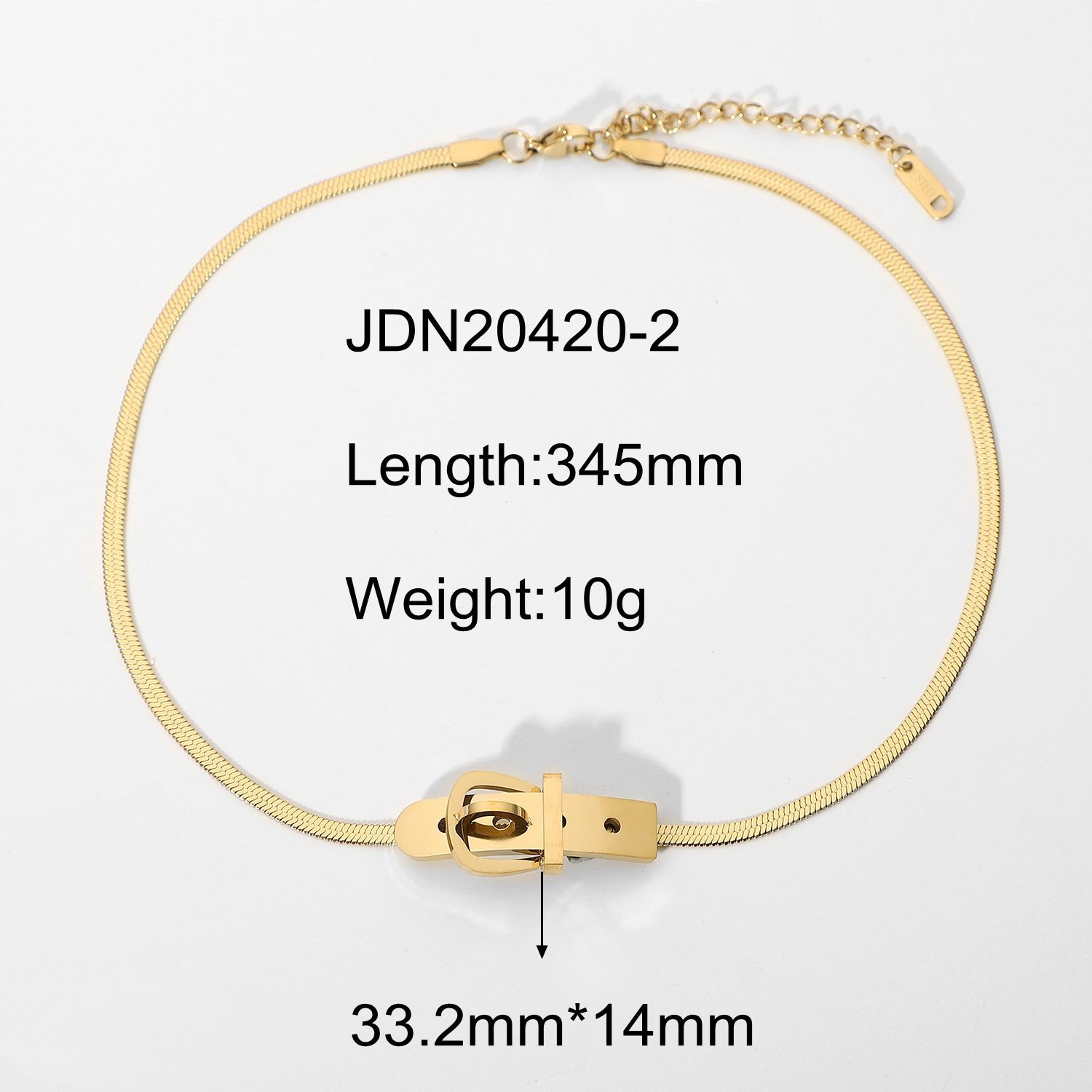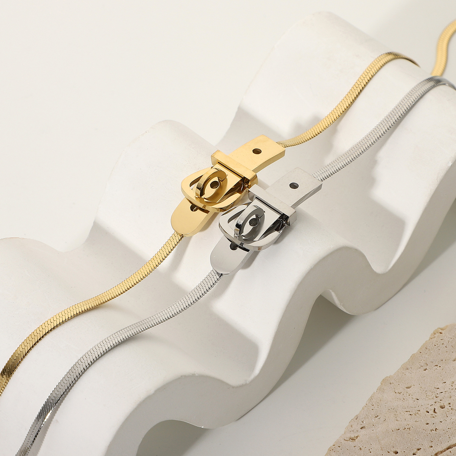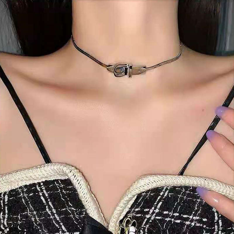 标题:INS网红同款时尚叠戴项链14K镀金不锈钢金色皮带扣表带扣项链女士