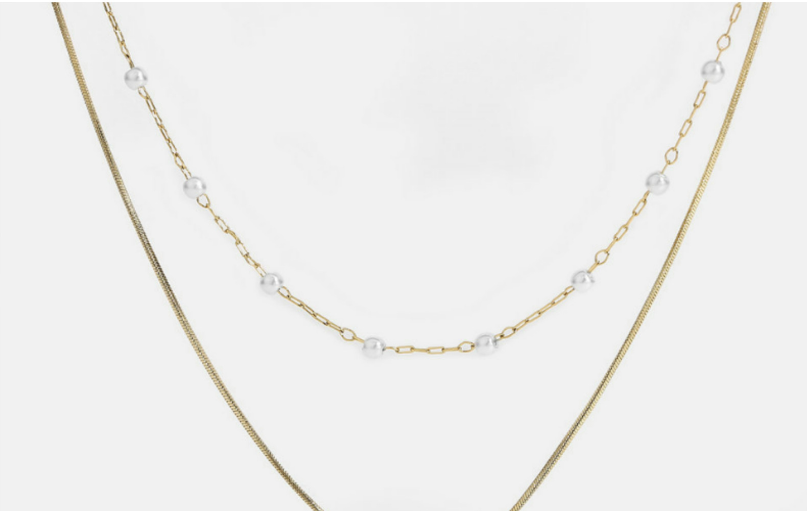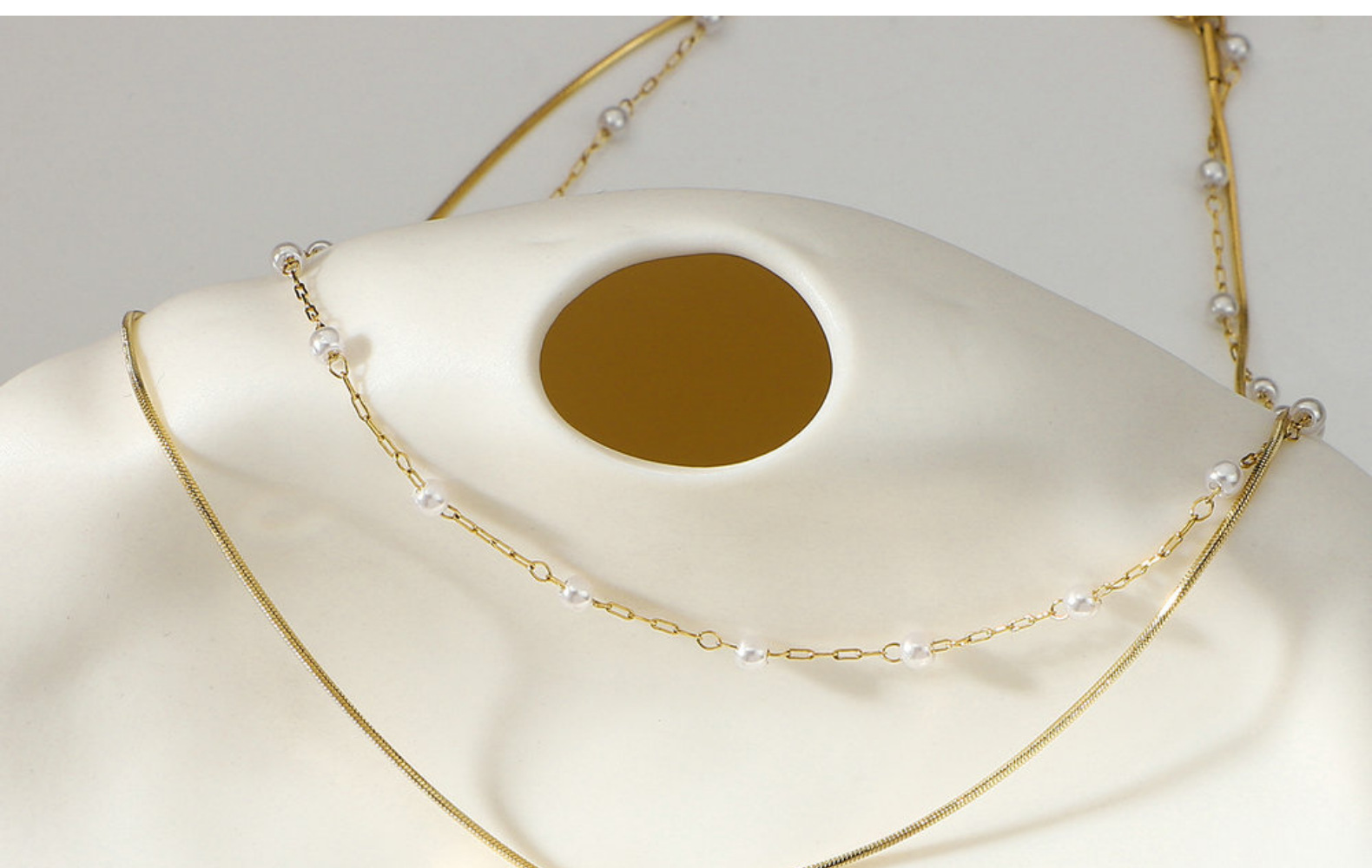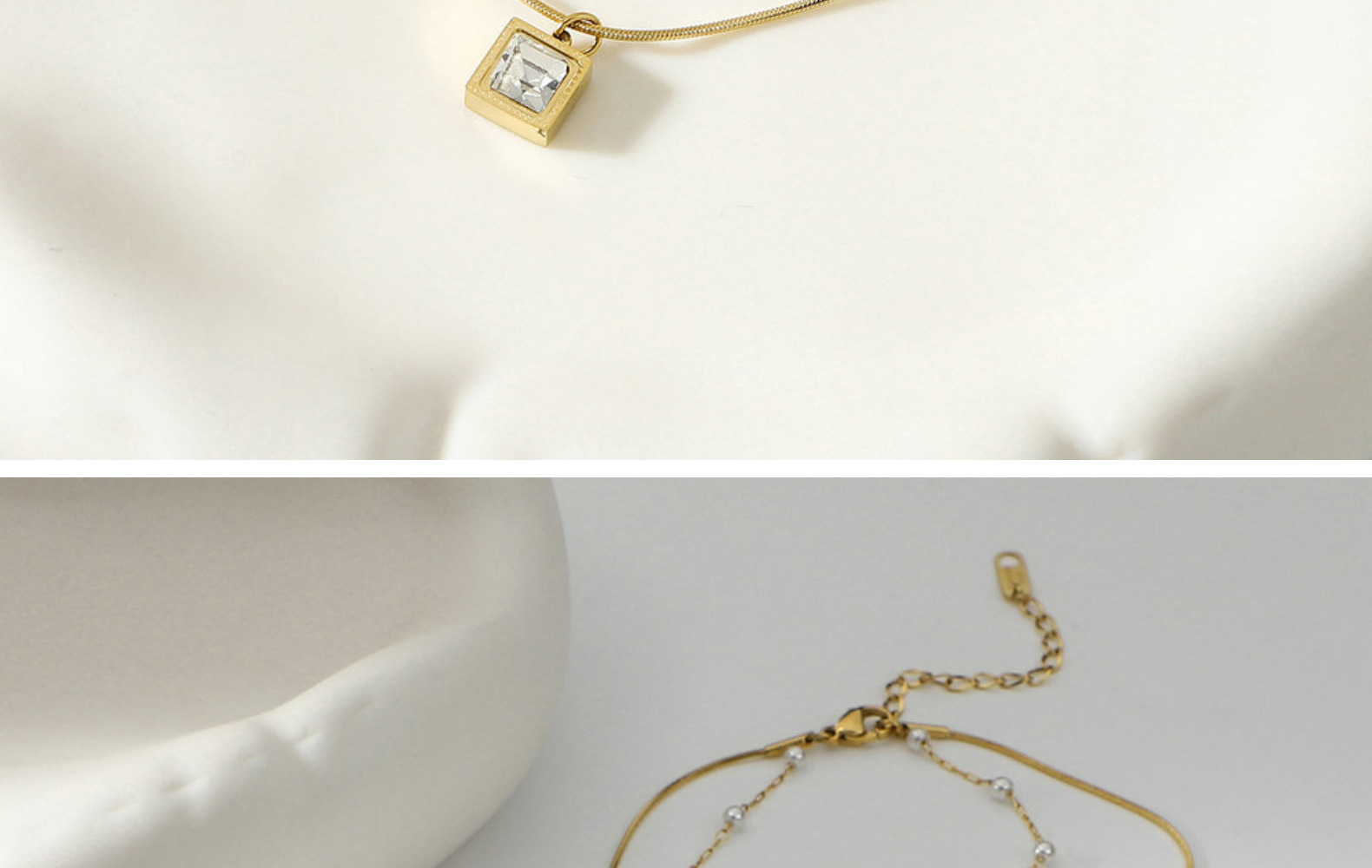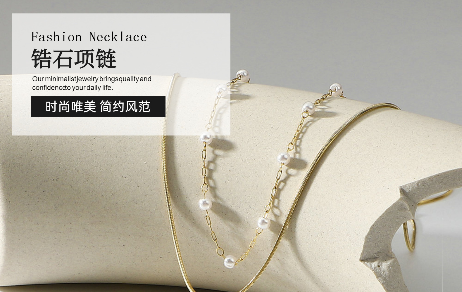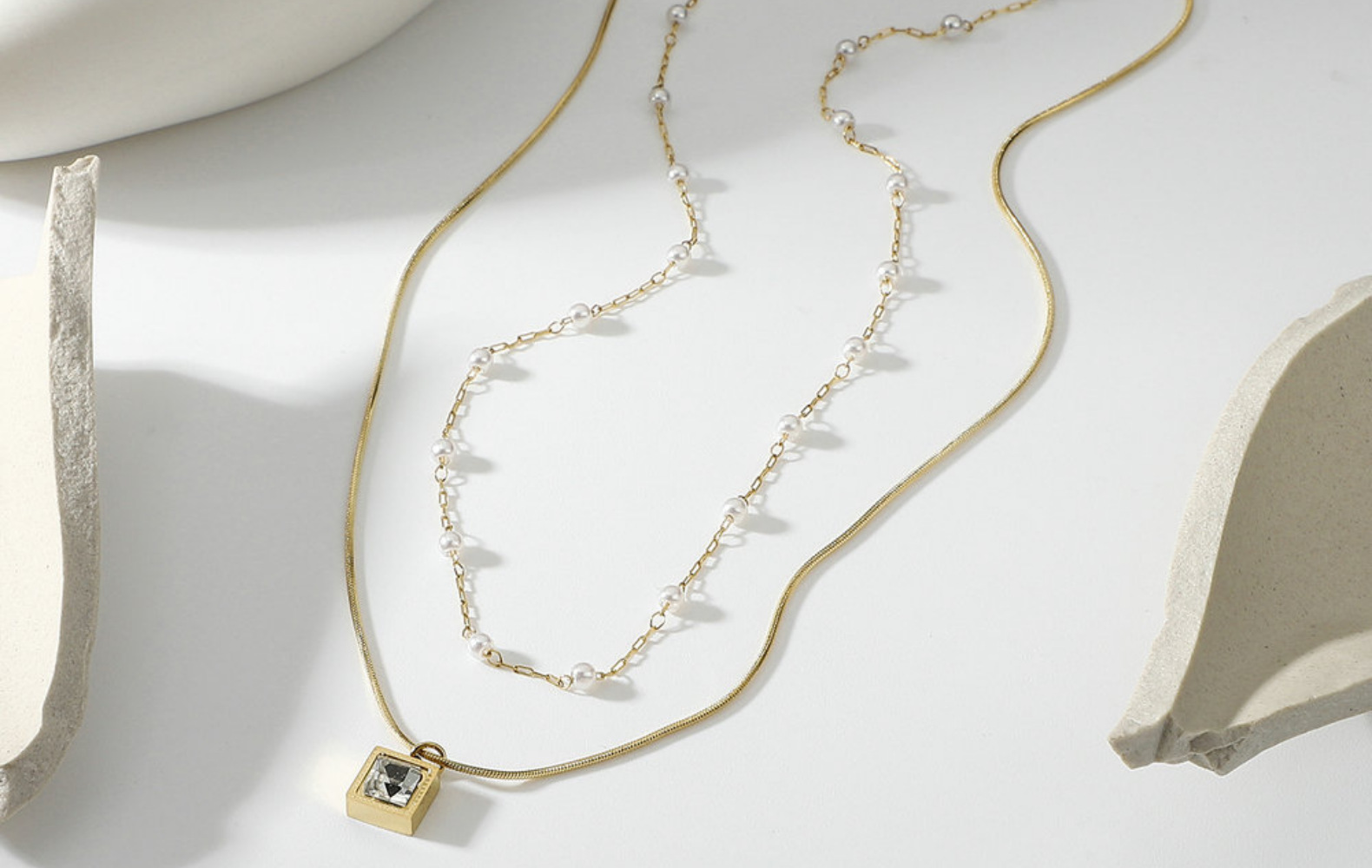 标题:欧美网红同款项链 14K金色方形锆石吊坠高层小珍珠精细项链饰品女