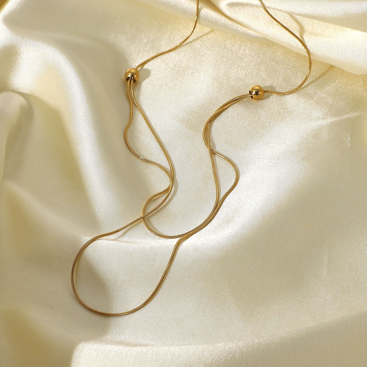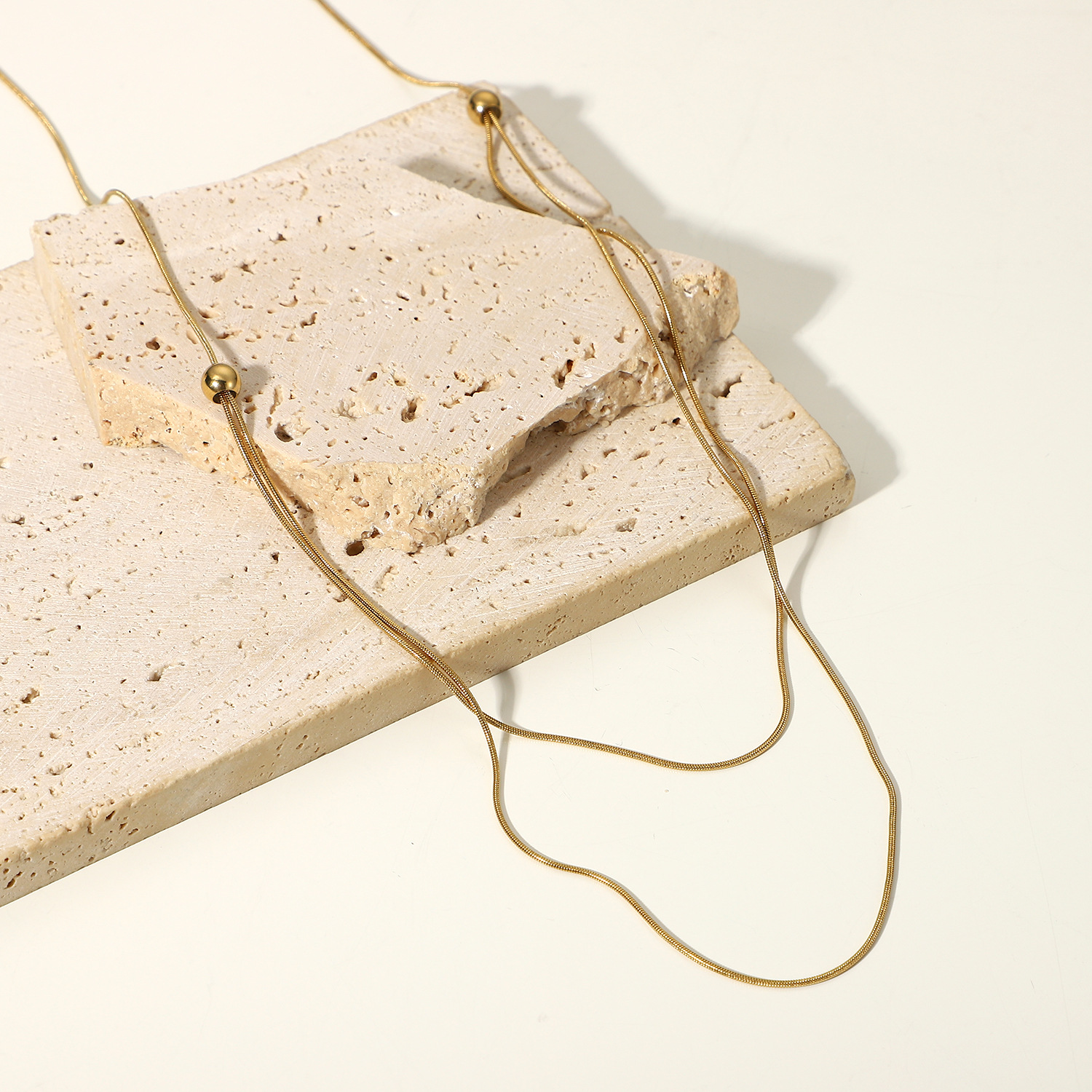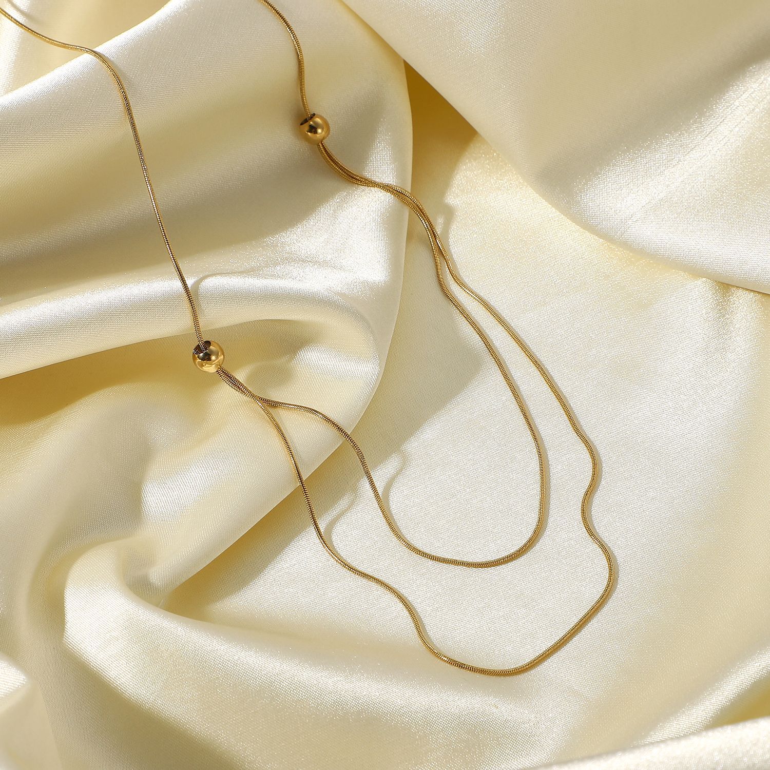 标题:欧美INS网红新款项链 不锈钢14K镀金首饰双层缩珠可调节项链女式