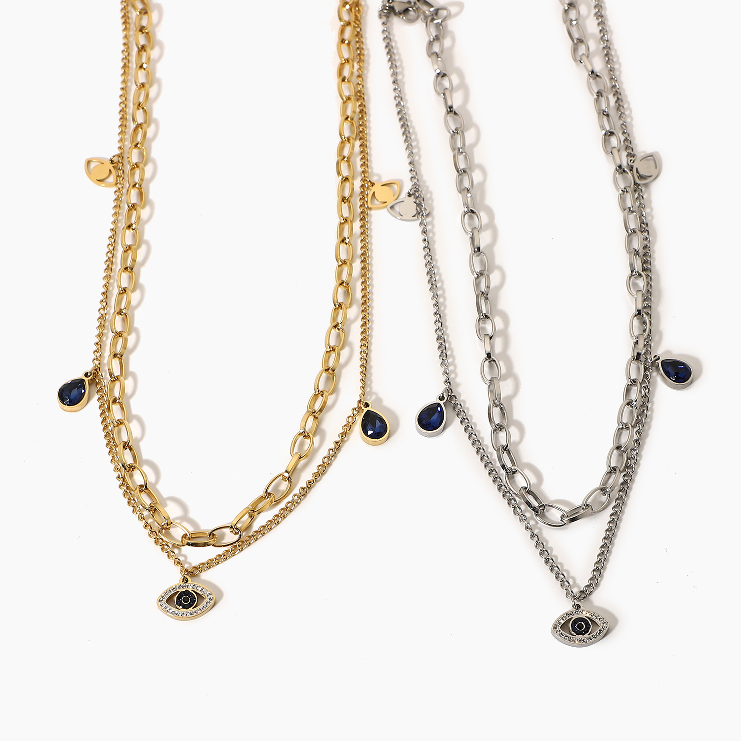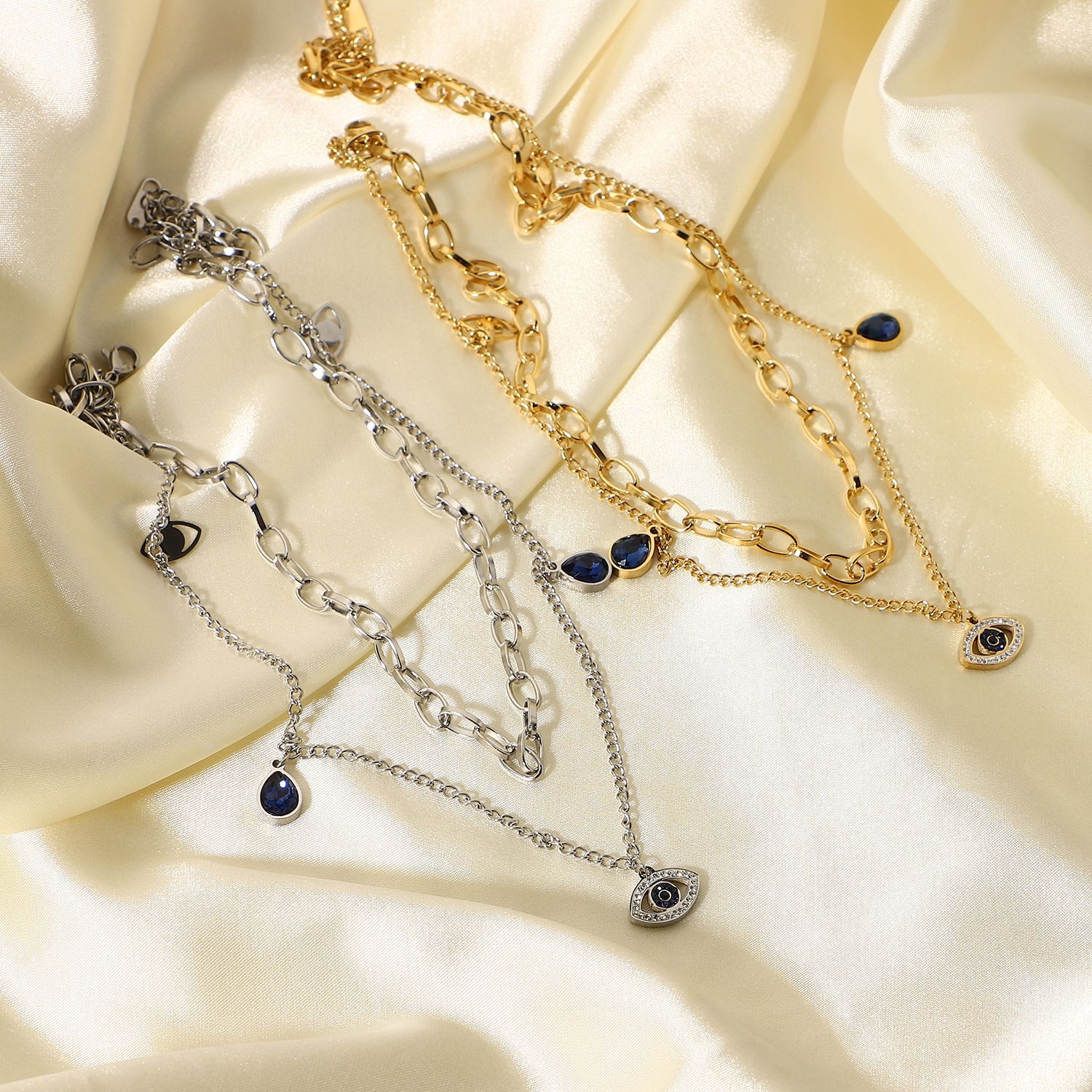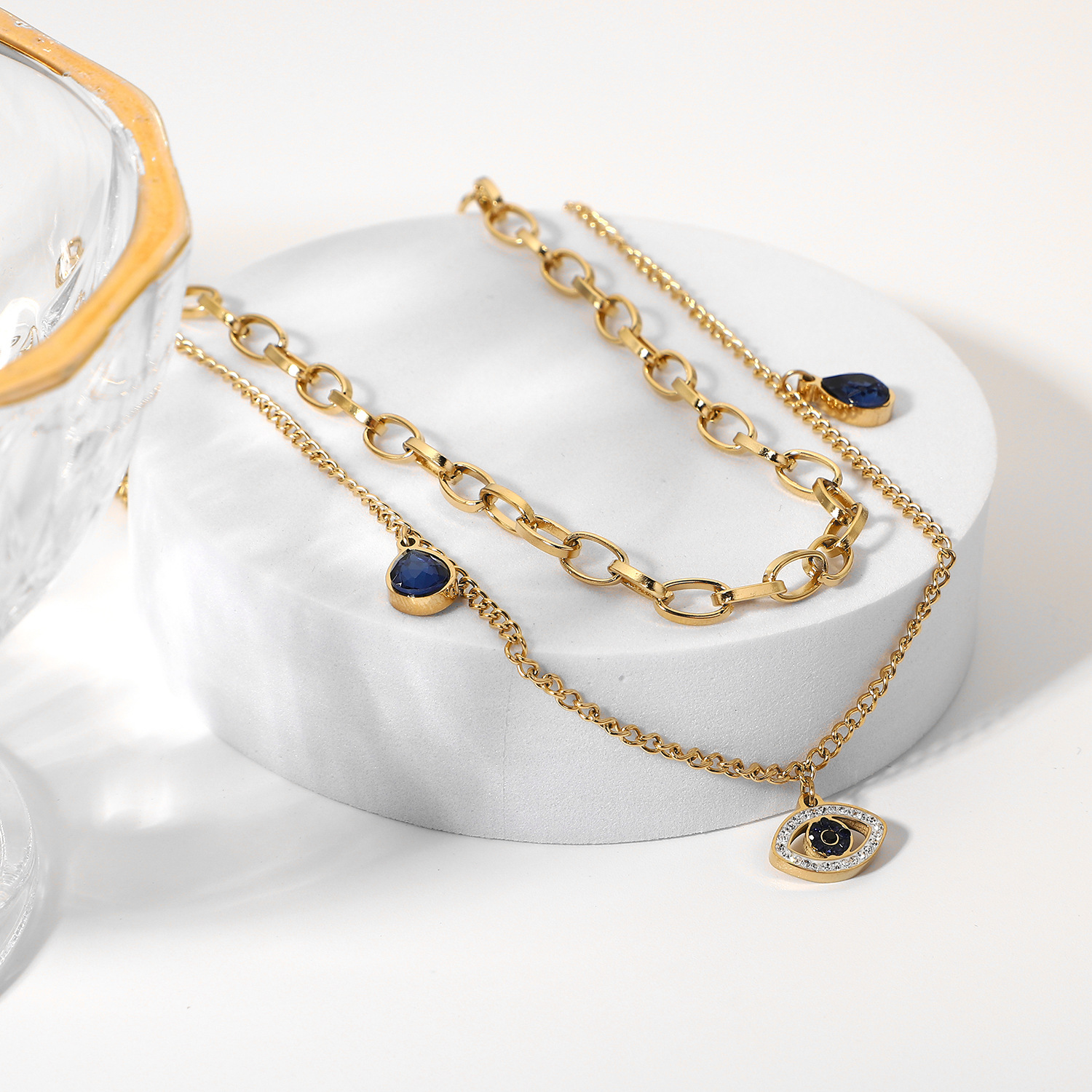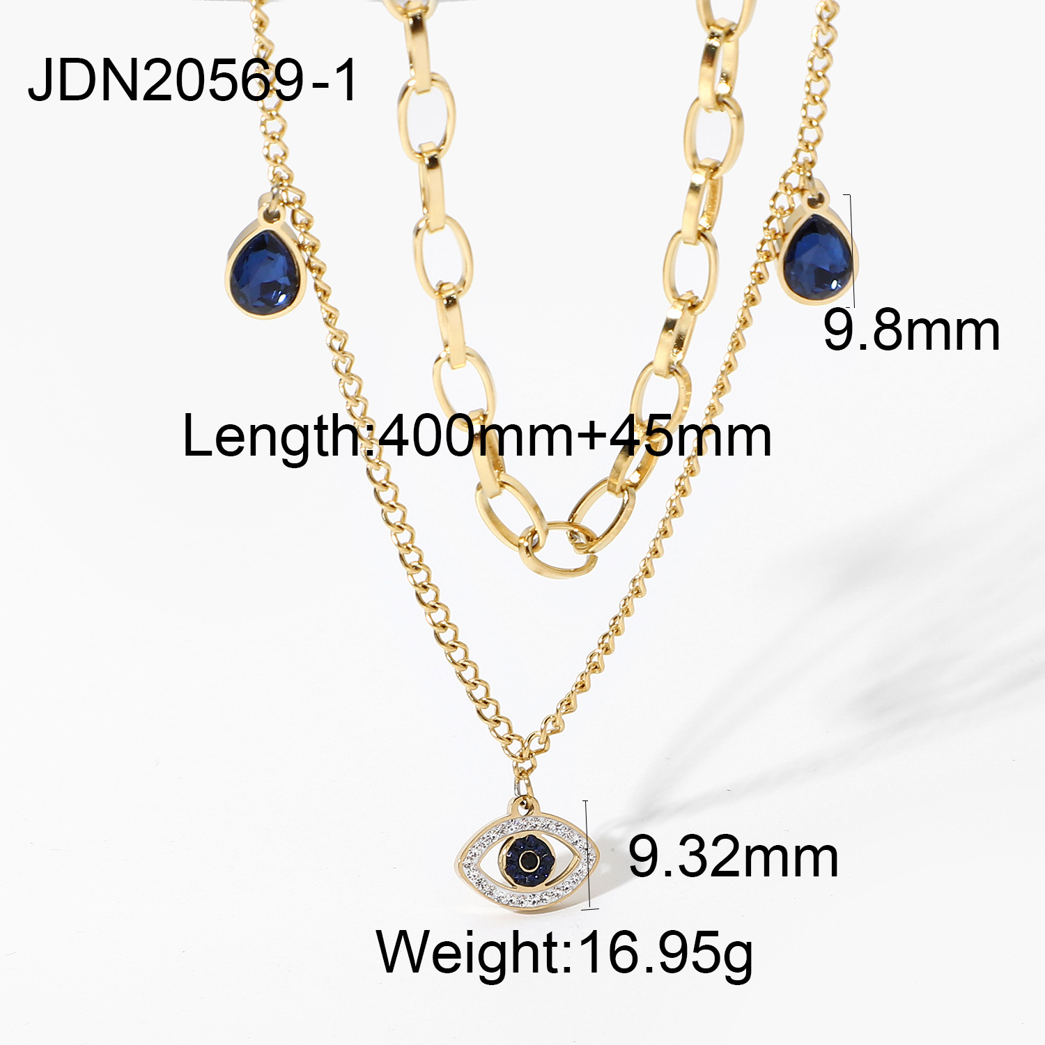 标题:INS风新款时尚14k不锈钢镀金双宝石项链女式双层眼睛吊坠项链饰品
