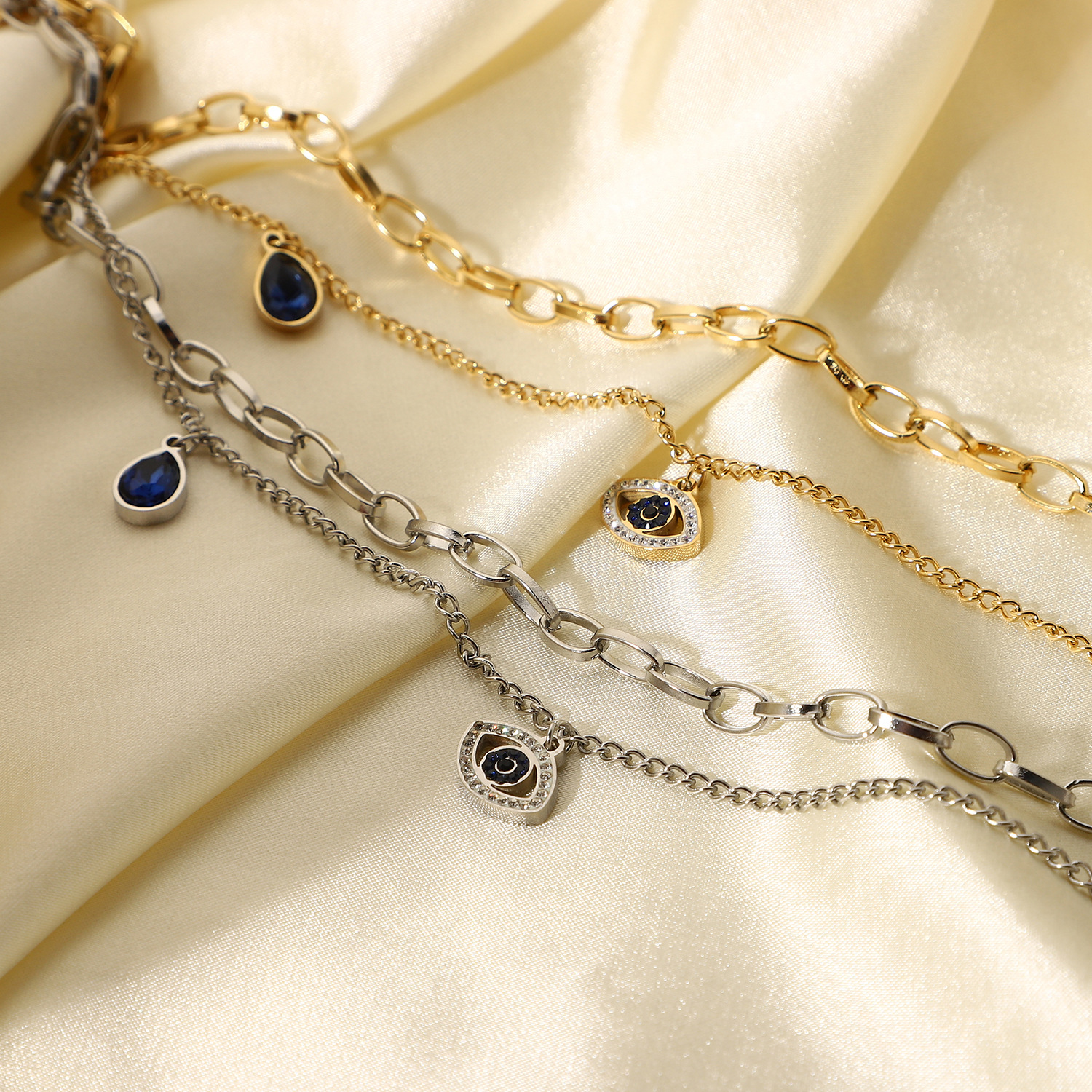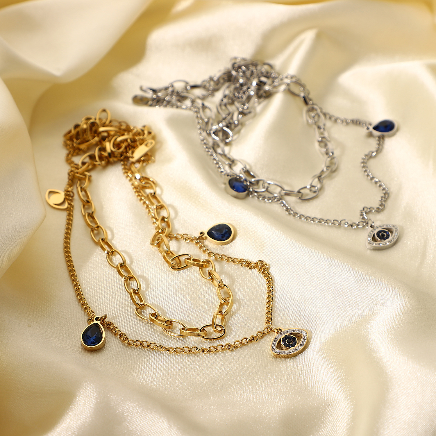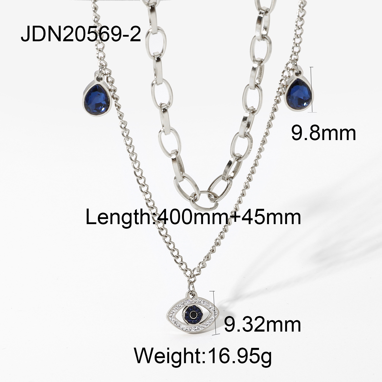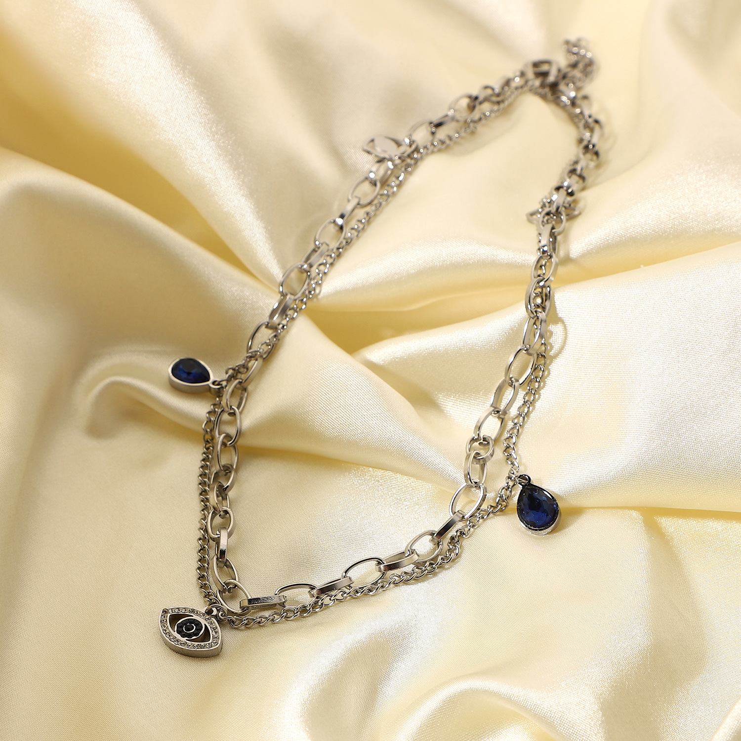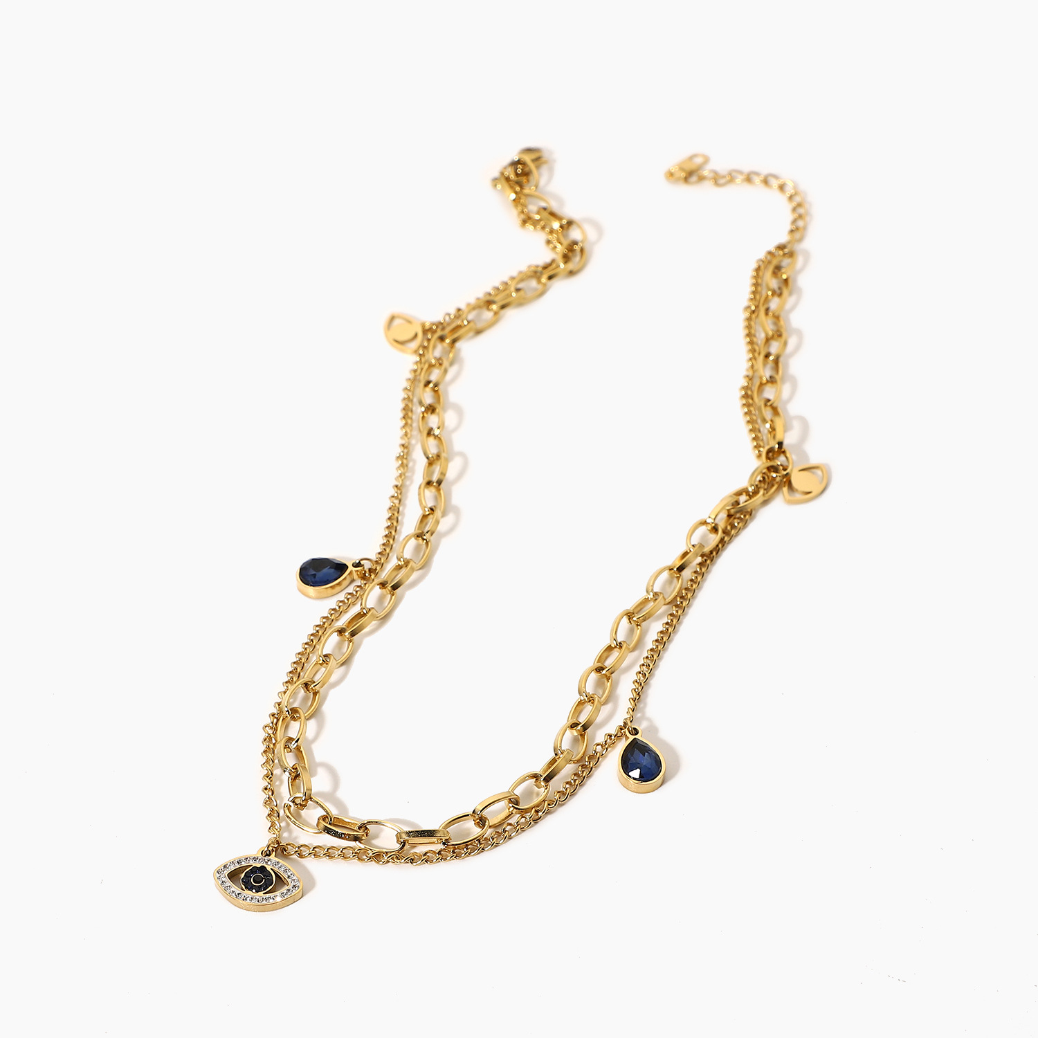 标题:INS风新款时尚14k不锈钢镀金双宝石项链女式双层眼睛吊坠项链饰品