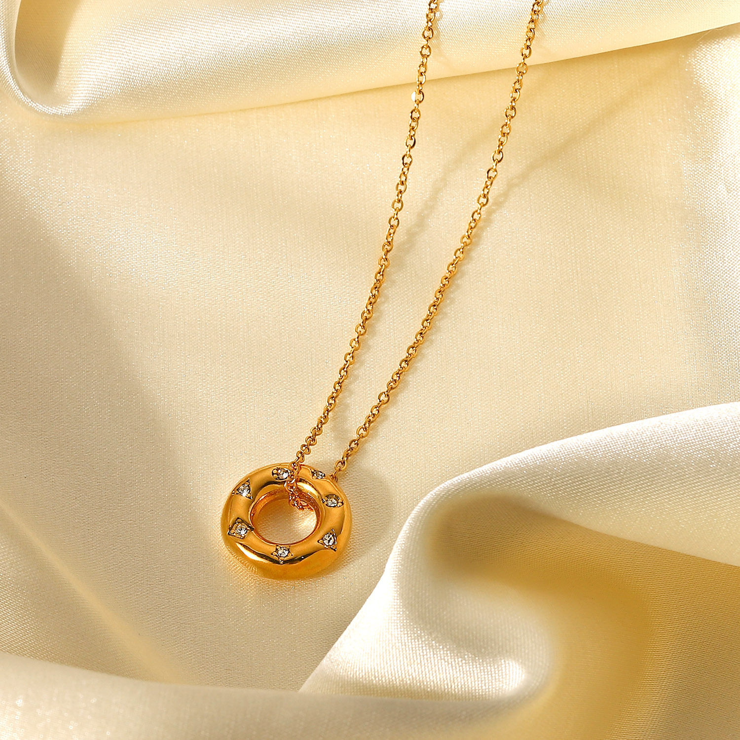 标题:欧美INS风新款不锈钢项链18K金镶锆石镂空圆环吊坠项链饰品女式