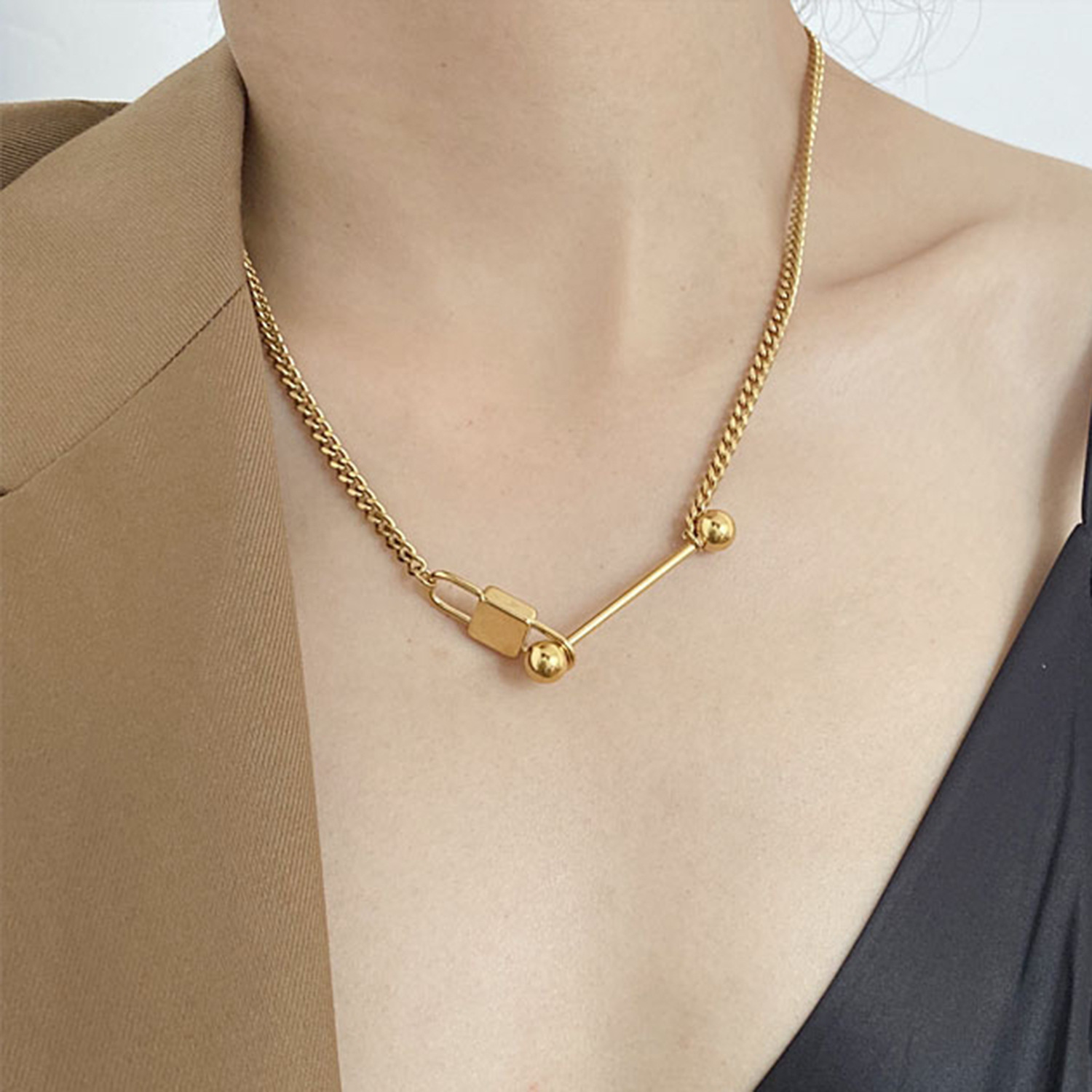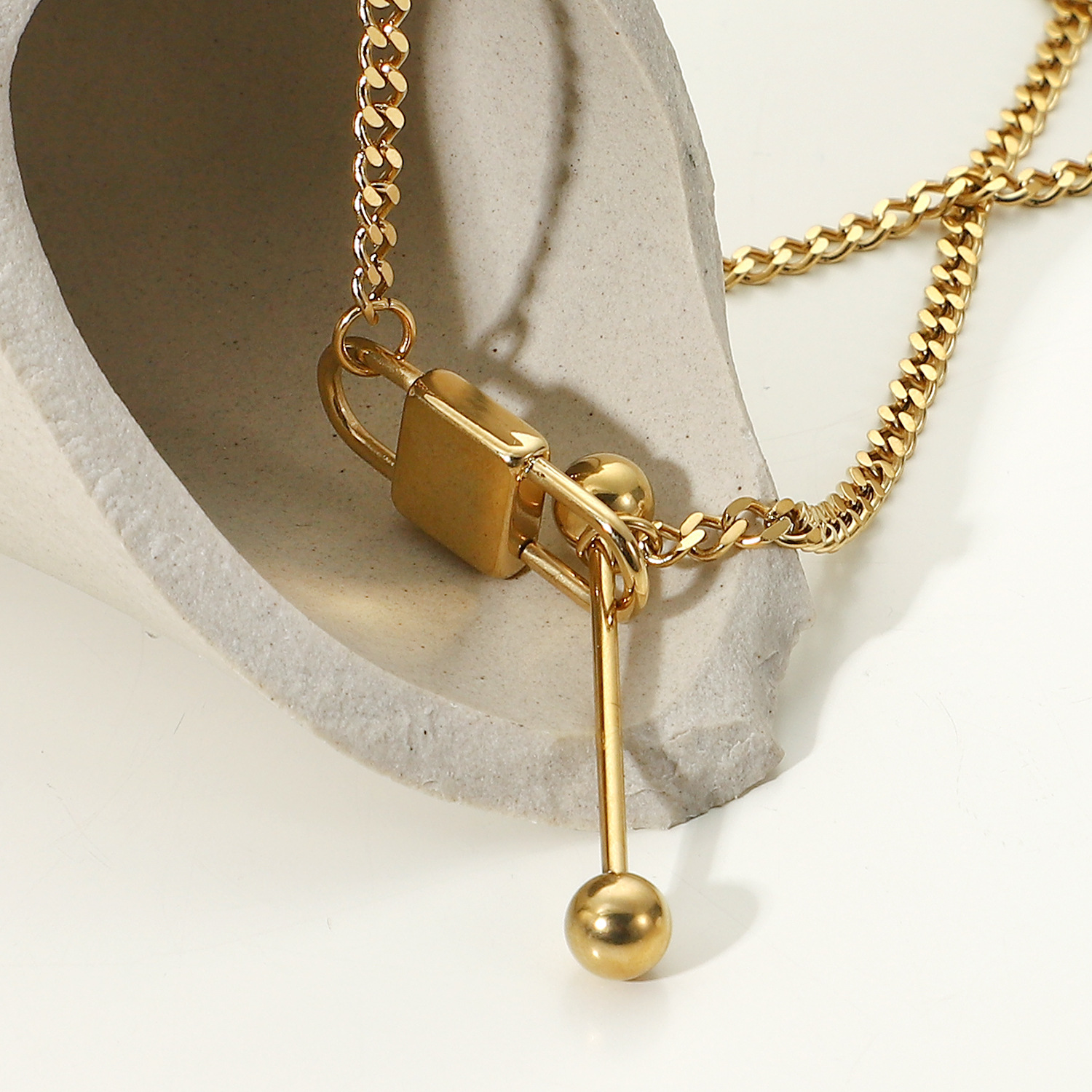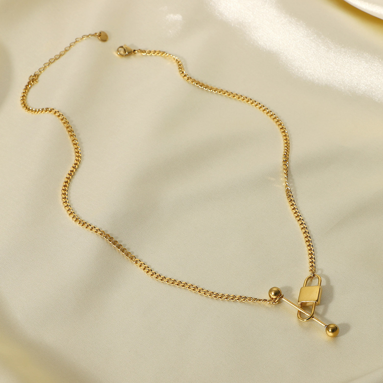 标题:14K真空电镀金锁链项链首饰 不锈钢圆珠酒吧锁吊坠项链女颈链饰品