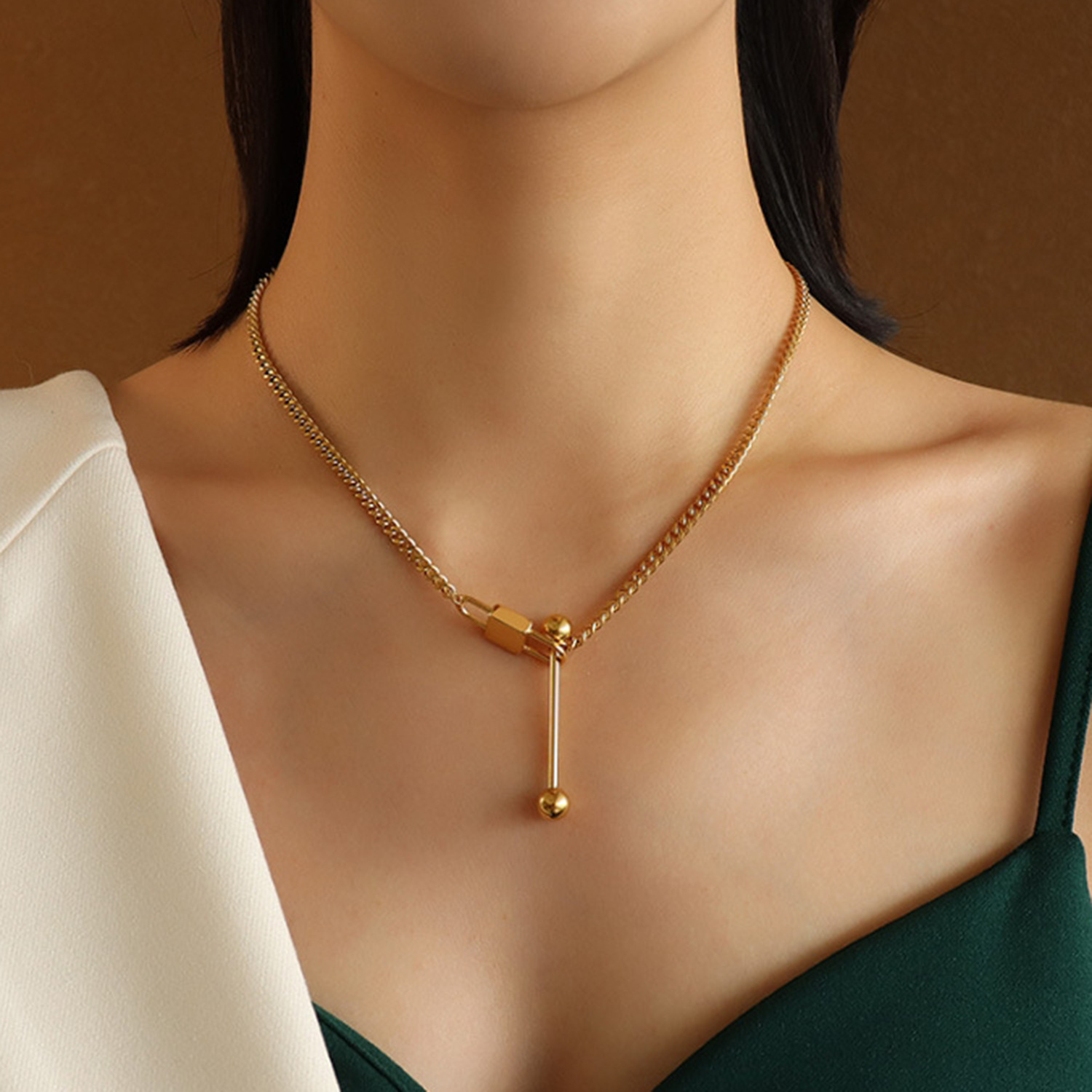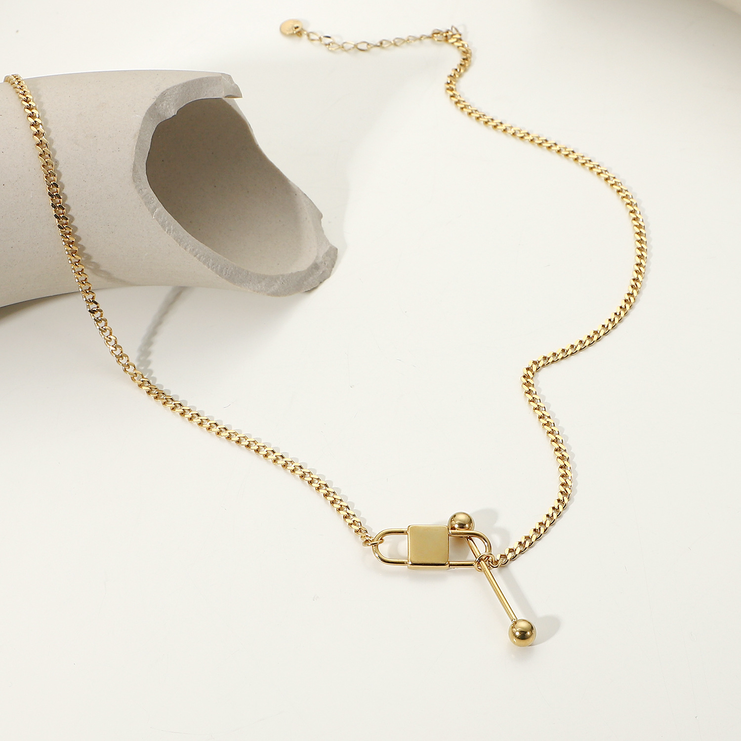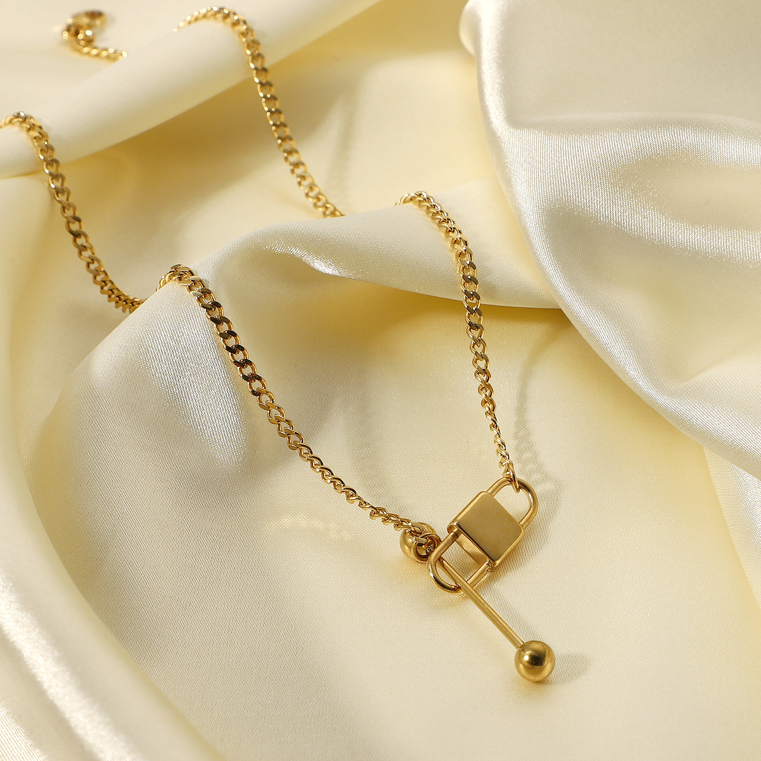 标题:14K真空电镀金锁链项链首饰 不锈钢圆珠酒吧锁吊坠项链女颈链饰品