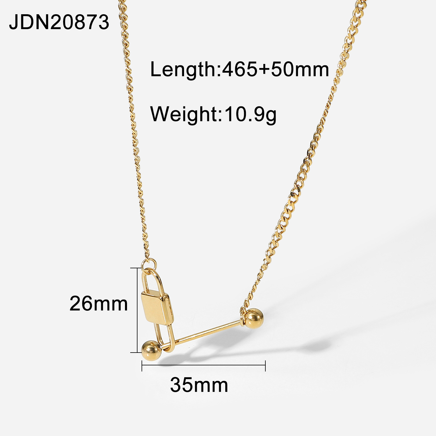 描述:风格:简约,材质:不锈钢,处理工艺:电镀,品牌:Youthway,生产编号:JDN20873,销售序列号:JDN20873,种类:项链,样式:女式,造型:锁,包装:独立包装,适用送礼场合:婚庆,旅游纪念,员工福利,加工定制:是,货号:JDN20873,产地:浙江义乌,链子样式:常规链,是否多层:是,是否带坠:是,延长链:10cm以下,坠子材质:不锈钢,周长:21cm(含)-50cm(含),系列:不锈钢,形象:项链,主要下游平台:ebay,亚马逊,wish,速卖通,独立站,LAZADA,颜色:JDN20873,主要销售地区:非洲,欧洲,南美,东南亚,北美,东北亚,中东,有可授权的自有品牌:是,是否跨境出口专供货源:是,流行元素:金属,链条,几何,上市年份/季节:2021年冬季,