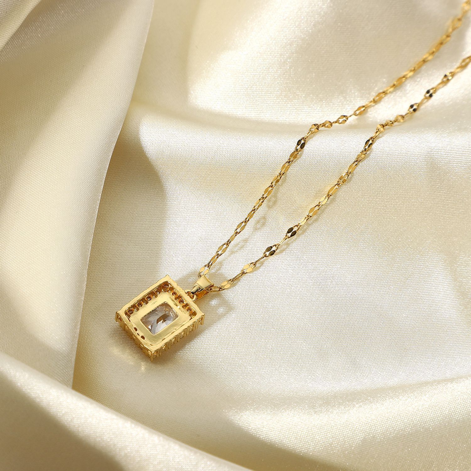标题:欧美INS风18K镀金不锈钢礼品首饰吊饰方形白色立方锆石吊坠项链女