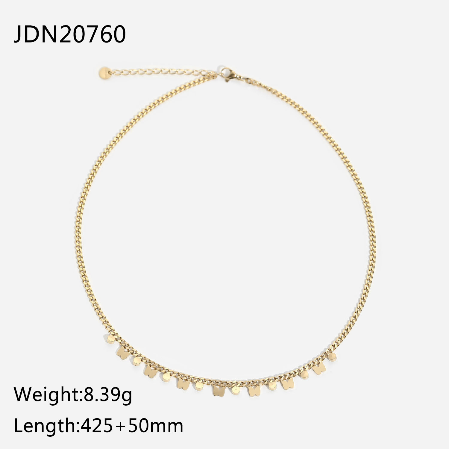 描述:风格:简约,材质:不锈钢,处理工艺:电镀,品牌:Youthway,生产编号:JDN20760,销售序列号:JDN20760,种类:项链,样式:女式,造型:项链,包装:独立包装,适用送礼场合:婚庆,旅游纪念,员工福利,加工定制:是,货号:JDN20760,产地:浙江义乌,链子样式:圆珠链,是否多层:是,是否带坠:是,延长链:10cm以下,坠子材质:钛钢,周长:51cm(含)-80cm(含),系列:不锈钢,形象:颈链,主要下游平台:ebay,亚马逊,wish,速卖通,独立站,LAZADA,颜色:JDN20760,主要销售地区:非洲,欧洲,南美,东南亚,北美,东北亚,中东,有可授权的自有品牌:是,是否跨境出口专供货源:是,流行元素:金属,复古,链条,几何,上市年份/季节:2021年秋季,