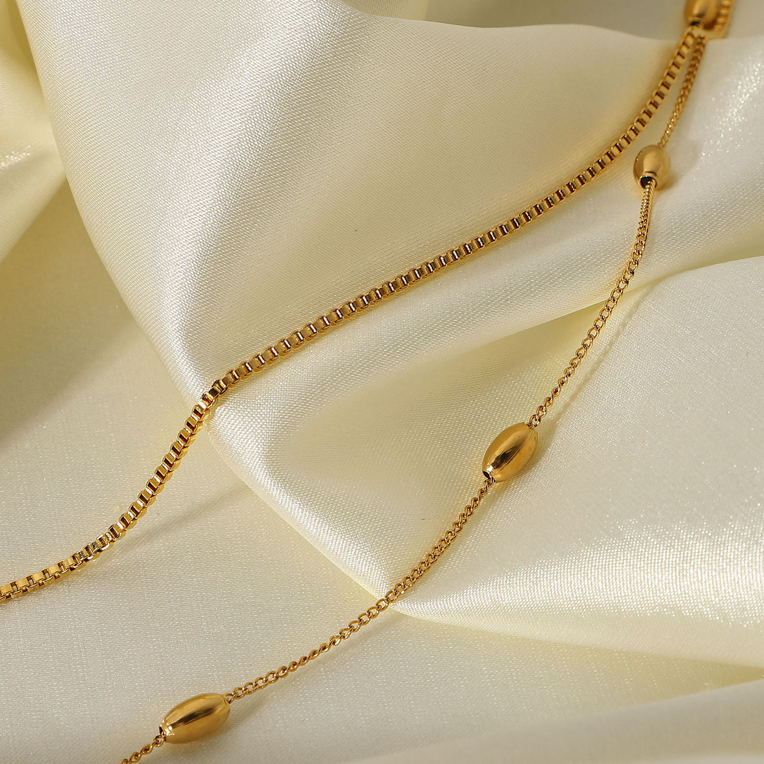 标题:欧美新款热销18K镀金不锈钢饰品椭圆珠双层项链INS网红首饰饰品女