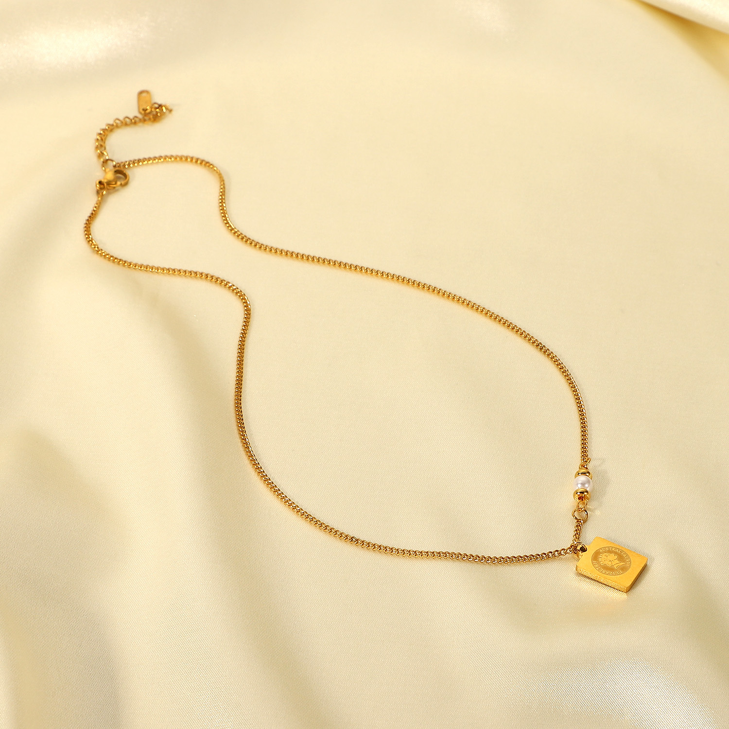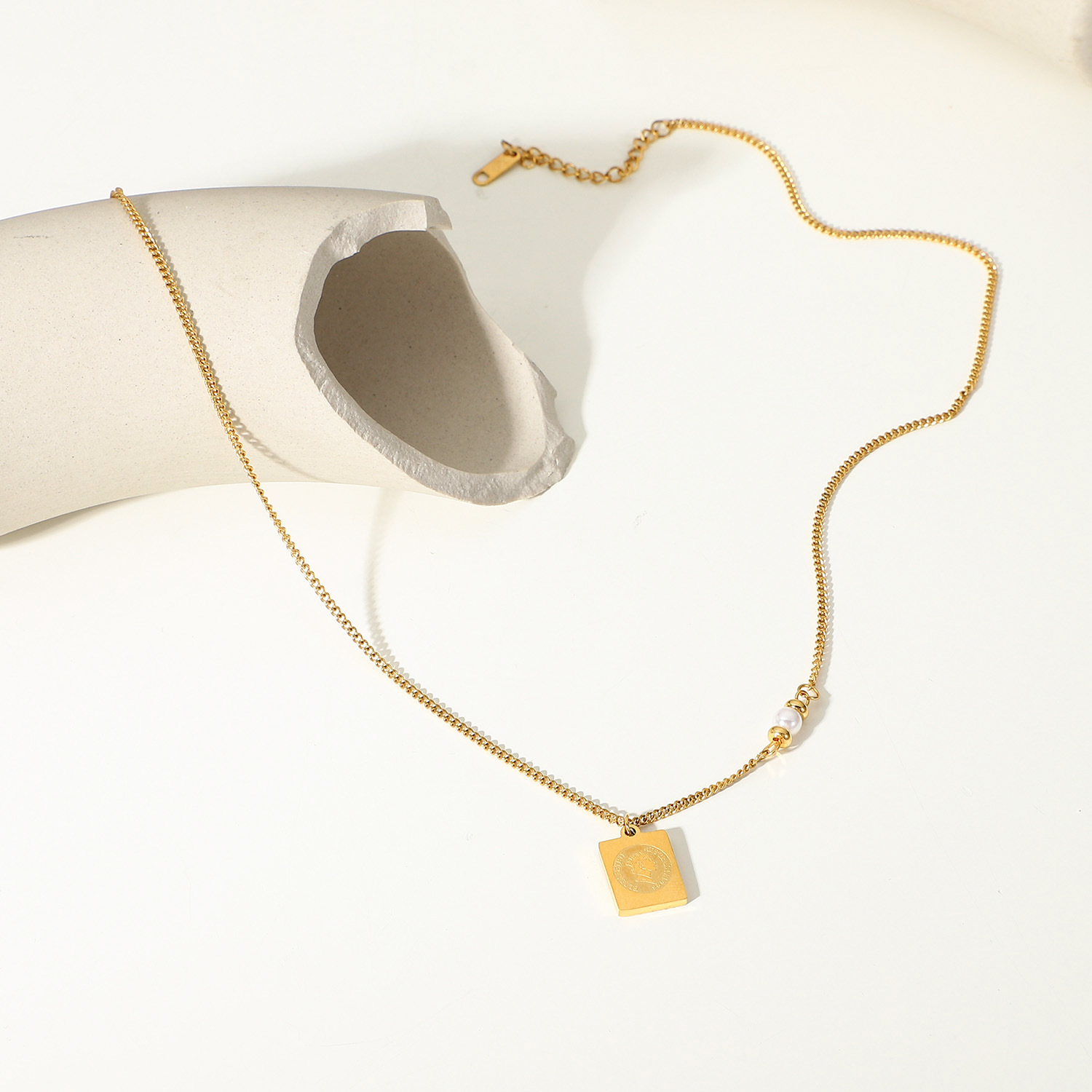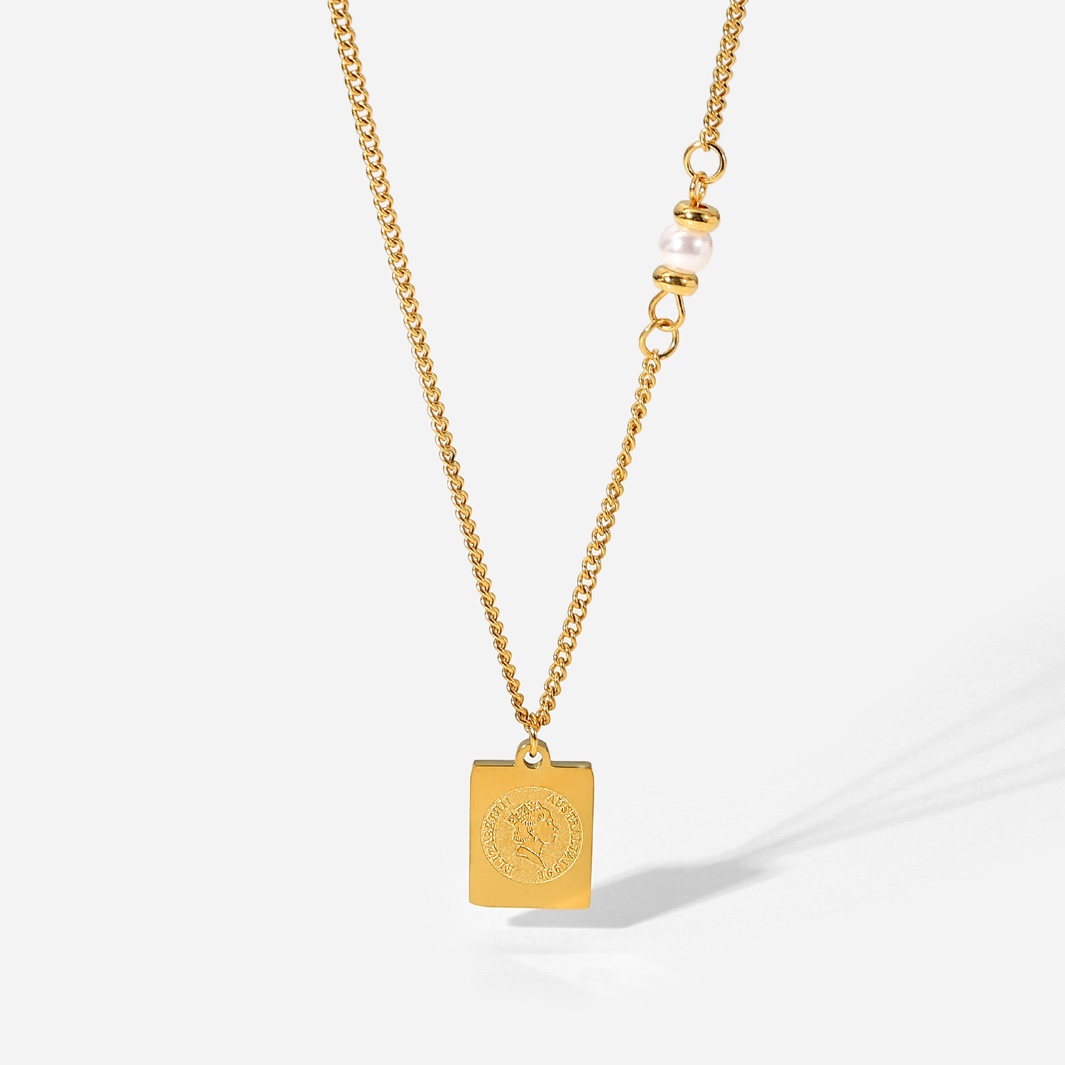 标题:欧美INS网红同款伊丽莎白女王头像方形吊牌项链18K金不锈钢项饰女