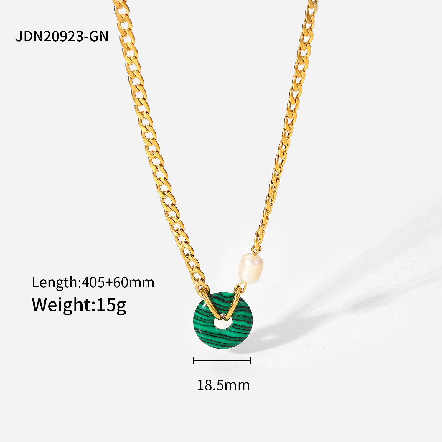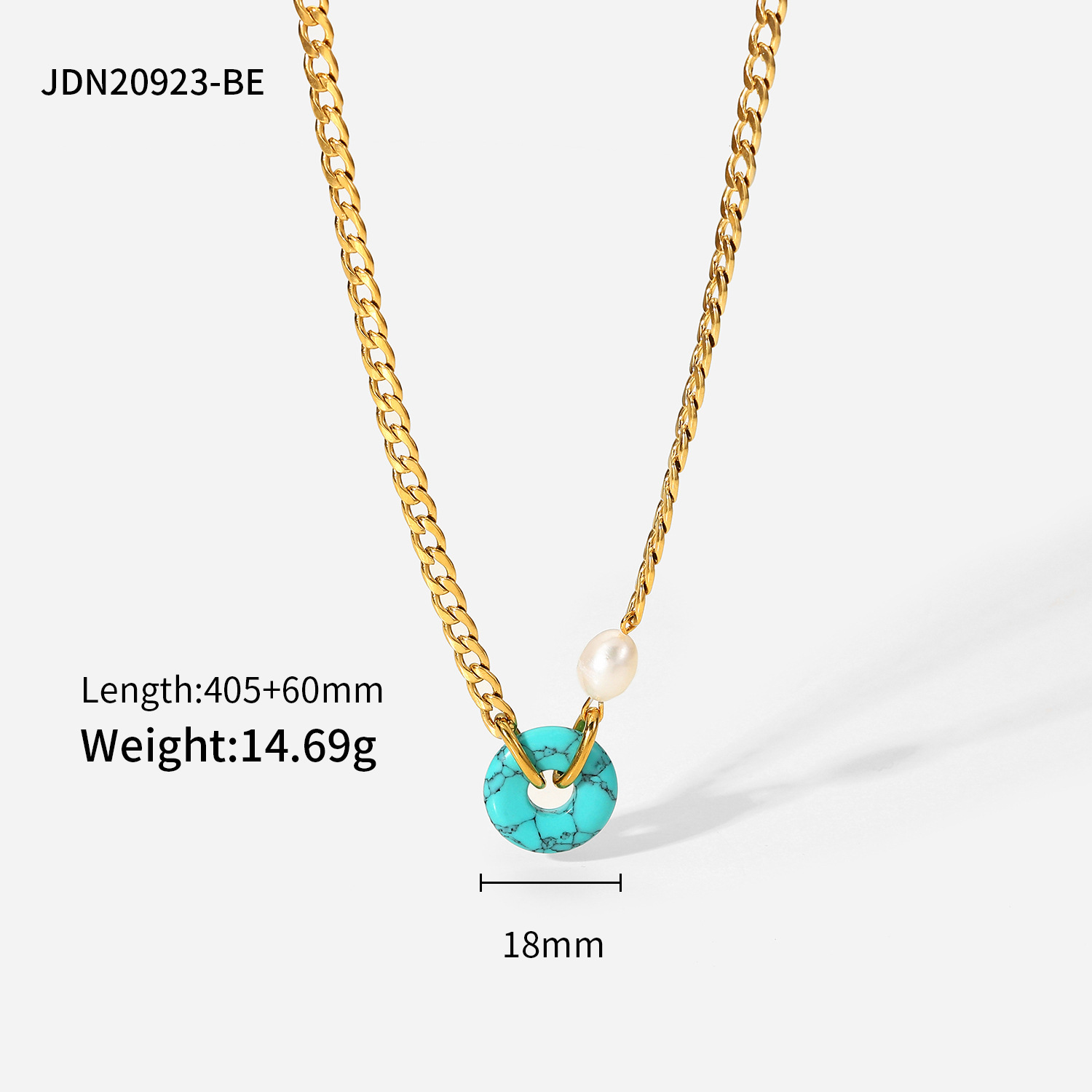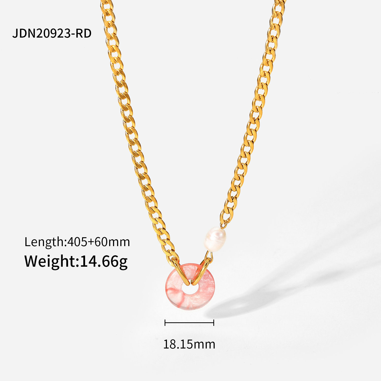 标题:欧美新款时尚个性INS风天然石圆环吊坠项链女式18K金不锈钢古巴链