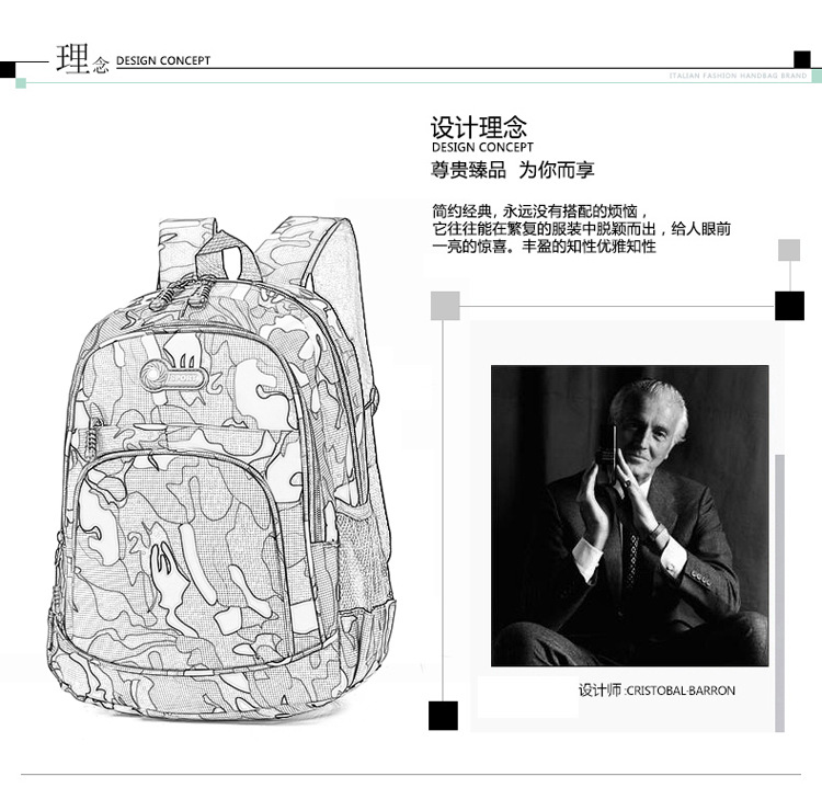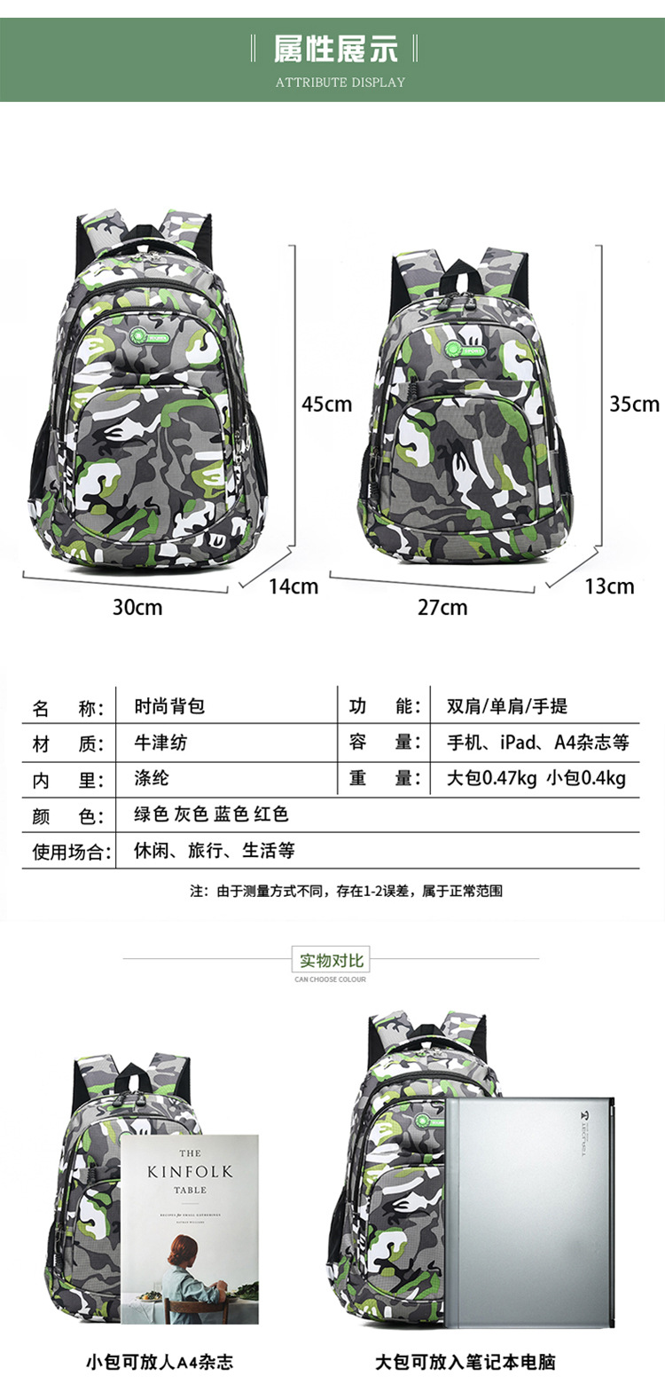 标题:批发外贸大容量背包新款户外旅行商务休闲双肩包牛津迷彩学生书包