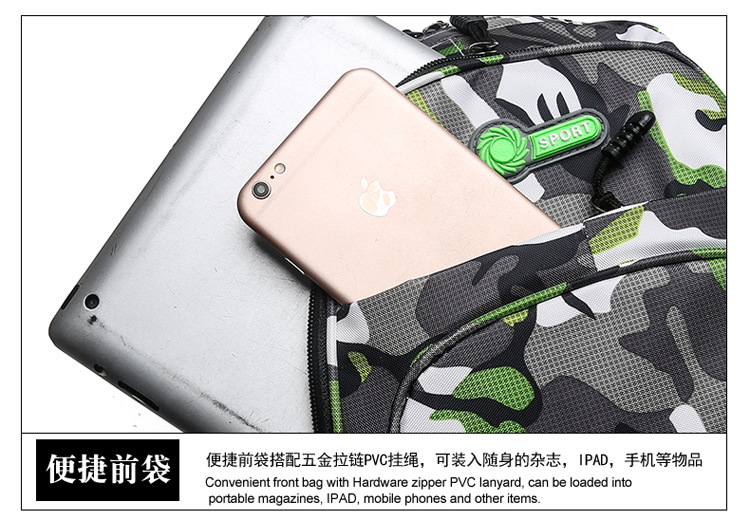 描述:货源类别:现货,是否库存:是,库存类型:整单,货号:6025,是否支持分销:支持分销,加盟分销门槛:无,箱包大小:中,容量:20-35L,包内部结构:拉链暗袋,手机袋,证件袋,夹层拉链袋,电脑插袋,开盖方式:拉链,适用性别:中性/男女均可,材质:牛津布,是否带锁:否,有无防雨罩:无,功能:透气,防水,耐磨,防盗,抗震,减负,加工方式:软面,硬度:中偏软,图案:迷彩,进口地:白沟,适用送礼场合:节日,加印LOGO:可以,加工定制:可以,风格:跨境风潮,里料质地:涤纶,配件种类:背包垫肩,肩带根数:双根,流行元素:车缝线,提拎部件:软把,外袋种类:立体袋,箱包形状:竖款方型,有无拉杆:否,背负系统:弧形肩带,最晚发货时间:3,场景:户外,颜色:红色,绿色,蓝色,灰色,主要下游平台:ebay,亚马逊,wish,速卖通,独立站,LAZADA,主要销售地区:非洲,欧洲,南美,东南亚,北美,东北亚,中东,有可授权的自有品牌:否,是否跨境出口专供货源:是,上市年份季节:2021年冬季,防水程度:防泼水,