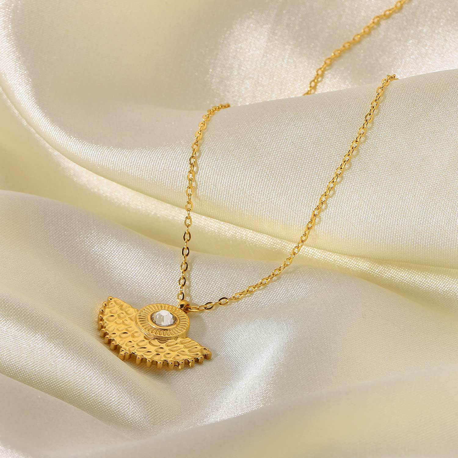 标题:欧美ins风新款扇形吊坠项链18K镀金不锈钢吊坠项链几何项链女饰品