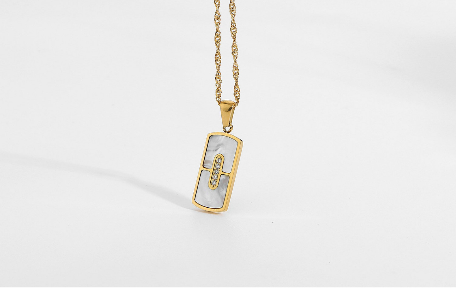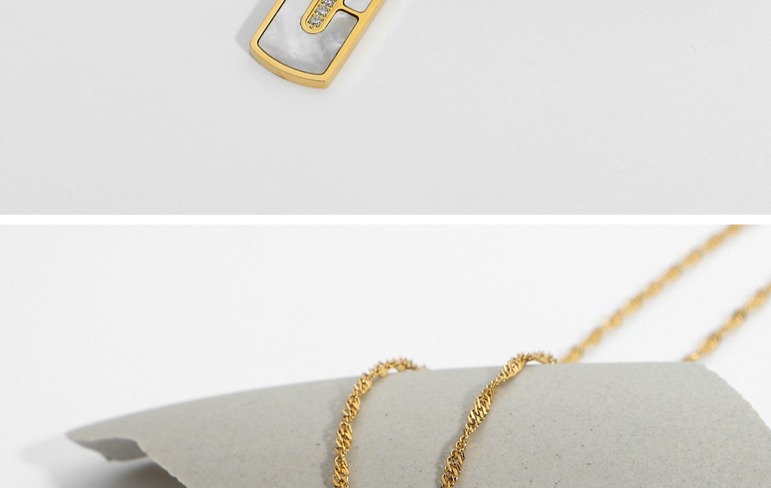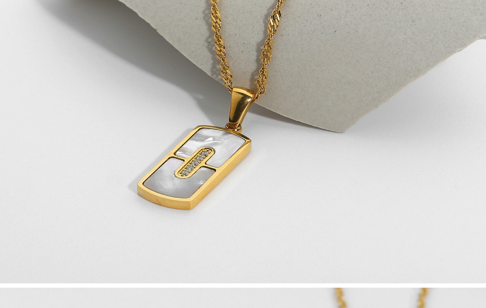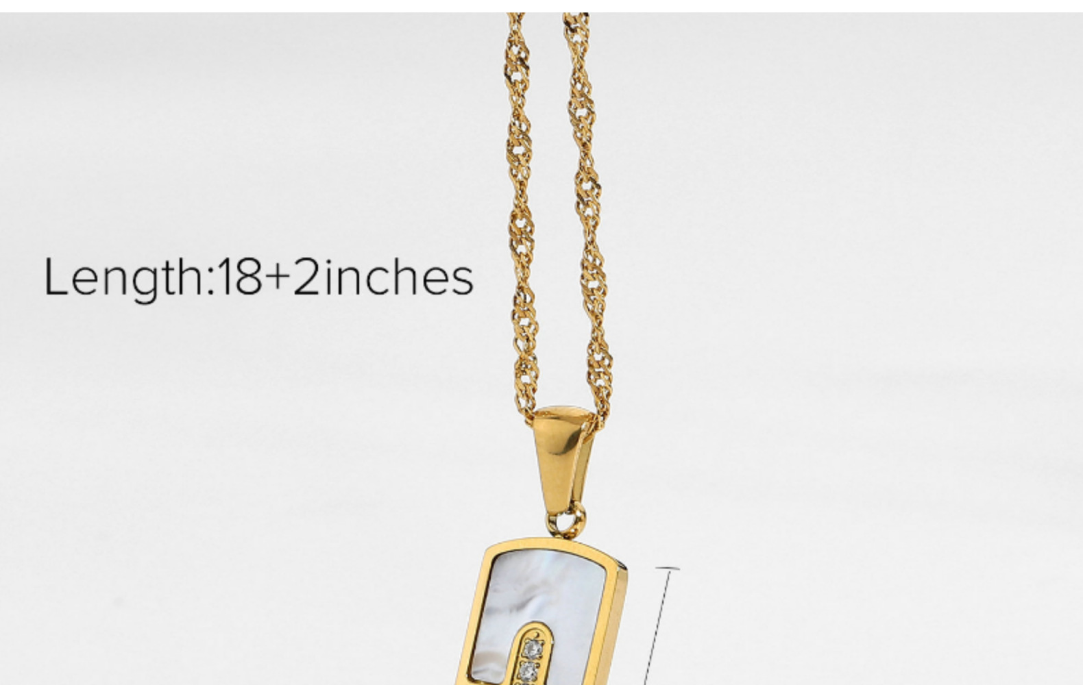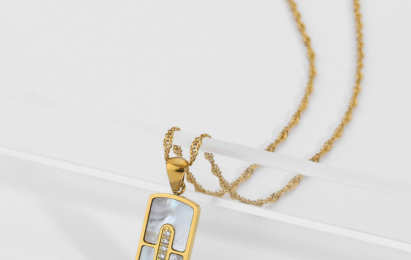 标题:欧美优雅锆石密镶矩形贝壳吊坠项链 多用途18K镀金不锈钢长项链女