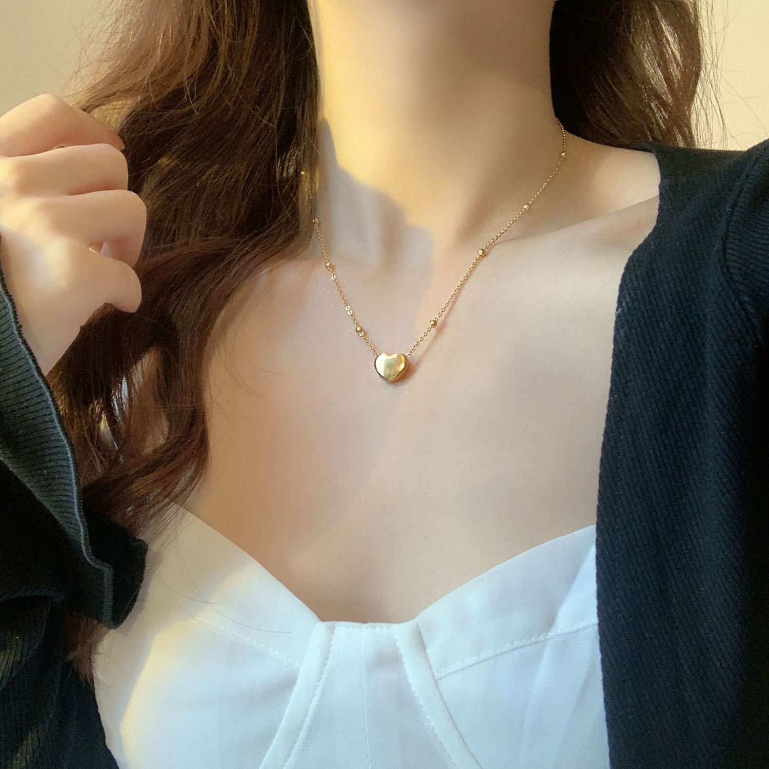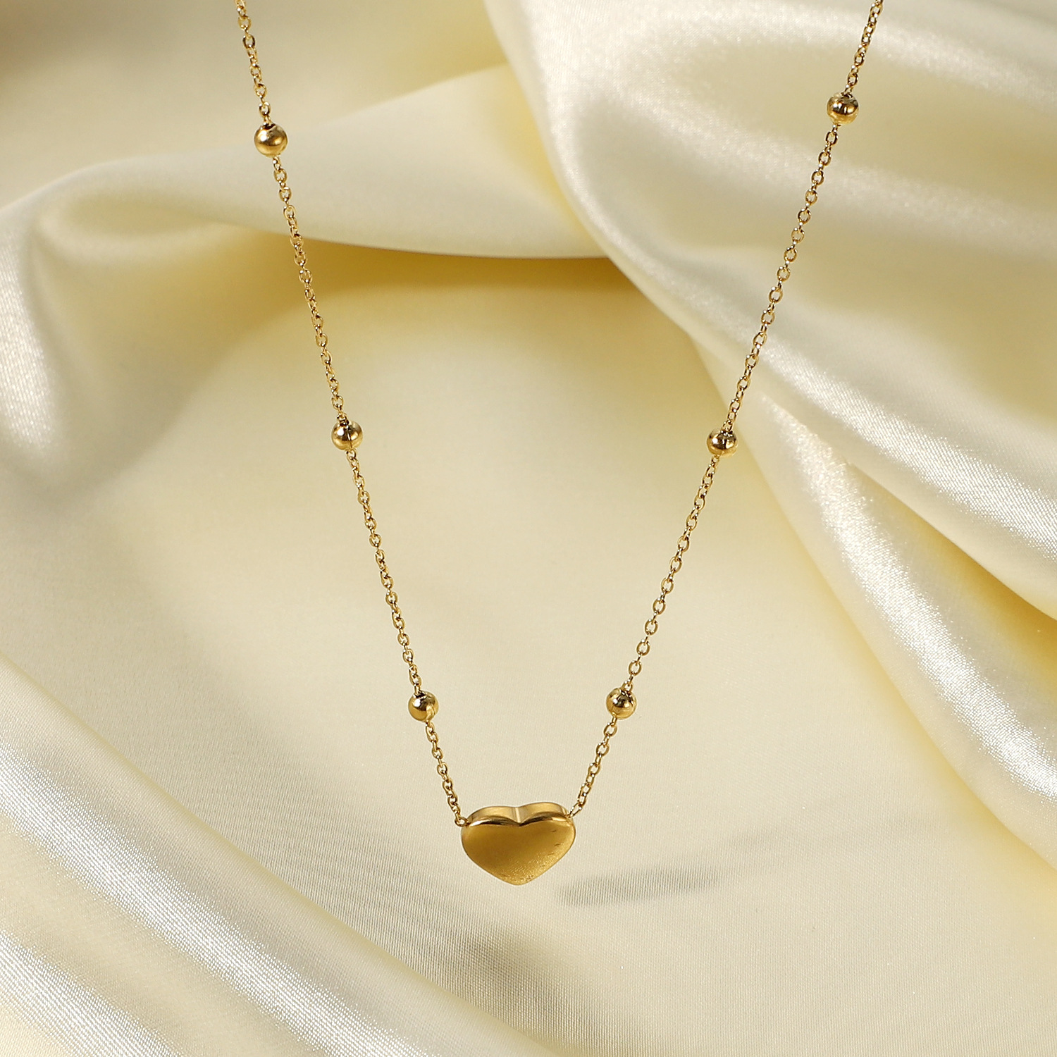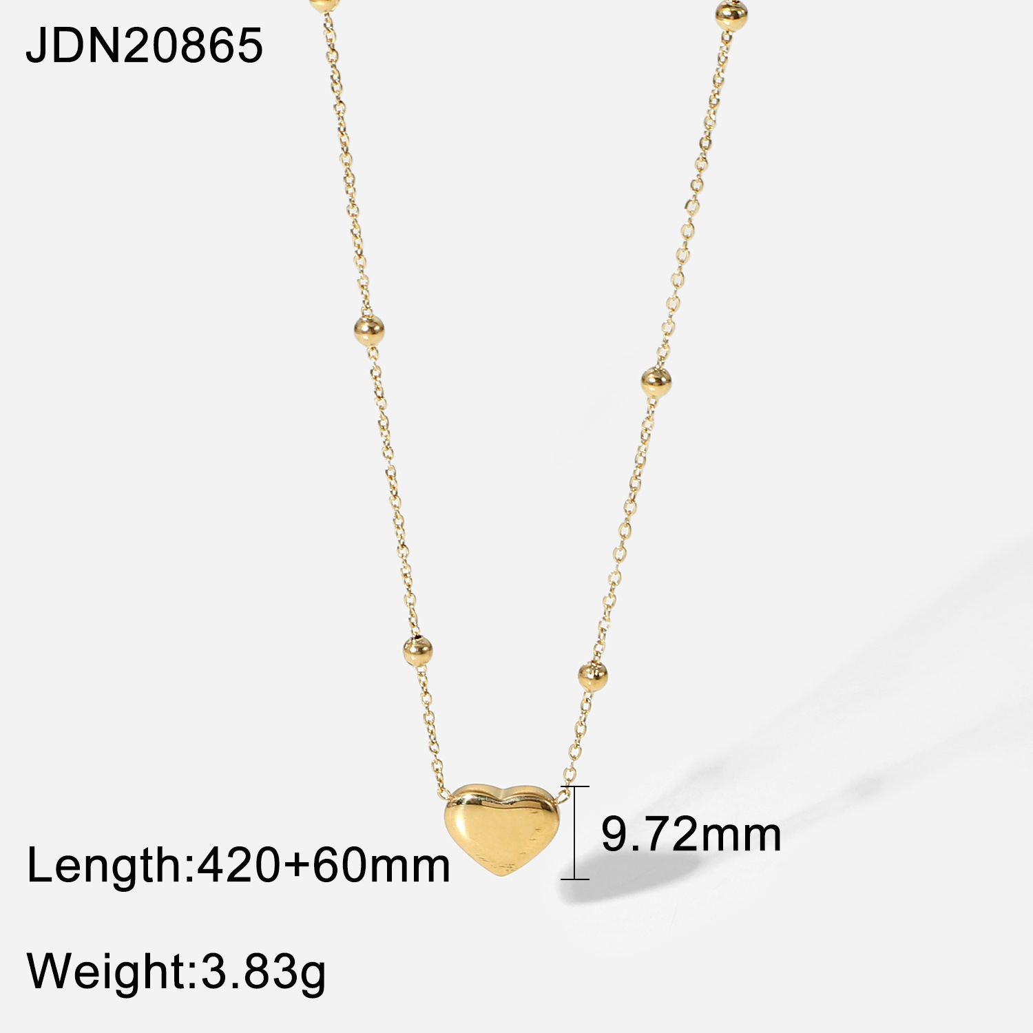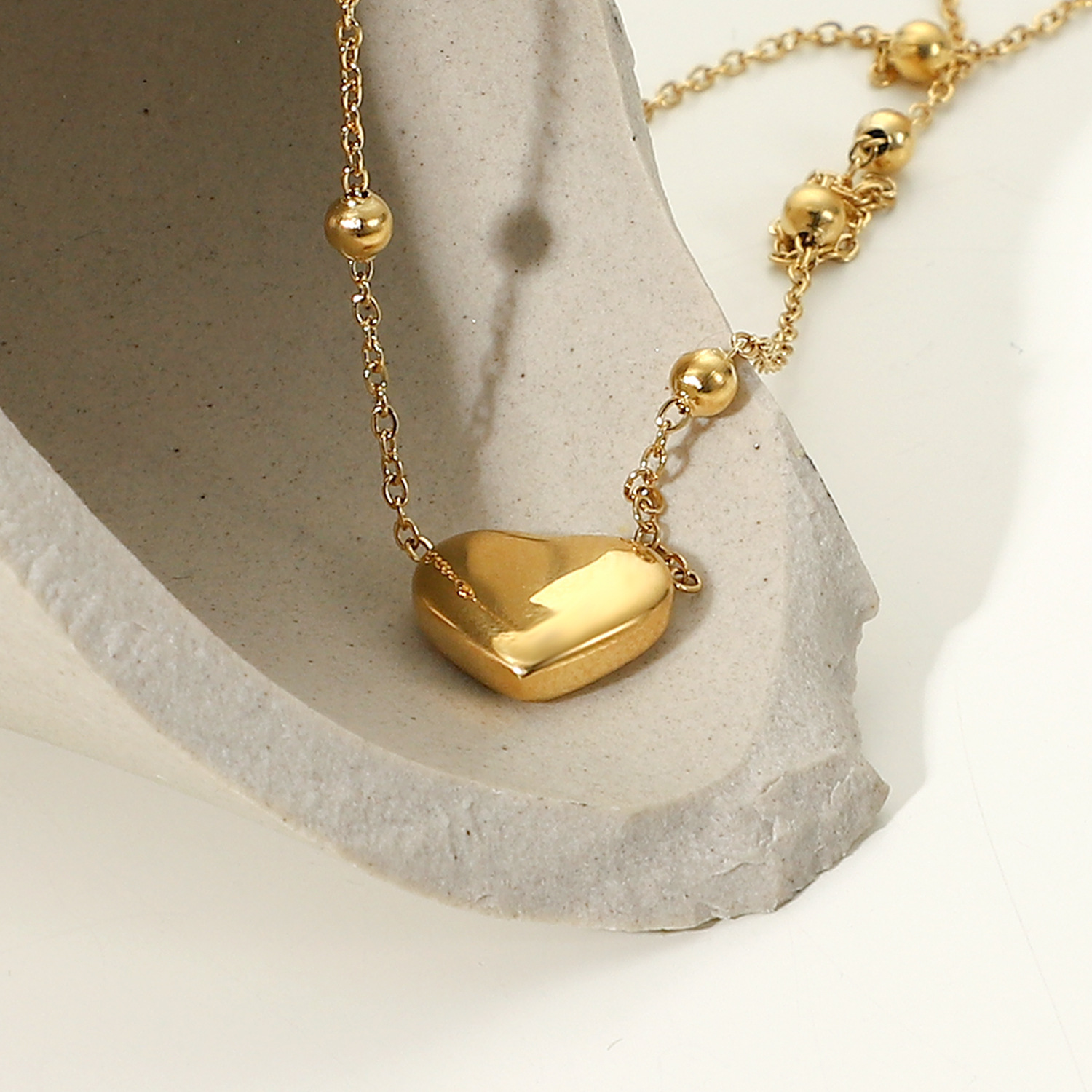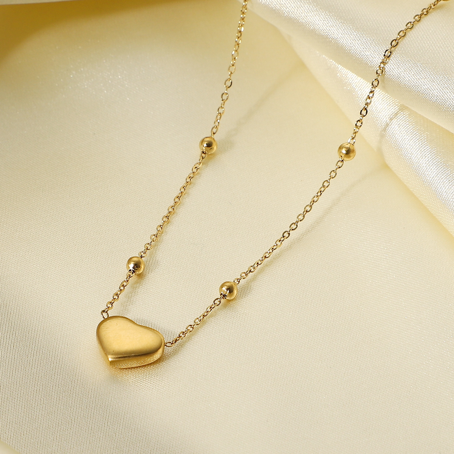 标题:INS风新款不锈钢女士首饰 14K镀金圆形珠链项链心形吊坠项链饰品